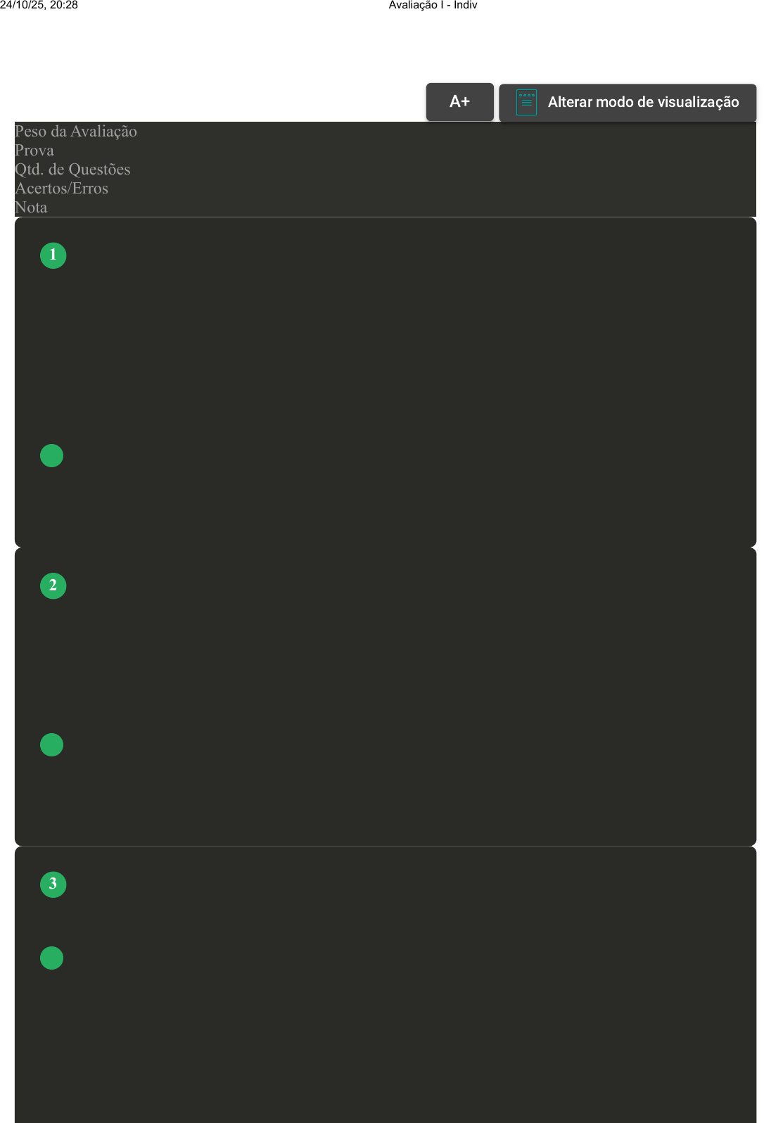 Prova Impressa GABARITO | Avaliação I - Individual (Cod.:1522024) Peso da Avaliação 2,00 Prova 108433915 Qtd. de Questões 10 Acertos/Erros 10/0 Nota 10,00 É possível identificarmos duas principais formas coexistentes na atualidade para vincular as novas tecnologias da informação e comunicação aos processos educativos, denominadas “incorporação da tecnologia” e “interação da tecnologia”. Com relação à “interação da tecnologia”, assinale a alternativa CORRETA: A Acrescenta ao ambiente já existente novos recursos tecnológicos. B Consiste na instalação de softwares e disponibilização para uso. C Objetiva integrar os alunos com os formatos e códigos da tecnologia. D Seu foco é a disponibilização de livros no ambiente on-line. Há uma principal vantagem apresentada pelos sistemas de desenvolvimento de multimídia. Acerca dessa vantagem, assinale a alternativa CORRETA: A Permitem o registro com detalhes do processo usado pelo aluno na montagem do seu produto multimídia. B Reduzem o papel do professor no processo de aprendizagem do aluno, evitando assim falhas humanas. C Possibilitam ao aluno interligar uma sucessão de informações apresentadas por diferentes mídias. D Aumentam o percentual de acertos em provas realizadas pelos alunos que desenvolveram materiais multimídias. O matemático francês Blaise Pascal produziu a primeira máquina mecânica de calcular, um precursor do computador digital, em 1642. Qual o nome dessa calculadora? A Pascaline. B Passional. C Pascalite. VOLTAR A+ Alterar modo de visualização 1 2 3 24/10/25, 20:28 Avaliação I - Individual about:blank 1/4 D Páscoa. O foco de estudo da didática é a investigação da elaboração dos saberes docentes e como estes são cultivados no cotidiano da escola, tendo como desígnio racionalizar o processo de transmissão dos saberes. A didática, na conjectura pedagógica, estuda e ensina como transformar o saber escolar e o processo de “pedagogização” do saber científico. Sobre o descrito. assinale a alternativa INCORRETA: A Os métodos de ensino são usados para vender competências específicas, que servem tanto para efeitos de desenvolvimento profissional quanto para sua aplicação. A técnica é a aplicabilidade do método. B A preparação: o professor parte do que a criança já sabe, facilitando o trabalho com os conhecimentos necessários para aprender os conteúdos. C O objeto de estudo da didática é o processo de ensino e aprendizagem. Desse modo, ela busca descrever e explicar seus nexos e ligações. Investiga fatores determinantes desse processo, indica princípios, condições e meios de direção do ensino que são comuns ao ensino das diferentes disciplinas de conteúdo específico, tendo em vista a aprendizagem. D Os métodos de ensino são usados para ajudar a desenvolver e transferir competências específicas, que servem tanto para efeitos de desenvolvimento da aprendizagem quanto para sua aplicação. A técnica é a operacionalização do método. Até o final do século XIX, a didática encontrou seu embasamento quase que unicamente na Filosofia. Isso pode ser averiguado não apenas nos trabalhos de Comenius, mas também nos de Jean Jacques Rousseau (1712-1778), Johann Heinrich Pestalozzi (1746-1827), Johann Friedrich Herbart (1777- 1841) e outros pedagogos desse período. As obras desses, no entanto, mostraram-se bastante avançadas em relação às percepções psicológicas e ideológicas dominantes de seu tempo. Com base nessas concepções, classifique V para as sentenças verdadeirase F para as falsas: ( ) Johann Friedrich Herbart (1776-1841) defende a idade da “Educação pela Instrução”. Os fundamentos de suas propostas foram criticados pelos precursores da Escola Nova. ( ) John Dewey (1859-1952) criou uma escola-laboratório para testar métodos pedagógicos. Foi um dos primeiros a chamar a atenção para a capacidade de pensar dos alunos. O objetivo da escola deveria ser ensinar a criança a viver somente ao convívio familiar. Educar, portanto, é incentivar o desejo de desenvolvimento familiar. ( ) A obra de Jean-Jacques Rousseau (1712-1778) deu origem a um novo conceito de infância. O objetivo é não só planejar uma educação com vistas à formação futura, mas também propiciar felicidade à criança enquanto ela ainda é criança. Rousseau intuiu na infância várias fases de desenvolvimento, sobretudo cognitivo. ( ) Johann Heinrich Pestalozzi (1746-1827) dá dimensões sociais à problemática educacional. A metodologia da didática destina-se ao desenvolvimento do aluno, afirmava que a função principal do ensino é levar as crianças a desenvolver suas habilidades naturais e inatas. Assinale a alternativa que apresenta a sequência CORRETA: A V - F - V - F. B F - F - V - V. C V - V - F - V. 4 5 24/10/25, 20:28 Avaliação I - Individual about:blank 2/4 D V - F - V - V. Até o final do século XIX, a didática encontrou seu embasamento quase que unicamente na Filosofia. Isso pode ser averiguado não apenas nos trabalhos de Comenius, mas também no trabalho de outros autores. Sobre esses autores, assinale a alternativa CORRETA: A Jean Jacques Rousseau, Johann Heinrich Pestalozzi, Johann Friedrich Herbart. B Freire e Rousseau. C Somente Jean Jacques Rousseau e Johann Heinrich Pestalozzi. D Somente Johann Heinrich Pestalozzi e Johann Friedrich Herbart. A palavra didática tem sua origem no verbo grego “didasko” que expressava a arte de transmitir conhecimentos. Seu uso alastrou-se graças à atuação de dois educadores, Ratíquio e Comênio, ambos eram naturais da Europa Central, num momento histórico em que se havia instalada a Reforma Protestante. Acerca das características da Didática de acordo com o autor Comênio, avalie as asserções a seguir e a relação proposta entre elas: I- A proposta de Didática de Comênio visava a uma formação universal do ser humano, em todos os aspectos, independentemente da clas