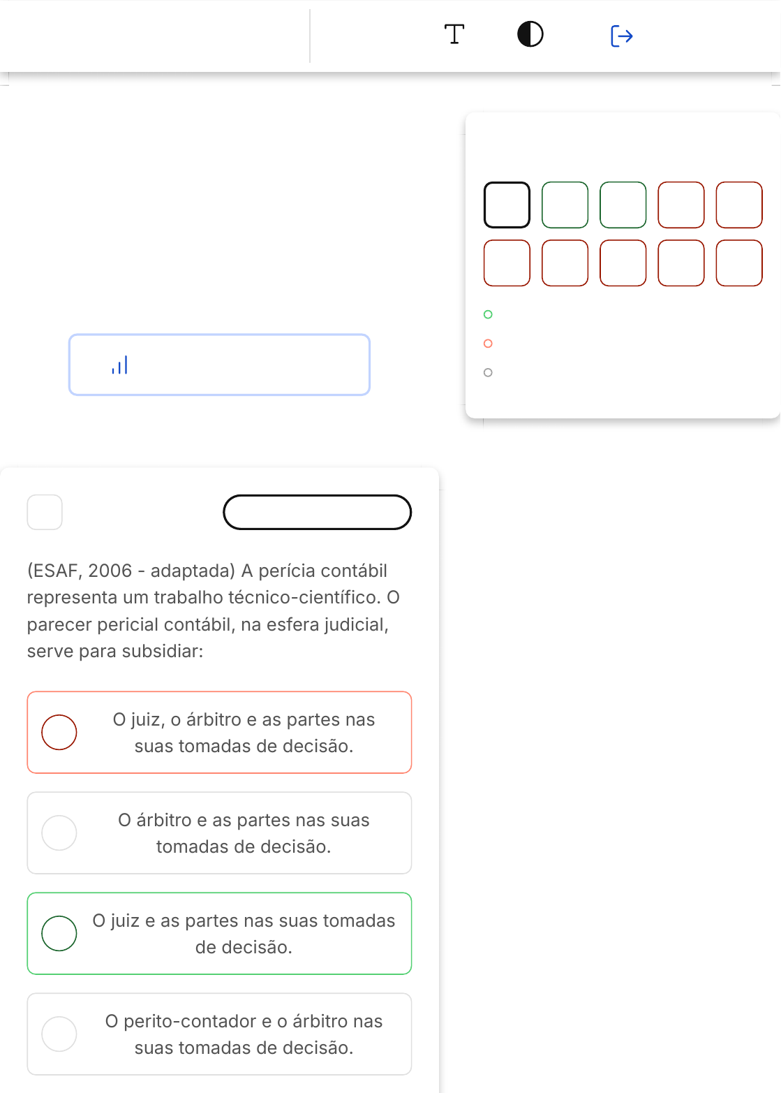 Você acertou 2 de 10 questões Verifique o seu desempenho e continue treinando! Você pode refazer o exercício quantas vezes quiser. Verificar Desempenho A B C D 1 Marcar para revisão (ESAF, 2006 - adaptada) A perícia contábil representa um trabalho técnico-científico. O parecer pericial contábil, na esfera judicial, serve para subsidiar: O juiz, o árbitro e as partes nas suas tomadas de decisão. O árbitro e as partes nas suas tomadas de decisão. O juiz e as partes nas suas tomadas de decisão. O perito-contador e o árbitro nas suas tomadas de decisão. Questão 1 de 10 Corretas (2) Incorretas (8) Em branco (0) 1 2 3 4 5 6 7 8 9 10 Lista de exercícios Conteúdo Sair E As partes nas suas tomadas de decisão. Resposta incorreta Opa! A alternativa correta é a letra C. Confira o gabarito comentado! Gabarito Comentado O parecer pericial contábil, na esfera judicial, serve para subsidiar o juiz e as partes nas suas tomadas de decisão. O parecer pericial contábil é um documento elaborado por um perito- contador, com o objetivo de subsidiar o juiz e as partes nas suas tomadas de decisão. O perito-contador é um profissional com formação em contabilidade, que possui conhecimentos técnicos e científicos para elaborar o parecer pericial contábil. O parecer pericial contábil é um documento importante, pois auxilia o juiz e as partes a compreenderem melhor os fatos e as circunstâncias do caso. 2 Marcar para revisão (FUNDATEC, 2021) Em obediência às normas pertinentes à perícia contábil, uma vez concluídos os trabalhos periciais, o perito nomeado deve apresentar _______________, e o assistente técnico pode oferecer seu _______________, obedecendo aos respectivos A B C D E prazos legais ou contratuais. Assinale a alternativa que preenche, correta e respectivamente, as lacunas do trecho acima. Laudo Pericial Contábil - Parecer Pericial Contábil. Laudo Pericial Contábil - Relatório Pericial Contábil. Parecer Pericial Contábil - Laudo Pericial Contábil. Parecer Pericial Contábil - Relatório Pericial Contábil. Relatório Pericial Contábil - Laudo Pericial Contábil. Resposta correta Parabéns, você selecionou a alternativa correta. Confira o gabarito comentado! Gabarito Comentado Em obediência às normas pertinentes à perícia contábil, uma vez concluídos os trabalhos periciais, o perito nomeado deve apresentar laudo, e o assistente técnico pode oferecer seu parecer, obedecendo aos respectivos prazos legais ou contratuais. A B C D E 3 Marcar para revisão (FUNDATEC, 2014) Representa o conjunto de procedimentos técnicos e científicos destinado a levar à instância decisória elementos de prova necessários a subsidiar à justa solução do litígio, mediante laudo ou parecer, em conformidade com as normas jurídicas e profissionais, e a legislação específica no que for pertinente. Este é um conceito que define adequadamente: Perícia Contábil Judicial e Extrajudicial. Auditoria Contábil. Auditoria Operacional. Perícia Operacional Judicial. Perícia Técnica Extrajudicial. Resposta correta Parabéns, você selecionou a alternativa correta. Confira o gabarito comentado! Gabarito Comentado A B C A perícia contábil, tanto judicial quanto extrajudicial, representa o conjunto de procedimentos técnicos e científicos destinado a levar à instância decisória elementos de prova necessários a subsidiar à justa solução do litígio, mediante laudo ou parecer, em conformidade com as normas jurídicas e profissionais, e a legislação específica no que for pertinente. 4 Marcar para revisão (IBFC, 2013) Os procedimentos de perícia contábil visam fundamentar as conclusões que serão levadas ao laudo pericial. Nesse sentido, preencha a lacuna abaixo, com o nome do procedimento pericial apropriado, de acordo com as NBC TP 01 - PERÍCIA CONTÁBIL. O ato de estabelecer o valor de coisas, bens, direitos, obrigações, despesas e receitas é reconhecido como: Vistoria. Investigação. Avaliação. D E A Arbitramento. Indagação. Resposta incorreta Opa! A alternativa correta é a letra C. Confira o gabarito comentado! Gabarito Comentado O ato de estabelecer o valor de coisas, bens, direitos, obrigações, despesas e receitas é reconhecido como avaliação. 5 Marcar para revisão (Adaptada de Estratégia Concursos) Na formação do capital social de determinada Sociedade Anônima, um dos sócios integralizou a sua parte com uma propriedade rural. Seguindo a determinação da lei 6.404/76, a Assembleia Geral dos subscritores solicitou perícia contábil para a avaliação do imóvel. Qual o tipo de Perícia citada no enunciado? Perícia Judicial. B C D E Perícia Estatal. Perícia Voluntária. Perícia Arbitral. Perícia Oficial. Resposta incorreta Opa! A alternativa correta é a letra C. Confira o gabarito comentado! Gabarito Comentado A questão se refere à perícia voluntária. Isso porque, de acordo com a lei 6.404/76, a Assembleia Geral dos subscritores, de maneira espontânea, solicitou uma perícia contábil para avaliar o imóvel que foi integralizado ao capital social da Sociedade Anônima. Portanto, a perícia não foi imposta por um juiz ou por uma autoridade estatal, mas sim solicitada voluntariamente pelos subscritores, caracterizando, assim, uma perícia voluntária. 6 Marcar para revisão (Adaptada de CFC, 2011) De acordo com a A B NBC TP 01 - Perícia Contábil, os procedimentos de perícia contábil visam fundamentar as conclusões que serão levadas ao laudo pericial contábil ou parecer pericial contábil e abrangem, total ou parcialmente, segundo a natureza e a complexidade da matéria, exame, vistoria, indagação, investigação, arbitramento, mensuração, avaliação e certificação. Relacione procedimentos de perícia contábil na primeira coluna com a respectiva descrição na segunda coluna e, em seguida, assinale a opção CORRETA. (1) Exame (2) Vistoria (3) Arbitramento (4) Certificação ( ) Ato de atestar a informação t