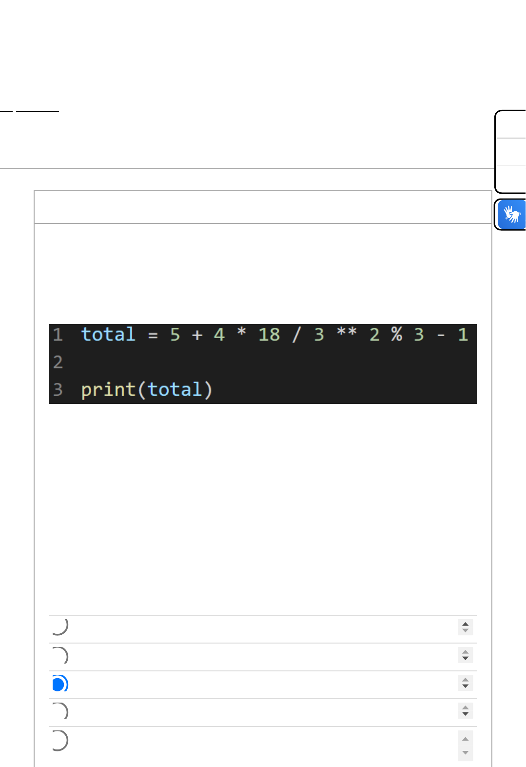 AO2 Iniciado: 5 dez em 11:23 Instruções do teste Importante: Caso você esteja realizando a atividade através do aplicativo "Canvas Student", é necessário que você clique em "FAZER O QUESTIONÁRIO", no final da página. 0,6 ptsPergunta 1 Leia o texto e observe o código-fonte a seguir: Em Python, podemos utilizar os operadores aritméticos para manipular os dados de variáveis, bem como realizar cálculos - assim como na matemática. Considerando as informações apresentadas, avalie as seguintes asserções e a relação proposta entre elas. I. O algoritmo apresentado tem a complexidade de tempo O(1), sendo considerada a complexidade de tempo mais eficiente. PORQUE II. Ao executar um algoritmo no tempo O(1), não importa o valor do elemento que você está pedindo para a função imprimir, apenas uma etapa é necessária. A respeito dessas asserções, assinale a opção correta: A asserção I é uma proposição verdadeira, e a II é uma proposição falsa. As asserções I e II são proposições falsas. As asserções I e II são proposições verdadeiras, e a II é uma justificativa da I. A asserção I é uma proposição falsa, e a II é uma proposição verdadeira. As asserções I e II são proposições verdadeiras, mas a II não é uma justificativa da I. A+ A A- 0,6 ptsPergunta 2 Leia a descrição a seguir. Digamos que queremos pesquisar um número específico em um array. Considere que essa estrutura de dados possuí 20 números e, dentre eles, queremos encontrar o número 100. Nesse exemplo, pesquisar 20 números não é um problema. Mas imagine que estamos lidando com conjuntos de dados que armazenam informações de perfil de milhões de usuários. Pesquisar cada valor de índice do início ao fim seria muito ineficiente. Especialmente se tiver que ser feito várias vezes. Considerando as informações apresentadas, avalie as afirmações a seguir: I. Em uma pesquisa sequencial, cada rodada de pesquisa consiste em um conjunto de dados menor que o anterior. II. Um algoritmo logarítmico que realiza uma pesquisa binária examina as duas metades de um conjunto de dados. III. A complexidade logarítmica log n trata de um tipo de algoritmo que torna a computação incrivelmente mais rápida que a complexidade linear. IV. Localizar uma palavra em um dicionário possui a mesma complexidade de tempo que um algoritmo de busca binária. É correto o que se afirma em: I e IV, apenas. III e IV, apenas. I e II, apenas. II e III, apenas. II e IV, apenas. 0,6 ptsPergunta 3 Leia o texto a seguir: A+ A A- Um algoritmo é uma lista passo a passo de instruções usadas para executar uma tarefa final. Um bom engenheiro de software considerará a complexidade do tempo ao planejar seu programa. Desde o início, um engenheiro deve considerar um cenário que seu programa pode encontrar e que exigirá mais tempo para ser concluído. Isso é conhecido como a complexidade de tempo do pior caso de um algoritmo. Considerando as informações apresentadas, avalie as seguintes asserções e a relação proposta entre elas. I. O tempo de execução de uma tarefa constante não mudará, independentemente de qual seja o valor de entrada, sendo representada por O(n), onde O é chamado de Big O. PORQUE II. A notação Big O é a métrica mais comum para calcular a complexidade do tempo. A respeito dessas asserções, assinale a opção correta: As asserções I e II são proposições falsas. A asserção I é uma proposição falsa, e a II é uma proposição verdadeira. As asserções I e II são proposições verdadeiras, mas a II não é uma justificativa da I. A asserção I é uma proposição verdadeira, e a II é uma proposição falsa. As asserções I e II são proposições verdadeiras, e a II é uma justificativa da I. 0,6 ptsPergunta 4 Leia o texto a seguir: Do ponto de vista da complexidade computacional, existem alguns tipos de problemas para os quais não existem algoritmos eficientes para resolvê-los. A maioria desses problemas tem um algoritmo que fornece uma solução, e esse algoritmo é a busca de força bruta. Esse algoritmo, no entanto, não fornece uma solução eficiente e, portanto, não é viável para computação com nada mais do que a menor entrada. A razão pela qual não há algoritmos eficientes para esses problemas é que esses problemas estão todos em uma categoria que poderia ser chamada de “um pouco menos que aleatório”. Eles são próximos do aleatório, de A+ A A- fato, ainda que não permitam nenhum algoritmo significativo além do de força bruta. Considerando as informações apresentadas, assinale a alternativa correta. Problemas Intratáveis, os quais geralmente requerem tempos exponenciais de processamento, não podem ser resolvidos dentro de um tempo aceitável. Problemas Heurísticos, os quais são resolvidos utilizando heurísticas e técnicas de força bruta, não podem ser resolvidos dentro de um tempo aceitável. Problemas de Parada, os quais geralmente requerem tempos polinomiais de processamento, não podem ser resolvidos dentro de um tempo aceitável. Problemas Tratáveis, como aqueles de complexidade NP e NP-Hard, não podem ser resolvidos dentro de um tempo aceitável. Problemas Insolúveis, os quais dificilmente serão resolvidos em um tempo polinomial, não podem ser resolvidos dentro de um tempo aceitável. 0,6 ptsPergunta 5 Leia o texto a seguir: A técnica de divisão e conquista é dividida em três etapas. Na primeira (dividir), é realizada a divisão do problema em subproblemas menores. Na segunda (conquistar), os subproblemas são resolvidos por chamadas recursivas até a completa resolução. Por fim, os subproblemas são combinados para obter a solução final de todo o problema. Considerando as informações apresentadas, analise as asserções a seguir e a relação proposta entre elas. I. O algoritmo Merge Sort divide o vetor em duas metades, ordenando-as recursivamente e, finalmente, mescla as duas metades ordenadas. Sua 