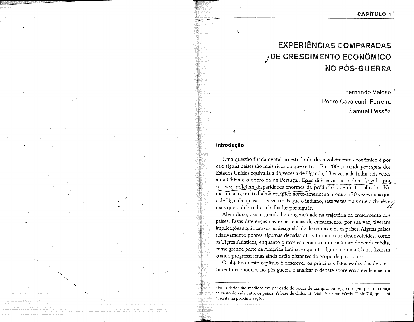 CAPÍTULO 1 EXPERIÊNCIAS COMPARADAS DE CRESCIMENTO ECONÔMICO NO PÓS-GUERRA Fernando Veloso Pedro Cavalcanti Ferreira Samuel Introdução Uma questão fundamental no estudo do desenvolvimento econômico é por que alguns países são mais ricos do que outros. Em 2009, a renda per capita dos Estados Unidos equivalia a 36 vezes a de Uganda, 13 vezes a da Índia, seis vezes a da China e o dobro da de Portugal. Essas diferenças no padrão de vida, por sua vez, refletem disparidades enormes da produtividade do trabalhador. No mesmo ano, um trabalhador típico norte-americano produzia 30 vezes mais que de Uganda, quase 10 vezes mais que indiano, sete vezes mais que o chinês mais que o dobro do trabalhador português.¹ Além disso, existe grande heterogeneidade na trajetória de crescimento dos países. Essas diferenças nas experiências de crescimento, por sua vez, tiveram implicações significativas na desigualdade de renda entre os países. Alguns países relativamente pobres algumas décadas atrás tornaram-se desenvolvidos, como Tigres Asiáticos, enquanto outros estagnaram num patamar de renda média, como grande parte da América Latina, enquanto alguns, como a China, fizeram grande progresso, mas ainda estão distantes do grupo de países ricos. O objetivo deste capítulo é descrever os principais fatos estilizados de cres- cimento econômico no pós-guerra e analisar o debate sobre essas evidências na Esses dados são medidos em paridade de poder de compra, ou seja, corrigem pela diferença de custo de vida entre países. A base de dados utilizada é a Penn World Table 7.0, que será descrita na próxima seção.4 DESENVOLVIMENTO ECONÔMICO: UMA PERSPECTIVA BRASILEIRA Experiências comparadas de crescimento econômico no pós-guerra 5 literatura de crescimento econômico. Em particular, iremos tratar de questões câmbio não afetam valores relativos das variáveis, o que ocorreria se as variáveis como: Qual foi a importância relativa da acumulação de capital físico e humano e fossem medidas em dólares correntes. do progresso tecnológico para o crescimento dos Tigres Asiáticos? O atraso relati- A renda per capita é igual, por definição, à multiplicação entre a produtivi- vo de países como Uganda ou Índia é causado por escassez de fatores de produção dade do trabalhador e a participação da força de trabalho na população, como ou por baixa eficiência? Por que o crescimento econômico da América Latina mostra a Equação 1: desacelerou fortemente a partir da década de 1980? Quais OS fatores responsáveis pelo extraordinário crescimento da China desde o final da década de 1970? Em (1) que medida esse crescimento é sustentável? A literatura de crescimento econô- mico não oferece respostas definitivas para essas questões, mas o capítulo procura onde Y é o PIB, N é a população e L é a força de trabalho. Em outras palavras, fornecer elementos para o entendimento do debate sobre esses temas. a renda por habitante pode elevar-se porque trabalhadores se tornaram mais O capítulo está dividido em cinco seções, incluindo esta Introdução. A se- produtivos ou porque a proporção de trabalhadores na população aumentou, gunda seção apresenta fatos estilizados de crescimento e desenvolvimento ou ambos. econômico no pós-guerra e calcula a contribuição das diversas fontes de cres- O Gráfico 1.1 apresenta a distribuição de renda per capita e do produto por cimento para as variações da produtividade do trabalho entre países e ao lon- trabalhador relativo aos Estados Unidos em O gráfico mostra o percen- go do tempo. As seções seguintes discutem brevemente três experiências de tual de países em cada categoria de renda e produtividade relativa aos Estados crescimento. A terceira seção descreve a experiência de crescimento seguida Unidos. primeiro fato fundamental é que existe enorme disparidade de de estagnação da América Latina. Na quarta seção analisamos a trajetória de renda per capita entre os países. Como mostra o gráfico, a distribuição de sucesso dos Tigres Asiáticos. A quinta seção discute o crescimento da China nas últimas décadas. GRÁFICO 1.1 Distribuição da renda per capita e do produto por trabalhador relativo aos Estados Unidos (2009) 40 Fatos estilizados 35 Nesta seção, apresentamos fatos estilizados sobre experiências de crescimen- to econômico no pós-guerra. A desigualdade de renda per capita entre países em 30 Renda per capita determinado ano (2009, por exemplo) resulta da combinação entre a desigual- to no pós-guerra e entender seu impacto na distribuição de renda atual. Proporção de países (%) 25 Produto por trabalhador dade num ano inicial (1960, por exemplo) e crescimento da renda per capita entre os dois anos. Nosso objetivo é analisar as diversas trajetórias de crescimen- 20 15 A análise deste capítulo baseia-se nos dados da versão 7.0 da Penn World Table (PWT). A PWT é a principal base de dados utilizada em análises compa- 10 radas de crescimento e desenvolvimento econômico. Ela contém informações sobre 33 variáveis para 189 países, de 1950 até 2009. A maior vantagem da 5 PWT.é que os dados de produto, investimento e demais estatísticas das Contas 0 Nacionais são calculados segundo o conceito de paridade de poder de compra 0-10% 10%-20% 20%-30% 30%-40% 40%-50% 50%-60% 60%-70% 70%-80% 80%-90% 90%-100% >100% (preços internacionais), PPP, que corrige os efeitos de diferenças sistemáticas de Renda per capita e produto por trabalhador relativo aos Estados Unidos custo de vida entre as economias.² Assim, por exemplo, flutuações na taxa de Fonte: Penn World Table 7.0. 2 Os dados da Penn World Table estão disponíveis em Para Embora os Estados Unidos sejam a maior economia do mundo, em 2009 sua renda per capita maiores detalhes, ver Heston et al. (2011). era inferior à de alguns países, como Austrália, Cingapura, Luxemburgo, Noruega e Qatar.6 DESENVOLVIMENTO