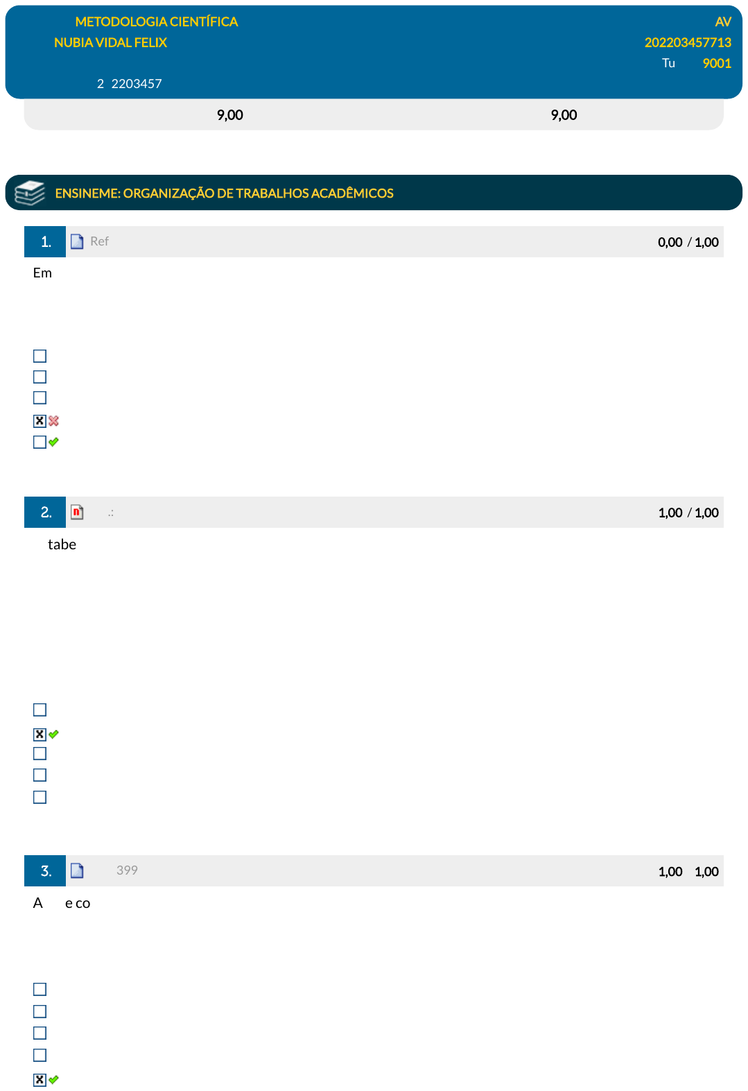Avaliação: 9,00 pts Nota SIA: 9,00 pts