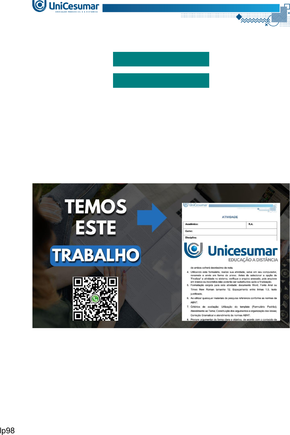 (99) 99119-3171 (99) 99119-3171 Olá!!! Somos da Assessoria Excellence Educacional e iremos te ajudar com este trabalho! Entre em contato conosco! ATIVIDADE 1 - SAÚDE ESTÉTICA E COSMETOLOGIA - 54_2025 ATIVIDADE 1 - SAÚDE ESTÉTICA E COSMETOLOGIA - 54_2025 lp98 Atividade de estudo 1 - Saúde estética e cosmetologia A camada da pele mais importante para tratamentos de rejuvenescimento e preenchimentos dérmicos, é a derme (ou cório), que fica localizada logo abaixo da epiderme. Composta principalmente de células residentes e extracelulares. É imprescindível que o profissional de estética entenda as variações anatômicas de espessura que essa camada apresenta ao longo do corpo (Elder, 2011; Kashiwakura, 2025). Fonte: Kashiwakura, P. H. M. B. (2025) Saúde estética e cosmetologia. Universidade Cesumar – Unicesumar. Florianópolis, SC. Arqué. ISBN digital 978-65- 279-1319-1; 228 p.: iL. Brown T.M. & Krishnamurthy K. (2022) Histology, Dermis. In: StatPearls [Internet]. De acordo com as camadas da pele, responda: A – DESCREVA de forma suscinta, as principais funções das células residentes que compõem a derme. B – CITE os componentes da matriz extracelular da derme. C – No tecido conjuntivo, a composição majoritária se dá com a presença de uma fibra chamada de colágeno. INDIQUE as estruturas que participam do processo de neocolagênese pelo fibroblasto. lp98