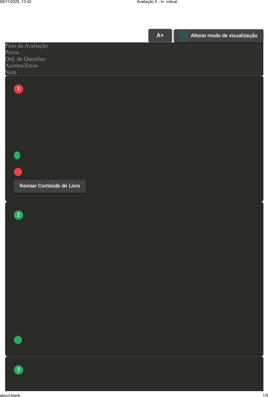 Prova Impressa GABARITO | Avaliação II - Individual (Cod.:772285) Peso da Avaliação 1,50 Prova 58557911 Qtd. de Questões 10 Acertos/Erros 8/2 Nota 8,00 Pipetas volumétricas e graduadas são vidrarias utilizadas para executar transferências e coletas de líquidos durante o preparo de soluções. O tipo de pipeta apropriado a ser utilizado depende das condições do experimento a ser executado. Sobre este tipo de vidraria de laboratório e técnicas de pipetagem, assinale a alternativa CORRETA: A Deve-se evitar o uso de pipetadores ou peras de sucção na coleta de líquidos. B Uma pipeta volumétrica calibrada em 10 mL pode ser usada para uma coleta precisa de líquido em um volume de 11 mL. C As pipetas volumétricas não devem ser aquecidas ou secadas à quente pois podem perder a precisão com a dilatação do vidro. D As pipetas graduadas permitem a coleta de volumes fixos de líquido. A filtração é uma das técnicas de separação utilizadas no laboratório de química. A montagem padrão de um sistema de filtração utiliza alguns materiais, equipamentos e vidrarias específicos. Com base na técnica de separação por filtração simples e a vácuo, analise as afirmativas a seguir: I- O funil de Buchner deve ser adaptado ao Kitassato com um anel ou rolha de borracha para evitar a entrada de ar, caso a filtração seja conduzida a vácuo. II- O tipo de papel filtro utilizado na filtração é um dos parâmetros que influenciam a velocidade de filtração. III- O papel filtro pregueado reduz a velocidade de filtração. Assinale a alternativa CORRETA: A Somente a afirmativa I está correta. B As afirmativas I e III estão corretas. C As afirmativas II e III estão corretas. D As afirmativas I e II estão corretas. Pipetas volumétricas e graduadas são vidrarias utilizadas para executar transferências e coletas de líquidos durante o preparo de soluções. O tipo de pipeta apropriado a ser utilizado depende das VOLTAR A+ Alterar modo de visualização 1 Revisar Conteúdo do Livro 2 3 08/11/2025, 13:42 Avaliação II - Individual about:blank 1/5 condições do experimento a ser executado. Sobre este tipo de vidraria de laboratório e técnicas de pipetagem, assinale a alternativa CORRETA: A As pipetas volumétricas são utilizadas quando não há necessidade de grande precisão no volume dos líquidos coletados. B Uma pipeta volumétrica calibrada em 10 mL pode ser usada para uma coleta precisa de líquido em um volume de 9 mL. C Deve-se evitar o uso de pipetadores ou peras de sucção na coleta de líquidos. D As pipetas graduadas permitem a coleta de volumes variáveis de líquido. A filtração é uma das técnicas de separação utilizadas no laboratório de química. A montagem padrão de um sistema de filtração utiliza alguns materiais, equipamentos e vidrarias específicos. Com base na técnica de separação por filtração simples e a vácuo, analise as afirmativas a seguir: I- Alguns materiais utilizados na filtração a vácuo são: Kitassato, funil de Buchner e papel filtro. II- O papel filtro deve ser colocado sobre os orifícios do funil de Buchner para impedir a passagem do líquido. III- O vácuo parcial criado pela bomba ou trompa de vácuo ocorre devido a retirada de ar de dentro do Kitassato. Assinale a alternativa CORRETA: A As afirmativas I e III estão corretas. B Somente a afirmativa II está correta. C Somente a afirmativa III está correta. D As afirmativas I e II estão corretas. Pipetas volumétricas e graduadas são vidrarias utilizadas para executar transferências e coletas de líquidos durante o preparo de soluções. O tipo de pipeta apropriado a ser utilizado depende das condições do experimento a ser executado. Sobre este tipo de vidraria de laboratório e técnicas de pipetagem, assinale a alternativa CORRETA: A As pipetas volumétricas permitem a coleta de volumes variáveis de líquido. B As pipetas graduadas permitem aferições de volume mais rigorosas do que as pipetas volumétricas. C Uma pipeta graduada mede apenas um único volume, indicado na graduação de sua escala. D O uso de pipetadores ou peras de sucção é sempre indicado durante a execução de técnicas de pipetagem para transferência de líquidos ácidos. 4 5 Revisar Conteúdo do Livro 08/11/2025, 13:42 Avaliação II - Individual about:blank 2/5 A separação de líquidos imiscíveis ou a extração de um líquido de dentro de uma mistura homogênea é feita com a pera ou funil de decantação. Misturas heterogêneas de um líquido e um sólido geralmente são separadas por meio de filtração. Com base nas técnicas de separação de misturas homogêneas ou heterogêneas, classifique V paras sentenças verdadeiras e F para as falsas: ( ) Várias técnicas podem ser aplicadas para a separação de misturas. A escolha do método mais eficiente depende do estado físico dos constituintes da mistura, o número de fases e as propriedades das substâncias envolvidas. ( ) Um funil de decantação pode ser utilizado para separar uma mistura de dois líquidos imiscíveis de densidades diferentes. ( ) As técnicas empregadas para separação de líquidos imiscíveis de densidades diferentes com auxílio da pera de decantação caracteriza um processo físico de separação. Assinale a alternativa que apresenta a sequência CORRETA: A V - F - V. B V - V - V. C F - F - F. D F - V - F. A separação de líquidos imiscíveis ou a extração de um líquido de dentro de uma mistura homogênea é feita com a pera ou funil de decantação. Misturas heterogêneas de um líquido e um sólido geralmente são separadas por meio de filtração. Sobre as técnicas de separação de misturas homogêneas ou heterogêneas, avalie as asserções a seguir e a relação proposta entre elas: I- O Kitassato é um frasco de vidro com saída lateral, utilizado em filtrações a vácuo, ou seja, nas quais é provocado um vácuo parcial dentro do recipiente para acelerar o processo de filtração.