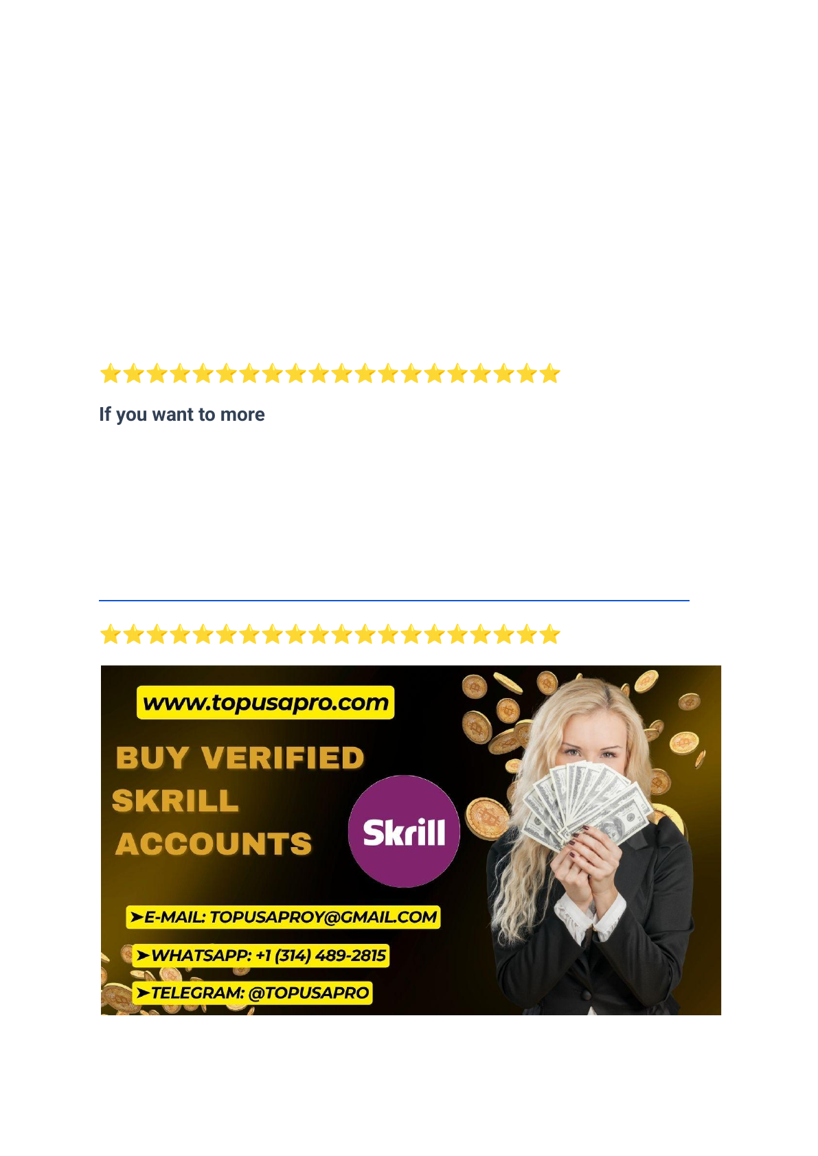 Buy Verified Skrill Accounts Introduction to Skrill Accounts In today’s fast-paced digital world, managing your finances online has never been easier. One platform that has gained immense popularity is Skrill. It allows users to send and receive money globally with just a few clicks. However, not all Skrill accounts are created equal. Enter the concept of verified Skrill accounts—a game changer for anyone looking to navigate the financial landscape smoothly. ⭐⭐⭐⭐⭐⭐⭐⭐⭐⭐⭐⭐⭐⭐⭐⭐⭐⭐⭐⭐ If you want to more information just contact now. 24 Hours Reply/Contact ➤E-mail: topusaproy@gmail.com ➤WhatsApp: +1 (314) 489-2815 ➤Telegram: @topusapro https://www.topusapro.com/product/buy-verified-skrill-accounts/ ⭐⭐⭐⭐⭐⭐⭐⭐⭐⭐⭐⭐⭐⭐⭐⭐⭐⭐⭐⭐ https://www.topusapro.com/product/buy-verified-skrill-accounts/ But why would someone want to buy a verified Skrill account? The answer lies in convenience, security, and enhanced functionality. Whether you’re an entrepreneur seeking seamless transactions or a freelancer needing reliable payment methods, having a verified account can make all the difference in streamlining your operations. Let’s dive deeper into what makes these accounts so desirable and explore how you can get one for yourself! Why Buy Verified Skrill Accounts? Buying verified Skrill accounts can open doors to countless opportunities in online transactions. Many users find themselves restricted by unverified accounts, limiting their ability to send or receive funds effectively. A verified account adds credibility and security. It assures both buyers and sellers that the transaction is legitimate, reducing the risk of fraud. This factor is crucial when dealing with large sums or trustworthy merchants. Additionally, having a verified Skrill account often means quicker processing times for withdrawals and deposits. In a fast-paced digital economy, time is money; every second counts. Furthermore, some platforms require verification for full access to features or services. By purchasing a verified Skrill account, you instantly gain these privileges without undergoing lengthy verification processes yourself. Investing in a verified account can streamline your financial operations while enhancing your online experience significantly. Benefits of Using a Verified Skrill Account A verified Skrill account opens doors to a world of convenience. With enhanced security features, you can enjoy peace of mind during online transactions. Your personal information remains protected against fraud. Speed is another significant advantage. Withdrawals and deposits are processed quickly, ensuring that your funds are where you need them when you need them. Using a verified Skrill account also boosts credibility with merchants and service providers. Trust is essential in online transactions, and verification builds that trust seamlessly. Additionally, it allows access to exclusive promotions and offers from various platforms. Enjoying these perks can lead to savings over time. Managing multiple currencies becomes effortless. Whether you're buying international services or transferring money abroad, having a verified account simplifies the process substantially. How to Buy Verified Skrill Accounts? When considering how to buy verified Skrill accounts, start by researching reputable vendors. Look for online reviews and testimonials that highlight their reliability and service quality. Once you've identified potential sellers, evaluate their pricing structures. Transparent pricing is a good sign of legitimacy. Avoid deals that seem too good to be true; they often are. Next, initiate direct communication with the seller. Ask questions about the account’s verification process and any associated fees. A trustworthy vendor will provide clear answers without hesitation. Before making a purchase, confirm the payment methods accepted by the seller. Using secure payment options can help protect your financial information. Ensure that you understand the terms of service for using a purchased account with Skrill to comply with all regulations and avoid future complications in transactions or withdrawals. Risks and Precautions Buying verified Skrill accounts comes with inherent risks that you should consider. The first major concern is security. You may unknowingly engage with untrustworthy sellers who could compromise your personal information. Another risk involves legal implications. Purchasing an account might violate Skrill's terms of service, leading to potential account suspension or loss of funds. Always ensure you're aware of the regulations surrounding such transactions in your jurisdiction. ⭐⭐⭐⭐⭐⭐⭐⭐⭐⭐⭐⭐⭐⭐⭐⭐⭐⭐⭐⭐ If you want to more information just contact now. 24 Hours Reply/Contact ➤E-mail: topusaproy@gmail.com ➤WhatsApp: +1 (314) 489-2815 ➤Telegram: @topusapro https://www.topusapro.com/product/buy-verified-skrill-accounts/ https://www.topusapro.com/product/buy-verified-skrill-accounts/ ⭐⭐⭐⭐⭐⭐⭐⭐⭐⭐⭐⭐⭐⭐⭐⭐⭐⭐⭐⭐ Fraudulent activities are common in this space. Many scammers disguise themselves as legitimate vendors, making it essential to conduct thorough research before engaging with any seller. To mitigate these risks, opt for reputable marketplaces known for their buyer protection policies. Additionally, look for user reviews and testimonials to gauge the credibility of a seller. Taking necessary precautions will go a long way toward ensuring a smoother experience when buying a verified Skrill account. Step-by-Step Guide to Buy Verified Skrill Accounts Buying a verified Skrill account doesn't have to be complicated. Start by researching reputable providers online. Look for reviews and feedback from previous customers to ensure reliability. Once you've identified a trustworthy seller, reach out for more details about their offerings. Ask questions about the verif