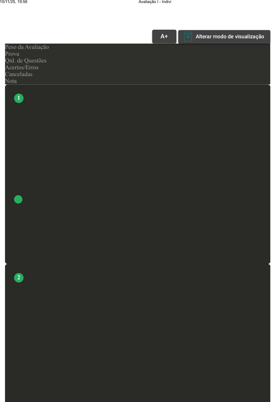 Prova Impressa GABARITO | Avaliação I - Individual (Cod.:770698) Peso da Avaliação 1,50 Prova 51985198 Qtd. de Questões 10 Acertos/Erros 9/0 Canceladas 1 Nota 10,00 Os condutores elétricos são uma importante parte das instalações, sendo várias das suas especificações declaradas na norma NBR 5410 (2004). Com base no exposto, classifique V para as sentenças verdadeiras e F para as falsas: ( ) O condutor é chamado de fio quando é sólido, maciço e sem isolação. ( ) O condutor é chamado de cabo quando é composto de vários fios. ( ) Os fios são chamados de Condutor Classe 1, enquanto que os cabos são chamados de Condutor Classe 2. ( ) Os fios possuem alta rigidez, não podendo ser dobrados muitas vezes a risco de quebra. Assinale a alternativa que apresenta a sequência CORRETA: FONTE: https://hosting.iar.unicamp.br/lab/luz/ld/normas%20e%20relat%F3rios/NRs/nbr_5410.pdf. Acesso em: 3 jan. 2020. A F - V - F - V. B V - F - V - F. C F - F - V - V. D V - V - F - F. Os elementos elétricos que compõe um edifício incluem tomadas, interruptores, entre outros, e devem ter suas conexões planejadas tanto no interior do edifício quanto as suas conexões com a rede externa. Para isso, utiliza-se três formas de representação gráfica: plantas de situação, planta baixa dos pavimentos e prumada, cada uma com objetivo de descrever uma parte específica do projeto elétrico. Com base nessas formas gráficas de representação, associe os itens, utilizando o código a seguir: I- Planta de situação. II- Planta baixa dos pavimentos. III- Prumada. ( ) Representação que localiza os elementos da instalação elétrica, incluindo tomadas, interruptores, pontos de iluminação, entre outros. ( ) Representação da distribuição elétrica entre diferentes pavimentos de um edifício. ( ) Representação que localiza o edifício com relação ao seu exterior, incluindo ruas, postes e entrada de energia no terreno. Assinale a alternativa que apresenta a sequência CORRETA: VOLTAR A+ Alterar modo de visualização 1 2 10/11/25, 19:56 Avaliação I - Individual about:blank 1/5 A III - I - II. B III - II - I. C I - II - III. D II - III - I. Um cômodo é planejado possuindo uma área de 20 m^2. Deseja-se projetar a iluminação desse cômodo quanto a sua carga. De acordo com a norma NBR 5410 (2004), calcule a carga mínima recomendada e assinale a alternativa CORRETA: FONTE: https://hosting.iar.unicamp.br/lab/luz/ld/normas%20e%20relat%F3rios/NRs/nbr_5410.pdf. Acesso em: 3 jan. 2020. A 280 VA. B 300 VA. C 220 VA. D 340 VA. A potência atribuída para cada ponto de tomada pode variar, sendo especificada pela norma NBR 5410 (2004). Com base no exposto, classifique V para as sentenças verdadeiras e F para as falsas: ( ) Em cozinhas e banheiros, utiliza-se até três pontos de tomada com 300 VA e o restante com 100 VA. ( ) Quando há mais de seis pontos de tomada em uma cozinha, pode-se utilizar duas tomadas com 600 VA e as demais com 100 VA. ( ) Nos cômodos em geral, o recomendado é uma tomada com 600 VA e as demais com 100 VA. ( ) Para certos equipamentos de alto consumo, como ar condicionado e chuveiro, são atribuídas tomadas separadamente, cuja potência pode ser mais alta. Assinale a alternativa que apresenta a sequência CORRETA: FONTE: https://hosting.iar.unicamp.br/lab/luz/ld/normas%20e%20relat%F3rios/NRs/nbr_5410.pdf. Acesso em: 3 jan. 2020. A V - F - V - F. B F - F - V - V. C V - V - F - F. D F - V - F - V. 3 4 10/11/25, 19:56 Avaliação I - Individual about:blank 2/5 Atenção: Esta questão foi cancelada, porém a pontuação foi considerada. As instalações elétricas são divididas em circuitos terminais, o que facilita a manutenção e garante uma eficiente distribuição das cargas. Sobre o exposto, classifique V para as sentenças verdadeiras e F para as falsas: ( ) Em instalações monofásicas, os circuitos terminais devem possuir tensão fase-neutro padronizada, que será de 127 V. ( ) Para instalações alimentadas em 127/220 V, os circuitos terminais serão bifásicos a 220 V. ( ) Alguns equipamentos como aquecedores elétricos podem necessitar uma tensão de 220 V. ( ) Em instalações com múltiplas fases, as tomadas de uso geral também serão de múltiplas fases. Assinale a alternativa que apresenta a sequência CORRETA: A V - V - F - V. B F - F - V - F. C V - F - F - V D F - V - V - F. Existem vários tipos de lâmpadas que foram utilizadas nos tempos modernos, em especial as lâmpadas incandescentes, fluorescentes e mais recentemente as lâmpadas LED. Com base no exposto, classifique V para as sentenças verdadeiras e F para as falsas: ( ) As lâmpadas incandescentes possuem alta eficiência luminosa, motivo pelo qual foram usadas por muito tempo. ( ) A norma NBR 5410 (2004) não prevê o uso de lâmpadas LED, apenas incandescentes e fluorescentes. ( ) As lâmpadas LED possuem maior eficiência luminosa com as incandescentes, podendo gerar uma economia de potência de 10 vezes para o mesmo fluxo luminoso. ( ) A luminosidade de lâmpadas incandescentes e fluorescentes não pode ser comparada, pois há muita variabilidade entre a potência das lâmpadas e o seu fluxo luminoso. Assinale a alternativa que apresenta a sequência CORRETA: A F - F - V - F. B V - F - F - F. C F - F - V - V. D V - V - F - F. Antes da construção do projeto elétrico, são necessários alguns documentos que devem ser realizados em conjunto com o CREA e a concessionária, para assegurar a sua execução de maneira satisfatória. Com base nesses documentos, associe os itens, utilizando o código a seguir: 5 6 7 10/11/25, 19:56 Avaliação I - Individual about:blank 3/5 I- ART - Anotação de responsabilidade técnica. II- Carta de solicitação junto à concessionária. III- Memorial descritivo e de Cálculo. ( ) Documentação descrevendo característica básicas do projeto, assim como dimensionamento. ( ) Documento emitido junto ao CREA. ( ) Documento usado para verificar se o sistema
