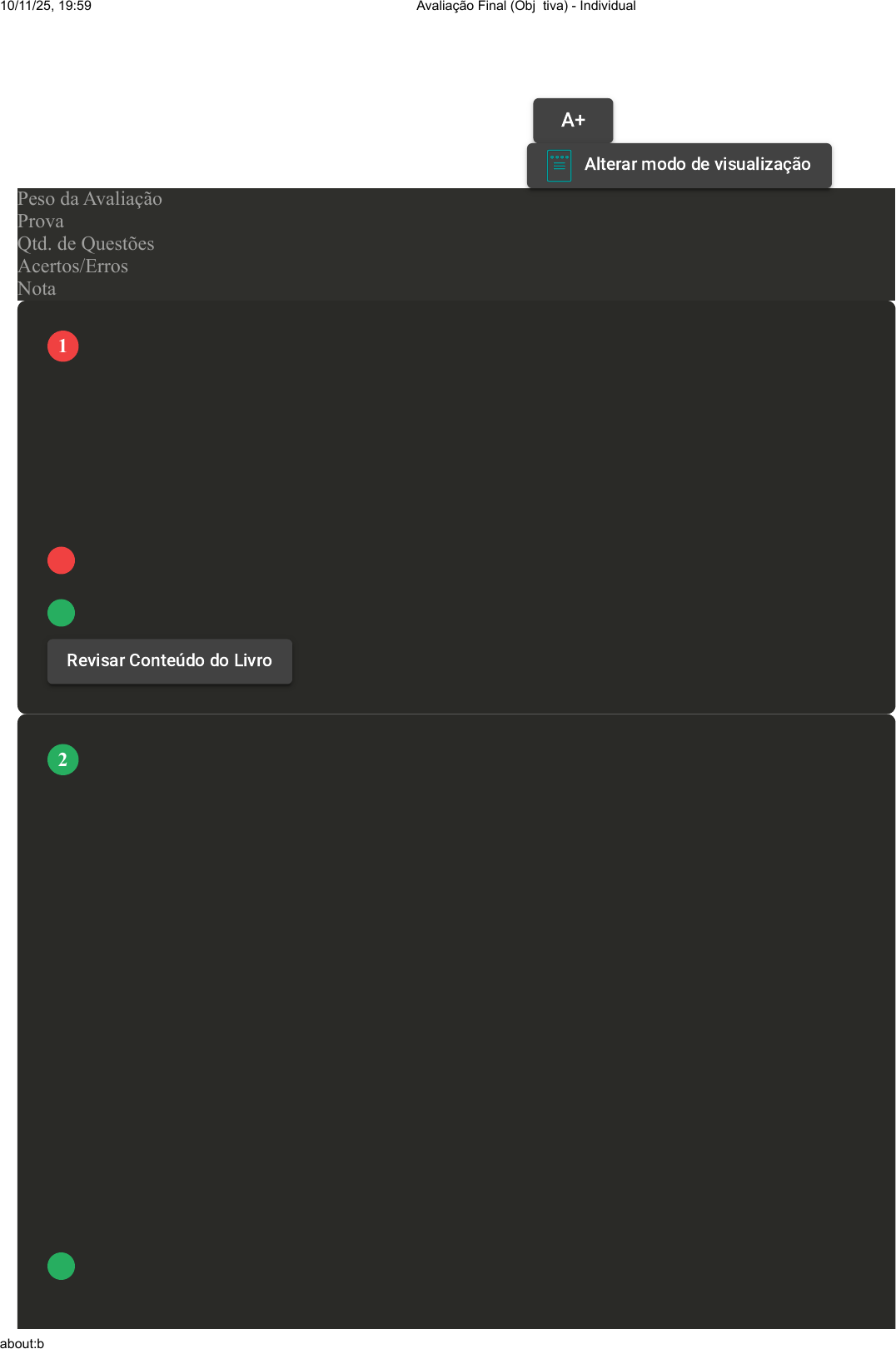 Prova Impressa GABARITO | Avaliação Final (Objetiva) - Individual (Cod.:768347) Peso da Avaliação 3,00 Prova 54115276 Qtd. de Questões 10 Acertos/Erros 6/4 Nota 6,00 Os requisitos do contrato de trabalho são: continuidade, subordinação, onerosidade, pessoalidade, alteridade. Esses requisitos são primordiais para que o contrato de trabalho exista como a relação jurídica. Ao estabelecer uma remuneração mensal ao empregado, caracteriza-se qual requisito contratual indicado pela doutrina? A Continuidade. B Pessoalidade. C Subordinação. D Onerosidade. Os princípios fundamentais da República Federativa do Brasil são valores que orientaram a elaboração da Constituição. Servem como elementos de interpretação e integração do texto constitucional, contribuindo para a unidade da Constituição. São os pilares do nosso ordenamento jurídico. A República Federativa do Brasil, formada pela união indissolúvel dos Estados e Municípios e do Distrito Federal, constitui-se em Estado Democrático de Direito. Sobre os fundamentos da República Federativa do Brasil, classifique V para as sentenças verdadeiras e F para as falsas: ( ) O princípio da soberania que prestigia o pleno exercício das faculdades políticas do indivíduo. ( ) O Estado que é colocado a serviço do próprio indivíduo e não este a serviço do Estado. Os valores sociais do trabalho e da livre iniciativa também são afirmados. ( ) O trabalho é reconhecido pela justa remuneração e de condições satisfatórias para o seu desenvolvimento. A livre iniciativa é prestigiada com a não intervenção abusiva do domínio econômico pelo Estado. ( ) o pluralismo político, permitindo o Estado centralizador, no sentido de eliminar as diversidades de opiniões partidárias ou da Sociedade em geral. Assinale a alternativa que apresenta a sequência CORRETA: A F - F - V - V. B V - F - V - F. C V - V - V - F. D F - V - F - F. VOLTAR A+ Alterar modo de visualização 1 Revisar Conteúdo do Livro 2 10/11/25, 19:59 Avaliação Final (Objetiva) - Individual about:blank 1/6 O amianto foi incluído no grupo principal de substâncias cancerígenas pela Organização Mundial da Saúde (OMS). Segundo a organização, 125 milhões de pessoas estão expostas à substância em todo o mundo, e pelo menos 107 mil morrem anualmente de doenças associadas a ela. Com relação ao amianto, analise as afirmativas a seguir: I- É de responsabilidade do empregador notificar determinados tipos de trabalho que levem à exposição ao asbesto. II- É de responsabilidade do empregador tomar medidas para prevenir ou controlar o desprendimento de poeira de asbesto no ar e para garantir a observação dos limites de exposição. III- É de responsabilidade da autoridade pública a proibição da realização de demolição de instalações ou estruturas que contenham materiais à base de asbesto ou da eliminação do asbesto em prédios ou construções por empregadores ou contratados que não sejam reconhecidos pela autoridade competente como qualificados para tais trabalhos. IV- É responsabilidade do empregado que está exposto ao asbesto obter informações sobre os riscos existentes, conhecer as medidas preventivas e procurar realizar formação contínua a respeito. Assinale a alternativa CORRETA: FONTE: https://saude.estadao.com.br/noticias/geral,saiba-mais-sobre-os-riscos-do-amianto-a- saude,584246. Acesso em: 10 mar. 2019. A As afirmativas II e IV estão corretas. B As afirmativas I e IV estão corretas. C As afirmativas I, II e III estão corretas. D As afirmativas III e IV estão corretas. A NR 12 e seus anexos definem referências técnicas, princípios fundamentais e medidas de proteção para garantir a saúde e a integridade física dos trabalhadores e estabelece requisitos mínimos para a prevenção de acidentes e doenças do trabalho nas fases de projeto e de utilização de máquinas e equipamentos de todos os tipos e, ainda, à sua fabricação, importação, comercialização, exposição e cessão a qualquer título, em todas as atividades econômicas. No que se refere à NR12, classifique V para as sentenças verdadeiras e F para as falsas: ( ) A NR 12 passou a ter nova redação, exigindo a denominada "Falha Segura", pela qual, mesmo havendo acidente, este não poderá acarretar danos a quem opera a máquina ou equipamento, assim como prazos de implementação de alterações/adequações. ( ) Máquinas e equipamentos fabricados antes de 24/06/12 que não possuem manual, será aceita a elaboração de ficha contendo informações básicas, elaborada pela empresa ou por pessoa designada por esta. ( ) Os requisitos essenciais de saúde e segurança deverão ser cumpridos a fim de garantir a segurança da máquina, devendo ser aplicados com discernimento, levando em consideração apenas à data do fabrico, bem como exigências de caráter técnico. ( ) A NR-12 vem sofrendo frequentes mudanças e por tal motivo compete ao empregador estar atento às modificações, visto que seu descumprimento pode resultar em notificação e autuação pelos órgãos de fiscalização do trabalho. 3 Revisar Conteúdo do Livro 4 10/11/25, 19:59 Avaliação Final (Objetiva) - Individual about:blank 2/6 Assinale a alternativa que apresenta a sequência CORRETA: A F - F - V - V. B F - V - F - V. C V - V - F - V. D V - V - V - F. Uma das Normas Regulamentadoras mais importantes, a NR-16 trata das atividades e operações realizadas pelos trabalhadores em condições perigosas. A lei estabelece que, quando a atividade do trabalhador for perigosa (ex.: trabalho com explosivos, combustíveis, sistemas elétricos de potência, radiações ionizantes), deve ser pago a ele um adicional sobre o salário. Assinale a alternativa CORRETA que apresenta o valor a ser pago ao trabalhador: A 10% sobre o salário. B 35% sobre o salário. C 25% sobre o salário. D 30% sobre o salário. A Lei 10.097/2000 afirma que empresas de médio e grande porte devem c
