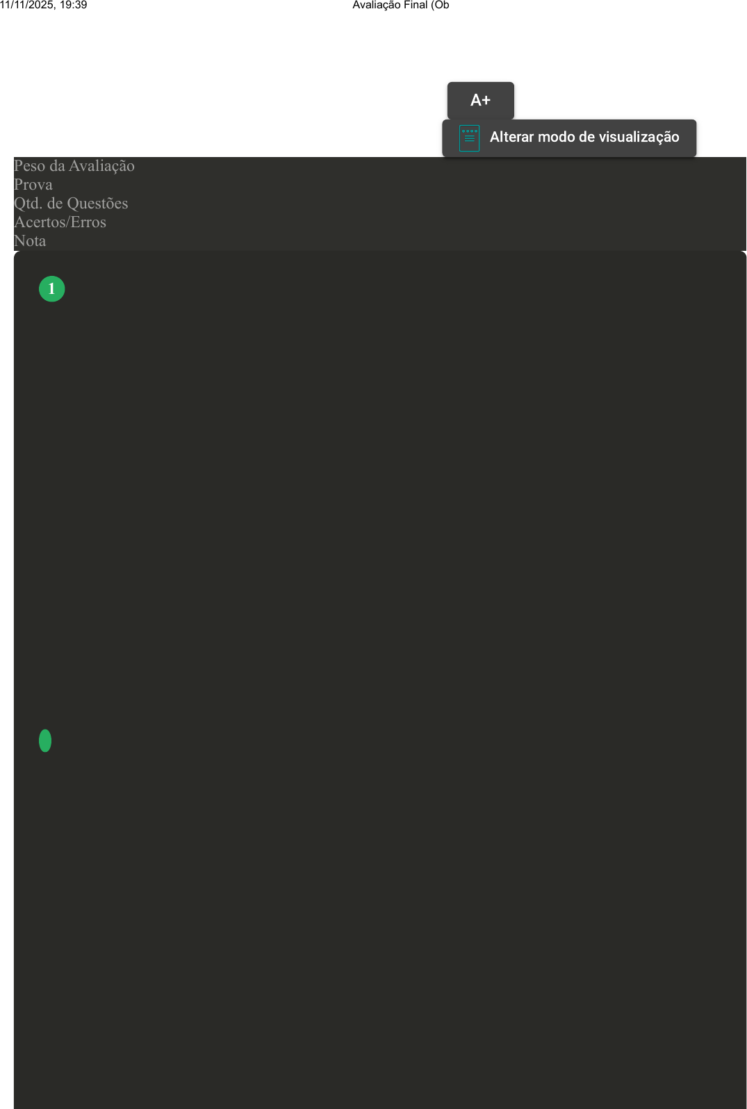 Prova Impressa GABARITO | Avaliação Final (Objetiva) - Individual (Cod.:1522300) Peso da Avaliação 4,00 Prova 103972394 Qtd. de Questões 10 Acertos/Erros 10/0 Nota 10,00 Existem dois tipos principais de raciocínio: o pensamento dedutivo e o pensamento indutivo. Na dedução, são obtidas conclusões a partir de premissas universais. É o que ocorre na matemática, como, por exemplo, partindo da premissa de que os números primos são aqueles naturais maiores do que um e que são divisíveis estritamente por um e por ele mesmo; e que o número três é divisível somente por um e por três, podemos concluir que o número três é um número primo. A dedução é muito limitada na geração de conhecimento inovador, uma vez que fica restrita aos limites impostos pelas premissas. Diferentemente, a indução faz o caminho oposto: ela parte de premissas particulares para se chegar a uma teoria universal. Por exemplo, através de extensas e exaustivas observações e experimentações, Charles Darwin (1809-1882) desenvolveu a Teoria da Evolução por Meio da Seleção Natural, a qual revolucionou a ciência moderna. Portanto, o pensamento indutivo é utilizado no método científico e permite a produção de conhecimento que extrapola os limites das premissas particulares. Fonte: ALMEIDA, L. A Metodologia Científica Moderna. NewsLab, 2022. Disponível em: https://bit.ly/3HjQIKG. Acesso em: 5 jan. 2023. O texto informa que Charles Darwin chegou às suas conclusões utilizando o método indutivo. Ao utilizar o método indutivo para estudar um determinado fenômeno, o pesquisador deve ter alguns conceitos em mente. Sobre o exposto, assinale a alternativa correta: A Se as premissas são todas verdadeiras, provavelmente a conclusão também seja verdadeira, no entanto, isso não é necessariamente verdadeiro. A conclusão contém informações que sequer estavam implícitas nas premissas. B Se as premissas são todas verdadeiras, provavelmente a conclusão também seja verdadeira, no entanto, isso não é necessariamente verdadeiro. A conclusão contém informações que sequer estavam implícitas nas premissas e que podem ser verificadas através de outros métodos científicos. C Se as premissas são todas verdadeiras, a conclusão também é verdadeira. A conclusão contém informações que sequer estavam implícitas nas premissas e que podem ser verificadas através de outros métodos científicos. VOLTAR A+ Alterar modo de visualização 1 11/11/2025, 19:39 Avaliação Final (Objetiva) - Individual about:blank 1/7 D Se as premissas são todas verdadeiras, a conclusão também é verdadeira. A conclusão contém informações que devem estar implícitas nas premissas e que podem ser verificadas através de outros métodos científicos. A ciência se destaca como o meio mais sistemático de buscar respostas para os questionamentos da humanidade desde o seu início, caracterizando-se por um desenvolvimento exponencial, no qual cada nova descoberta possibilita a emergência de muitas outras. Sobre a evolução da ciência e da tecnologia ao longo da história, assinale a alternativa correta que descreve o papel da ciência na Antiguidade Clássica: A A ciência na Antiguidade Clássica era praticada principalmente pelos povos romanos, que são amplamente conhecidos por suas contribuições científicas. B A Antiguidade Clássica é notável porque foi o período em que a ciência começou a desenvolver a tecnologia a um ritmo acelerado. C Durante a Antiguidade Clássica, a ciência tinha o objetivo de compreender o mundo, e não necessariamente de transformá-lo. D Na Antiguidade Clássica, a ciência focava primordialmente na invenção de novas tecnologias para melhorar a vida cotidiana das pessoas. A análise de dados emerge das estratégias implementadas e justificadas durante a fase metodológica, ocasião em que foram estabelecidas ações práticas para a coleta de dados e informações. Sobre a análise e a discussão de resultados em uma pesquisa científica, assinale a alternativa correta: A Os dados coletados na pesquisa sempre devem ser apresentados na totalidade, sem qualquer tipo de recorte ou seleção. B As formas de apresentação dos dados ao leitor podem variar e podem ser numéricas ou literais, dependendo do tipo de pesquisa e método de análise escolhido. C No momento da análise de dados, é desnecessário considerar se o que os dados mostram é válido como evidência para a argumentação da pesquisa. 2 3 11/11/2025, 19:39 Avaliação Final (Objetiva) - Individual about:blank 2/7 D As respostas encontradas na análise de dados devem sempre confirmar a hipótese inicial para que a pesquisa seja considerada válida. O método mais adequado para responder a uma hipótese pode variar dependendo do problema, por exemplo, os métodos usados nas ciências humanas podem ser diferentes dos usados nas ciências naturais. Sobre a subdivisão da ciência e o princípio do método científico, assinale a alternativa correta que melhor descreve o objetivo e a natureza do método científico: A O método científico é um sistema arbitrário e subjetivo de regras adotadas pelos cientistas para alcançar conclusões preferenciais. B O método científico é um conjunto de atividades sistemáticas e racionais que, com mais segurança e economia, permite alcançar o objetivo de produzir conhecimento válido e verdadeiro. C O método científico é uma estratégia flexível e inconsistente para lidar com o estudo dos fenômenos naturais e sociais. D O método científico é um processo linear e determinístico, que invariavelmente conduz à descoberta da verdade objetiva. “Para as organizações, inovação não é apenas a oportunidade de crescer e sobreviver, mas, também, de influenciar decisivamente os rumos da indústria em que se insere. A Apple Computers pegou a indústria de surpresa quando lançou o iTunes e o iPod, e não tanto por serem inovações que ninguém havia at