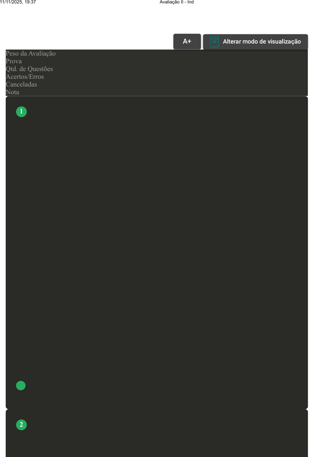 Prova Impressa GABARITO | Avaliação II - Individual (Cod.:1522301) Peso da Avaliação 2,00 Prova 103425054 Qtd. de Questões 10 Acertos/Erros 9/0 Canceladas 1 Nota 10,00 Toda inovação surge de extensa pesquisa, dedicação e esforço, envolvendo um processo estruturado que abrange a identificação de uma necessidade, a busca e seleção de ideias de mudança, até a viabilização e concretização dessas ideias. Sobre a inovação e suas diferentes formas, analise as afirmativas a seguir: I. A inovação incremental busca melhorar ou agregar valor aos processos e produtos já existentes, tendo baixo impacto no mercado e geralmente se baseando em feedback dos clientes ou detecção de necessidades ainda não atendidas. II. A inovação radical envolve uma nova tecnologia e um modelo de negócios inovador, tem o potencial de alterar significativamente a posição competitiva de uma empresa no mercado e geralmente demanda um alto investimento. III. A inovação semirradical sempre exige algum grau de mudança tanto no modelo de negócios quanto na tecnologia, mas as alterações em um desses elementos sempre são bem mais significativas que no outro. IV. As inovações radicais ou disruptivas são comumente introduzidas por empresas estabelecidas no mercado, devido ao alto nível de risco e ao investimento significativo necessário para sua implementação. É correto o que se afirma em: A II, III e IV, apenas. B I e III, apenas. C I, II e IV, apenas. D I, II e III, apenas. Aqueles nascidos no século XXI possivelmente têm dificuldades para conceber o mundo pré-internet, ou compreender o trabalho dos indivíduos no início do século XX. Essa realidade destaca como o VOLTAR A+ Alterar modo de visualização 1 2 11/11/2025, 19:37 Avaliação II - Individual about:blank 1/7 desenvolvimento científico-tecnológico e a inovação correspondente transformam a vida em sociedade rapidamente, algo que pode ser observado ao examinar a evolução do trabalho. Sobre inovação, profissões emergentes e a importância das startups, assinale a alternativa correta: A Segundo o texto, todas as profissões existentes hoje continuarão a existir da mesma forma até 2050. B O texto sugere que a inovação tem um papel menos relevante no século XXI do que teve no passado. C Segundo o texto, a inovação não é um fator importante para o desenvolvimento de novas tecnologias. D De acordo com o texto, a inovação constante pode levar ao surgimento de profissões inteiramente novas, como o analista de dados quânticos e o gerenciador de drones. “Para as organizações, inovação não é apenas a oportunidade de crescer e sobreviver, mas, também, de influenciar decisivamente os rumos da indústria em que se insere. A Apple Computers pegou a indústria de surpresa quando lançou o iTunes e o iPod, e não tanto por serem inovações que ninguém havia até então sequer considerado no campo dos PCs. Em vez disso, o que chamou mais atenção foi a estratégia de combinar mudança tecnológica e mudança do modelo de negócios”. Fonte: DAVILA, T.; EPSTEIN, M.; SHELTON, R. As regras da inovação: como gerenciar, como medir e como lucrar. Tradução de Raul Rubenich. Porto Alegre: Bookman, 2007. p. 21. Sobre o tipo de inovação presente no exemplo da Apple Computers, assinale a alternativa correta: A O tipo de inovação descrita é incremental, pois embora se trate de uma tecnologia nova, utiliza- se de outra preexistente, no caso, os PCs. B O exemplo descreve uma inovação radical, pois houve mudança tanto na tecnologia quanto no modelo de negócios. C O exemplo cita uma inovação incremental, pois evitou a corrosão causada pela concorrência, favorecendo que a Apple Computers sustentasse sua fatia de mercado e lucratividade por mais tempo. D O exemplo trata-se de uma inovação semirradical, pois embora ofereça um produto novo, os PCs já existiam. 3 11/11/2025, 19:37 Avaliação II - Individual about:blank 2/7 Autores como Chandler (1995) consideram que o desenvolvimento tecnológico afeta de maneira implacável todos os âmbitos da vida, sendo, portanto, a fonte principal de todas as mudanças ocorridas em outros setores. Outros fatores seriam apenas coadjuvantes, subordinados à tecnologia, mola-mestre de todo desenvolvimento. Fonte: adaptado de: CORRÊA, R.; GEREMIAS, B. Determinismo tecnológico: elementos para debates em perspectiva educacional. Revista Tecnologia e Sociedade, [s. l.], v. 9, n. 18, 2013. Disponível em: https://periodicos.utfpr.edu.br/rts/article/view/2633. Acesso em: 12 fev. 2023. A partir do exposto, é possível afirmar que a posição de Chandler é: A Correta, pois a tecnologia se tornou o elemento central nas mudanças ocorridas a partir da segunda metade do século XX, determinando inclusive os rumos da economia. B Equivocada, pois a grande impulsionadora das transformações sociais na atualidade é a mídia, considerada por alguns teóricos como o quarto poder, influenciando até mesmo decisões governamentais. C Correta, como fruto do desenvolvimento científico-tecnológico temos hoje a inteligência artificial, que aprende e promove mudanças em seus próprios sistemas. D Equivocada, pois embora sua influência seja notável, a tecnologia não é neutra, responde a necessidades humanas, sejam elas da maioria da população ou de um grupo de poder. O conceito de propriedade intelectual, pertencente ao sub-ramo do direito intelectual, refere-se à proteção legal concedida às invenções originadas da mente humana, permitindo seu registro e subsequente comercialização. Sobre a propriedade intelectual e a propriedade industrial no sistema jurídico brasileiro, assinale a alternativa correta: A O direito autoral e a autoria são a mesma coisa, pois ambos representam o reconhecimento técnico de quem realizou a invenção. B A autoria é o reconhecimento técnico de quem fez a invenção, enquanto o direito autoral é a prerrogativa de explorar comercialment