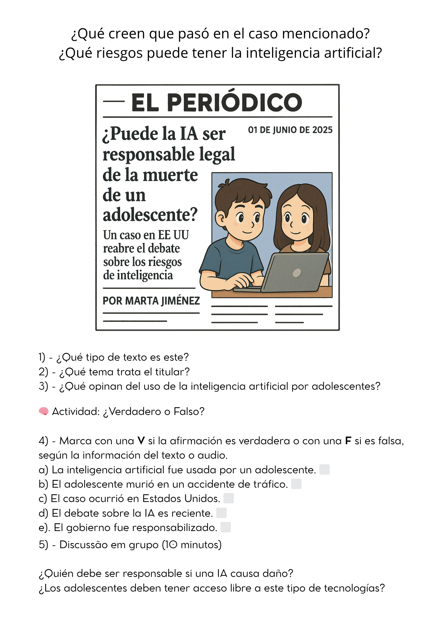 Que tipo de texto es este (Resposta esperada una noticia un texto periodistico) Que tema trata el titular Que opinan del uso de la inteligencia artificial por adolescentes