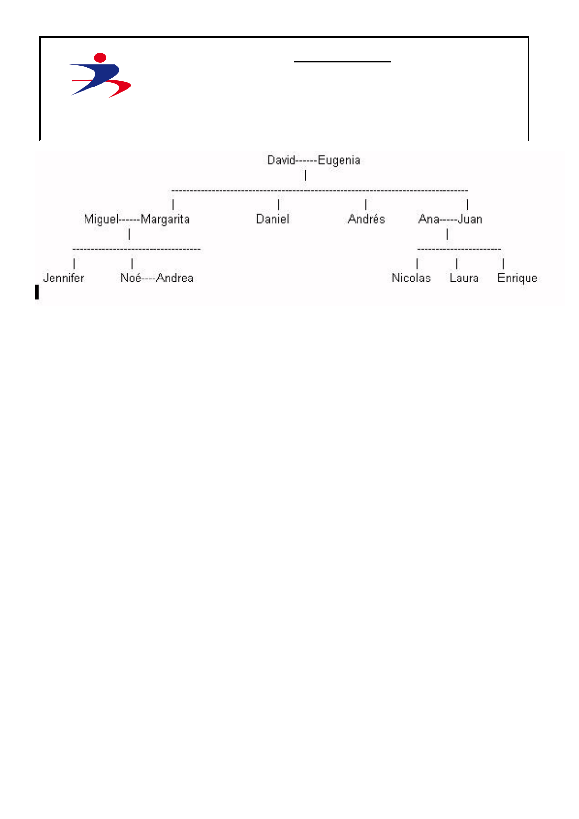 1º ano Lista P1 2º BIM p. 1 1) Responda as perguntas observando a árvore genealógica acima. a) ¿Cómo se llama el suegro de Miguel? b) ¿Cuántos hermanos tiene Margarita? c) ¿Cuántos sobrinos tiene Margarita? d) ¿Quiénes son los cuñados de Miguel? , e) ¿Cuántas nueras tienen David y Eugenia? f) ¿Cómo se llama el sobrino de Ana? g) ¿Cuántos primos (hombres) tiene Laura? h) ¿Cuántas nietas tienen David y Eugenia? i) ¿Cuántos nietos tienen David y Eugenia? j) ¿Quién es el yerno de David? k) ¿Quién es la nuera de Margarita? 2) Indique cual es el grado de parentesco de cada uno: a) Es el padre de tu padre___________ b) El la hija de tu tío___________ c) Es el esposo de tu madre___________ d) Es el hijo de tu hermano___________ e) Es la hija de tus padres___________ f) Es la madre de tu prima___________ g) Es la hija de tu hija___________ h) Es el hermano de tu padre___________ 3) Completa los espacios con los grados de parentesco respectivos. a) Los __________ de mi padre son cuñados de mi madre. b) Mi hermana es __________ de mis padres. c) Eres nieto de tus __________ d) La hermana de su madre es su __________ e) Los __________ de mi tío son mis primos. f) Mi __________ es abuela de mis hijos. g) Los suegros de mi __________ son padres de mi hermano. h) Mi cuñado es casado con mi __________ i) Soy __________ de los padres de mi mujer. j) No tengo __________, soy divorciada. k) Cristina es __________ de sus suegros. l) Mis __________ son hijos de mi hermano. m) Mi abuela es viuda porque mi __________ murió. n) Juan es hermano de Ana y __________ de sus hijas. o) Tengo tres __________: Isabel, María y Enrique. p) Tiene dos __________ gemelos. q) Mi hijo mayor es tío de mis __________ r) Tenemos dos __________ pero no estamos casados. s) La tía de mi __________ puede ser hermana de mi abuelo. t) Tienes una sobrina, __________ de tu hermana. u) Nuestro yerno es __________ de mis dos nietas. v) Es hijo único, no tiene __________ Pré Universitário Uni-Anhanguera LLiissttaa ddee EExxeerrccíícciiooss Aluno(a):_______________________________________Nº.____ Professor: Vitor Savio Série: 1º ano Disciplina: Espanhol Data da prova: 10/05/2014 1º ano Lista P1 2º BIM p. 2 w) Su __________ y sus hermanos son cuñados. x) Mi __________ y yo tenemos una madrastra. y) Mis padres son __________, yo vivo con mi madre. 4) Mira el vocabulario en Español y da los significados en Portugués. a) abuelo b) ahijado c) bisabuela d) bisabuelo e) cuñada f) cuñado g) esposa, mujer h) esposo, marido i) hermana j) hermano k) hijo l) madre m) nieta n) nieto o) niño p) nuera q) padre adoptivo r) padrino s) primo, prima t) sobrino u) suegra INTERPRETAÇÃO DE TEXTO La ministra de Medio Ambiente brasileña presenta su dimisión en defensa de la Amazonía Marina Silva, que fue colaboradora del asesinado líder ecologista Chico Mendes, se opone a varios proyectos del Gobierno de Lula que considera nocivos para la selva Silva, ex recolectora de caucho que ha dedicado su vida política a la defensa del medio ambiente, en la que se involucró de la mano del líder ecologista Chico Mendes, asesinado en 1988, fue nombrada por el dirigente brasileño cuando asumió su primer mandato en enero de 2003. En los inicios del Gobierno era considerada una de las personas de más confianza del presidente, pero las relaciones entre ambos se fueron desgastando debido al claro apoyo del presidente a otros ministerios volcados a fomentar el desarrollo de la Amazonía. La ministra se había opuesto a varios proyectos de infraestructura que consideraba nocivos para la selva amazónica. También el pasado mes de enero culpó a la ganadería y a las plantaciones de cereales de ser responsables de la deforestación de la zona, a lo que el presidente respondió que era prematuro culpar de ese mal a la industria agropecuaria. Vocabulário: caucho: látex; involucrar: envolver; volcado: direcionado; ganaderos: criadores de gado. (http://www.elpais.com/articulo/internacional/ministra/Medio/Ambiente/bra silena/presenta/dimision/defensa/Amazonia/elpepuint/20080514elpepuint _3/Tes. Acessado em 14/05/08) 5) Não está de acordo com o texto: a) A ministra era de confiança do presidente Lula b) Lula considera que o desmatamento da Amazônia é culpa dos agropecuários da região c) Marina Silva teve sua trajetória política iniciada durante sua atuação em defesa do meio ambiente, com Chico Mendes d) A atuação da ex-ministra era prejudicada devido à falta de apoio aos projetos de seu ministério 6) Con relación a Chico Mendes, Marina da Silva a) fue colaboradora del asesinato del líder Chico Mendes b) fue colaboradora de Chico Mendes durante su asesinato c) colaboró con Chico Mendes en su lucha por el medio ambiente d) fue llevada al cargo de Ministra por la mano de Chico Mendez 7) Baseando-se no texto, justifique o motivo que levou a ministra a pedir demissão. 8) O jornal “El País” declara, em sua reportagem, que Marina Silva demitiu-se em defesa da Amazônia. Justifique, baseando- se no texto, essa informação. http://www.elpais.com/articulo/internacional/ministra/Medio/Ambiente/brasilena/presenta/dimision/defensa/Amazonia/elpepuint/20080514elpepuint_3/Tes http://www.elpais.com/articulo/internacional/ministra/Medio/Ambiente/brasilena/presenta/dimision/defensa/Amazonia/elpepuint/20080514elpepuint_3/Tes http://www.elpais.com/articulo/internacional/ministra/Medio/Ambiente/brasilena/presenta/dimision/defensa/Amazonia/elpepuint/20080514elpepuint_3/Tes