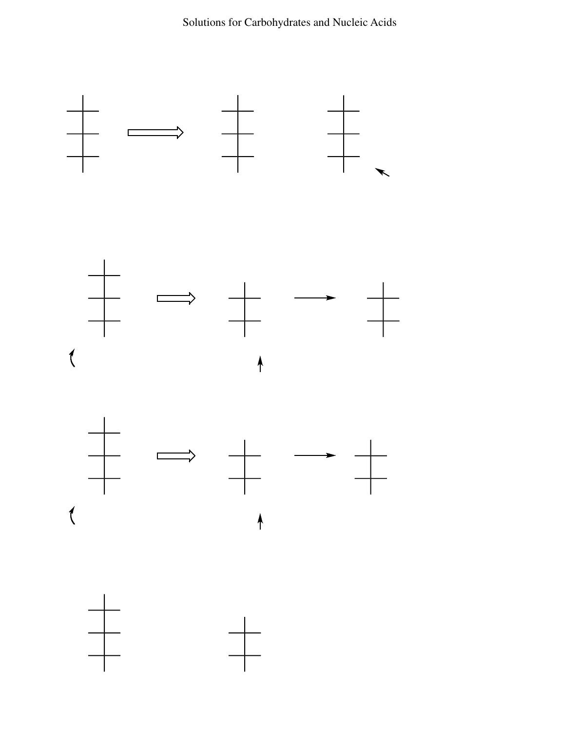 Solutions for Carbohydrates and Nucleic Acids 39 This problem requires logic, inference, and working backwards, just as it did for Emil Fischer. HHO OHH COOH HHO COOH This is the only optically active 5-carbon aldaric acid. came from HHO OHH CH2OH HHO CHO HHO OHH CHO HHO CH2OH OR This could be arabinose. This could be arabinose. (a) Glucose and mannose degrade by one carbon to give arabinose. Parts (a) and (b) determine the structure of arabinose. From the nitric acid oxidation, we do not know which end is the alcohol and which end is the aldehyde. (b) Once we get to the 4-carbon sugars, then we can tell which 5-carbon sugar must be arabinose. HHO OHH CH2OH HHO CHO Ruff HHO CHO OHH CH2OH This possible arabinose degrades to this 4-carbon sugar, oxidation of which gives an optically active aldaric acid. Conclusion: this starting material is not arabinose. HNO3 HHO COOH OHH COOH This is optically active; it has two asymmetric carbons and no plane of symmetry. OHH OHH CH2OH HHO CHO Ruff OHH CHO OHH CH2OH This possible arabinose degrades to this 4-carbon sugar, oxidation of which gives an optically inactive aldaric acid. Conclusion: this starting material is arabinose, and the 4-carbon sugar is erythrose. HNO3 OHH COOH OHH COOH This is optically inactive; it has two asymmetric carbons and a plane of symmetry. This is meso- tartaric acid. (This structure is rotated 180° in the second part of part (b) to put the aldehyde at the top, as is customary.) OHH OHH CH2OH HHO CHO OHH CHO OHH CH2OH erythrosearabinose CONCLUSIONS from (a) and (b): 611
