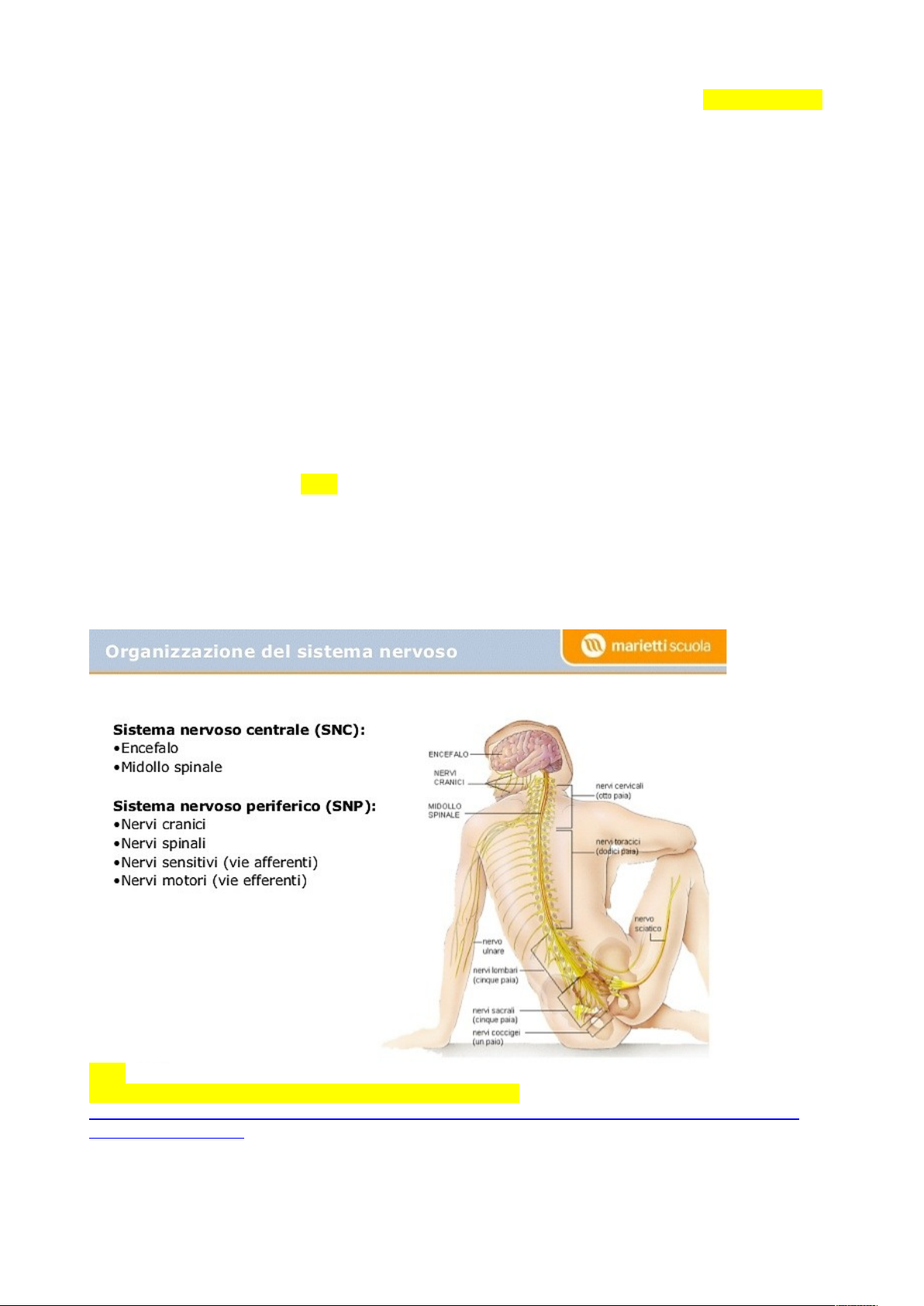 CAPITOLO 18 – TESSUTO NERVOSO ● TONGIORGI 18.1. Generalità del sistema nervoso. Il tessuto nervoso è uno dei quattro tipi fondamentali di tessuto dei metazoi. È costituito da una rete di cellule e fibre interconnesse tra loro che ricevono, conducono ed elaborano gli stimoli sensoriali provenienti dalle varie parti del corpo, generando una risposta integrata che permette ad un individuo di interagire con il mondo esterno e regolare le funzioni interne del proprio organismo. Il tessuto nervoso comprende tre tipologie cellulari fondamentali: 1. il neurone, il principale elemento cellulare con proprietà di eccitabilità e conducibilità, è capace di generare e trasmettere l'impulso nervoso ad altre cellule per mezzo di segnali elettrochimici che si producono in risposta a vari stimoli. 2. le cellule della neuroglia (glia, o nevroglia, dal greco: glia, colla) con funzione trofica, strutturale e funzionale a supporto della propagazione degli stimoli nervosi e dell’omeostasi del tessuto nervoso. 3. il tessuto connettivo. Dal punto di vista anatomico (FIG.1), a partire dal phylum dei Cordati, il tessuto nervoso si organizza in un organo compatto assile, il sistema nervoso centrale (SNC, o nevrasse) che decorre dorsalmente ed è specializzato nei Vertebrati in una regione anteriore, l’encefalo (sinonimo: cervello) racchiuso nel cranio, ed una regione posteriore a struttura tubolare, il midollo spinale contenuto nella colonna vertebrale. Oltre a regolare le principali funzioni vitali dell’organismo, il sistema nervoso centrale è la sede delle funzioni psichiche e intellettive superiori quali la memoria, le emozioni, la coscienza. FIG.1 Rappresentazione schematica del sistema nervoso centrale e periferico. Figura probabilmente coperta da Copyright, tratte dal seguente sito: https://image.slidesharecdn.com/ilsistemanervoso-150421054951-conversion-gate01/95/il-sistema-nervoso-10-638.jpg?cb=1429596184 Il sistema nervoso centrale è in continuità con il sistema nervoso periferico (SNP) costituito da una rete di neuroni raccolti in piccoli aggregati nodulari, i gangli, localizzati nelle vicinanze del SNC a formare una catena gangliare o in gangli individuali posti all’interno o in prossimità degli organi interni. Fanno parte del SNP i neuroni motori (sinonimo: motoneuroni) i cui corpi cellulari sono localizzati nel SNC e le cui fibre nervose fuoriescono dall’encefalo mediante i nervi cranici, o dal midollo spinale mediante i nervi spinali conducendo gli impulsi dal SNC verso il SNP e quindi agli organi destinati alla vita di relazione (nervi motori somatici) o ai visceri (nervi motori viscerali). A loro volta, i neuroni del SNP localizzati nei gangli inviano verso il SNC delle fibre nervose, denominate nervi sensoriali somatici o viscerali, conducendo gli stimoli sensoriali dalla periferia del corpo verso il SNC. Il sistema nervoso comprende anche organi recettori, rappresentati dagli organi per la sensibilità generale e dagli organi di senso specifici. Dal punto di vista istologico, il sistema nervoso presenta un’organizzazione tissutale non facilmente evidenziabile se non per la presenza di regioni ricche in cellule, che costituiscono la sostanza grigia, e regioni che costituiscono la sostanza bianca, dove le fibre nervose sono particolarmente abbondanti e le cellule rappresentano solo una minima parte (FIG. 2). Le fibre della sostanza bianca costituiscono dei fasci lunghi, denominati fascicoli lemnischi (sing. lemniscus) e fasci brevi denominati tratti che possono collegare regioni anteriori e posteriori del sistema nervoso centrale, all’interno del cervello, del midollo spinale o in comunicazione tra i due. I fasci brevi collegano regioni dorsali e ventrali del sistema nervoso sono detti tratti e i peduncoli, i quali collegano il cervelletto con il resto del sistema nervoso centrale. A B C FIG. 2. Distribuzione della sostanza bianca e della sostanza grigia nelle regioni principali del SNC. A) Stanza bianca e grigia nel midollo spinale e nel cervello. B) Immagine tridimensionale ottenuta mediante scansione 3D a spettro diffuso (DSI) dei fasci di fibre nervose della materia bianca del cervello umano, sovrapposta ad una risonanza magnetica. Le fibre trasmettono segnali nervosi tra le regioni del cervello e tra il cervello e il midollo spinale. C) Midollo spinale colorato con impregnazione argentica (Foto in C di E.Tongiorgi) Figure A e B probabilmente coperte da Copyright, tratte dal seguente sito: https://www.brainunraveled.com/it/2017/02/05/neurons-white-matter-grey-matter-neurotransmitters-hormones-e-feromoni/ Altre tipologie di fasci di fibre sono le commissure (la c. anteriore, il corpo calloso e la c. posteriore) che collegano i due emisferi cerebrali, e la c. bianca che collega i cordoni anteriori dei due lati del midollo spinale. I sistemi di fibre commessurali hanno un’importanza fondamentale nel coordinare i movimenti delle due metà del corpo. All’interno della sostanza grigia, i neuroni possono aggregarsi in nuclei, strutture compatte di forma sferica, ovale o poliedrica, oppure in lamine, costituite da sottili strati che nella corteccia cerebrale e nel midollo spinale sono sovrapposti uno sull’altro a formare una struttura a più strati, ciascuno contenente neuroni con caratteristiche morfologiche differenti. Nei nuclei e nelle lamine, i corpi cellulari dei neuroni appaiano separati e senza contatti tra loro in quanto intercalati da cellule della glia, con alcune eccezioni, come per esempio le lamine della regione corticale denominata ippocampo, dove i neuroni sono densamente impaccati e formano giunzioni gap che favoriscono lo scambio di segnali. Dal punto di vista funzionale, il sistema nervoso si distingue in: sistema nervoso volontario (sinonimo: s. n. somatico) che invia impulsi motori ai muscoli scheletrici, e sistema nervoso autonomo (sinonimo: s. n. involontario, conosciuto anche come sistema nervoso vegetativo o viscerale) che è l’insieme di neu