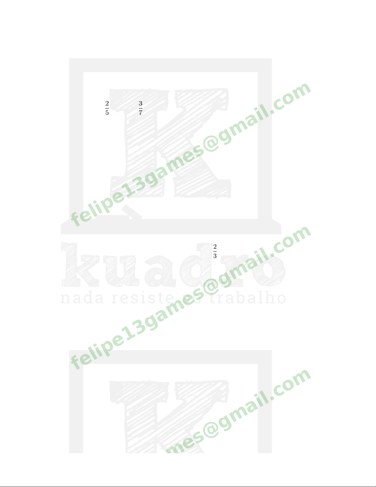 ITA18 - Matemática Problemas do 1º grau Questão 1 Qual é número, cujos mais os mais 54 é igual ao próprio número mais 72? a) -105 b) -100 c) -90 d) 90 e) não sei. felipe13games@gmail.c om Questão 2 Que horas são, se o que ainda resta para terminar o dia é do que já passou? a) 15h 24min b) 14 h c) 14h 24min d) 15 h e) não sei. felipe13games@gmail.c om Questão 3 As idades de João e Pedro somam 45 anos e há 5 anos a idade de João era 4 vezes a de Pedro. Que idades tem agora João e Pedro? a) 29 e 14 b) 29 e 12 felipe13games@gmail.c om https://www.codecogs.com/eqnedit.php?latex=%5Cfrac%7B2%7D%7B5%7D https://www.codecogs.com/eqnedit.php?latex=%5Cfrac%7B3%7D%7B7%7D https://www.codecogs.com/eqnedit.php?latex=%5Cfrac%7B2%7D%7B3%7D c) 33 e 14 d) 33 e 12 e) não sei felipe13games@gmail.c om Questão 4 Roberto tem 24 anos e Paulo 10. No fim de quantos anos a idade de Roberto será o triplo da de Paulo? a) 5 anos depois. b) 3 anos atrás. c) 4 anos depois. d) 10 anos atrás. e) não sei. felipe13games@gmail.c om Questão 5 Dois indivíduos têm o primeiro 45 anos e o segundo 15 anos. Depois de quantos anos a idade do segundo será um quarto da idade do primeiro? a) 8 anos depois. b) 7 anos atrás. c) 6 anos depois. d) 5 anos atrás. e) não sei felipe13games@gmail.c om Questão 6 A soma das idades de A e B é 35. Daqui a 5 anos a idade de A será o dobro da de B. Calcular as idades de A e B. a) 15 e 10 b) 25 e 10 felipe13games@gmail.c om c) 25 e 15 d) 20 e 20 e) não sei felipe13games@gmail.c om Questão 7 Um pai diz a seu fi lho: hoje, a sua idade é da minha e há 5 anos era .Qual a idade do pai e qual a do fi lho? a) 35 e 10 anos b) 34 e 10 anos c) 41 e 20 anos d) 41 e 19 anos e) não sei. felipe13games@gmail.c om Questão 8 Resolva o problema: Há 18 anos, a idade de uma pessoa era o duplo da de outra; em 9 anos a idade da primeira passou a ser da segunda. Que idade têm as duas atualmente? a) 25 e 19 b) 30 e 18 c) 24 e 21 d) 33 e 25 e) não sei. felipe13games@gmail.c om Questão 9 Uma pessoa possui dois cavalos e uma sela que vale 15 reais. Colocando a sela no primeiro cavalo, vale este o dobro do segundo. Colocando-a no segundo, vale este 30 reais menos que o primeiro. Quanto vale cada cavalo? felipe13games@gmail.c om https://www.codecogs.com/eqnedit.php?latex=%5Cfrac%7B2%7D%7B7%7D https://www.codecogs.com/eqnedit.php?latex=%5Cfrac%7B1%7D%7B6%7D https://www.codecogs.com/eqnedit.php?latex=%5Cfrac%7B5%7D%7B4%7D a) 50 e 105 reais b) 60 e 105 reais c) 60 e 100 reais d) 30 e 60 reais e) não sei. felipe13games@gmail.c om Questão 10 Têm-se galinhas e carneiros, ao todo, 21 cabeças e 50 pés.Quantos animais há de cada espécie? a) 17 e 5 b) 18 e 9 c) 18 e 8 d) 17 e 4 e) não sei. felipe13games@gmail.c om Questão 11 Dois operários fazem juntos um trabalho em 12 dias. Um deles sozinho faz esse trabalho em 20 dias. Em quantos dias o outro fará, também só, o mesmo trabalho? a) 28 b) 29 c) 30 d) 31 e) não sei. felipe13games@gmail.c om Questão 12 Dois trens partem, no mesmo instante, e em sentidos opostos, de duas cidades A e B, com velocidades respectivamente iguais a 60 km/h e 50 km/h. Sabendo-se que a distância entre as duas cidades é 330 km, pergunta-se a que distância de A se encontrarão. felipe13games@gmail.c om a) 180 km b) 150 km c) 90 km d) 200 km e) não sei. felipe13games@gmail.c om Questão 13 Duas cidades A e B distam 200 km uma da outra. às 8 horas parte de A para B um trem com a velocidade de 30 km/h e, duas horas mais tarde, parte de B para A um outro trem com a velocidade de 40 km/h. A que distância de A dar-se-à o encontro dos dois trens? a) 80 km b) 110 km c) 120 km d) 170 km e) não sei. felipe13games@gmail.c om Questão 14 Um número é composto de três algarismos cuja soma é 18. O algarismo das unidades é o dobro do das centenas e o das dezenas é a soma do das unidades e das centenas. Qual o número? a) 396 b) 419 c) 502 d) 360 e) não sei. felipe13games@gmail.c om Questão 15 Resolva o seguinte problema: Determinar um número de 3 algarismos compreendido entre 400 e 500, sabendo que a soma dos seus algarismos é 9 e que o número invertido é igual a 36/47 do número primitivo. felipe13games@gmail.c om a) 423 b) 432 c) 450 d) 449 e) não sei. felipe13games@gmail.c om Questão 16 A diferença entre um número de dois algarismos e outro escrito com os mesmos algarismos, mas em outra ordem, é 36. Calculá-los, sabendo que o número das dezenas do primeiro é igual ao inteiro consecutivo ao dobro do algarismo das unidades desse mesmo número. a) 73 e 23 b) 73 e 42 c) 80 e 37 d) 73 e 37 e) não sei. felipe13games@gmail.c om Questão 17 Um número é formado por dois algarismos, cuja soma dos valores absolutos é 8. Se adicionarmos 18 a esse número, o resultado obtido será um número cuja representação decimal está na ordem inversa daquela com que figurava o número dado. O quadrado desse número é: a) 2809 b) 1225 c) 1296 d) 3969 e) não sei. felipe13games@gmail.c om Questão 18 felipe13games@gmail.c om felipe13games@gmail.c om Numa corrida, dos atletas que delas participam, desistem depois de darem a primeira volta na pista; na segunda volta desiste do que restou e terminam a corrida 18 corredores. Participaram dessa corrida, no início: a) 27 b) 28 c) 54 d) 42 e) não sei. felipe13games@gmail.c om Questão 19 Num vaso há 12 l itros de vinho e 18 l itros de água; noutro, há 9 l itros de vinho e 3 l itros de água. Quantos l itros se devem tirar de cada vaso para se obterem 14 l itros que contenham partes iguais de água e vinho? a) 10 e 4 b) 8 e 3 c) 12 e 9 d) 3 e 3 e) não sei. felipe13games@gmail.c om Questão 20 Um número foi dividido em 3 partes, sendo a segunda o dobro da primeira e a terceira o dobro da segunda. Se o número fosse duplicado, a segunda parte aumentaria de uma unidade. Calcule esse número. a) 2 b) 2,5 c) 3 d) 3,5 felipe13games@gmail.c om https://www.codecogs.com/eqnedit.php?latex=%5Cfrac%7B2%7D%7B9%7D https://www.co