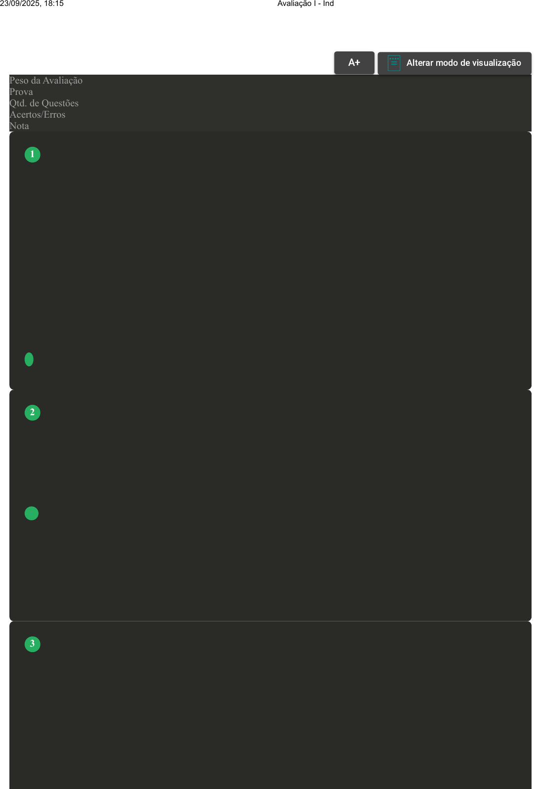 Prova Impressa GABARITO | Avaliação I - Individual (Cod.:1530864) Peso da Avaliação 2,00 Prova 102643303 Qtd. de Questões 10 Acertos/Erros 10/0 Nota 10,00 O equilíbrio dos pilares da vida é um conceito que se refere à busca de harmonia entre as diferentes dimensões que compõem a existência humana, tais como: saúde mental, saúde física, bem-estar emocional, espiritualidade e sustentabilidade ambiental. Cada um desses pilares tem sua relevância para o desenvolvimento integral do indivíduo e sua qualidade de vida. Fonte: RODA da Vida: conheça suas 12 áreas e use essa ferramenta de autoconhecimento. Sua produtividade, 2019. Disponível em: https://suaprodutividade.com.br/roda-da-vida-ferramenta-auto-conhecimento/. Acesso em: 26 out. 2023. Conforme o contexto apresentado, assinale a alternativa correta que apresenta o significado de conquistar o equilíbrio nas diferentes áreas da vida: A Significa priorizar a área da vida que mais nos traz felicidade, como saúde, relacionamentos, trabalho ou espiritualidade, e dedicar menos tempo e energia às outras áreas. B Significa renunciar ao sucesso profissional e financeiro, para se dedicar mais às outras áreas da vida, como saúde, relacionamentos e espiritualidade. C Significa obter sucesso profissional e financeiro, mesmo que isso implique em sacrificar outras áreas da vida, como saúde, relacionamentos e espiritualidade. D Significa desenvolver um olhar introspectivo sobre a qualidade e plenitude de nossa vida, buscando harmonizar todas as áreas, como saúde, relacionamentos, trabalho e espiritualidade. O dia a dia de uma pessoa é corrido, e esse termo faz referência à quantidade de ações e tarefas que necessitam ser executadas para serem finalizadas. Nisso, há o processo de disposição do tempo, o que exige também disposição física e mental. É um processo complexo que as pessoas tendem a exercer para conseguirem realizar algo. Dessa forma, fica claro o processo de perder tempo, que nada mais é do que dedicar uma parcela do tempo de modo que não ajude em nada. Há os otimizadores e desperdiçadores de tempo. Fonte: VIEIRA, P. O Poder da Ação. São Paulo: Gente, 2015. Com base no excerto sobre gerenciamento do tempo, assinale a alternativa correta: A O texto fala sobre o embate entre os desperdiçadores e otimizadores de tempo. B O texto fala sobre a escolha de querer fazer o mais rápido possível. C O texto fala sobre o problema da vida social em compartilhamento de ações entre indivíduos. D O texto fala sobre a preferência pelo perfeccionismo e detalhismo das ações. Arruda (2019, on-line) questiona: “Você se preocupa em alcançar abundância em todos os seus pilares de vida? Você é um bom pai, uma boa mãe, um bom amigo quanto é um bom profissional? Você leva todas as esferas da sua vida com igual importância que merecem?”. A vida é uma jornada cheia de desafios e oportunidades. Para vivermos plenamente, é importante encontrarmos um equilíbrio entre os diferentes aspectos de nossas vidas. Os 10 pilares da vida são um conjunto de princípios que podem nos ajudar a construir uma vida mais feliz, saudável e equilibrada. Os 10 pilares são: espiritualidade, família, relação conjugal, saúde e bem-estar, social e lazer, financeiro, profissional, desenvolvimento pessoal, realização e propósito, equilíbrio emocional. Fonte: ARRUDA, H. Você se sente realizado em todos os pilares da sua vida? Linkedin, 2019. Disponível em: https://www.linkedin.com/pulse/voc%C3%AA-se-sente-realizado-em-todos-os-pilares-da-sua-vida-h%C3%A9lica- arruda/?originalSubdomain=pt. Acesso em: 29 jan. 2024. Sobre os 10 pilares da vida, assinale a alternativa correta: VOLTAR A+ Alterar modo de visualização 1 2 3 23/09/2025, 18:15 Avaliação I - Individual about:blank 1/5 A Pilar família: é analisado também pela capacidade de perdoar e conviver amorosamente apesar das diferenças pessoais. B Pilar desenvolvimento pessoal: está associado à trajetória profissional, seu desenvolvimento e desempenho sob a perspectiva da organização, dos fornecedores e dos clientes. C Pilar profissional: descreve como você lida com seu dinheiro, incluindo não apenas sua renda, mas também seus gastos, poupanças e investimentos. D Pilar saúde e bem-estar: consiste em uma atividade realizada nos momentos de lazer com o propósito de relaxar e aliviar as pressões do cotidiano na sociedade contemporânea. O que é projeto de vida? Projeto de vida é o caminho que o estudante traça entre “quem ele é” e “quem ele quer ser”. É o planejamento que ele faz para atingir seus sonhos pessoais, profissionais e para a vida em sociedade, contando para isso com todo o suporte pedagógico da escola. No projeto de vida, o estudante é estimulado a se autoconhecer e projetar o futuro, traçando objetivos. Assim, poderá fazer escolhas conscientes e alinhadas com os seus anseios para a vida adulta, tanto na esfera pessoal quanto na social e na profissional, buscando, dessa forma, uma vida mais plena e mais feliz. Fonte: BALARDIM, G. Projeto de vida: o que é como trabalhá-lo, e qual o seu papel no Novo Ensino Médio. Clip Escola, 2021. Disponível em: https://www.clipescola.com/projeto-de- vida/#:~:text=O%20que%20%C3%A9%20o%20projeto,o%20suporte%20pedag%C3%B3gico%20da%20escola. Acesso em: 26 jan. 2024. Sobre os benefícios do Projeto de vida, analise as afirmativas a seguir: I. Contribui para o desenvolvimento do autoconhecimento. II. Clareza sobre o propósito e objetivos pessoais. III. Ficar livre de “pagar o preço” da dedicação. É correto o que se afirma em: A I, II e III. B II e III, apenas. C I e III, apenas. D I e II, apenas. Um problema recorrente nos dias de hoje está na disposição para realizar mais tarefas do que o tempo permite. Contudo, isso está relacionado, na verdade, à má administração do período de tempo, ou seja, ao aceitar diversas tarefas com prazo próximo ou semelhante, ocorre a escolha e