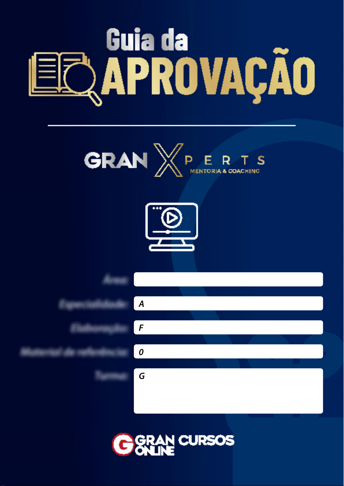 Área: Policial Guia da Aprovação com Fernando Mesquita - PCDF - Polícia Civil do DF - Agente Administrativo (Nível Médio) (Videoaulas) - Curso de referencia: 116641 (CÓDIGO: 123474) Agente Administrativo (Nível Médio) Fernando Mesquita 00 Turma: Especialidade: Elaboração: Material de referência: Livro Eletrônico 2 INTRODUÇÃO GRANXPERTS COLABORADOR Fernando Mesquita É escritor e professor especialista em técnicas de estudos e aprendizagem acelerada. Analista Legislativo da Câmara dos Deputados (licenciado), aprovado em mais de uma dezena de concursos públicos de nível médio e superior, estaduais e federais, civis e militares. Já foi Técnico Bancário da Caixa, Agente de Inteligência da Abin, Analista Administrativo do TRF da 1a Região. É pai da Olívia, tem 4 cachorros e mora em Brasília. Atualmente, dirige o programa de mentoria e coaching do Gran Cursos Online, conhecido como GranXperts. Aluno(a) querido(a), Seja bem-vindo(a) ao nosso Guia da Aprovação para a PCDF – Polícia Civil do DF – Agente Administrativo (Nível Médio) – Módulo Inicial (pré-edital). Se você está aqui, já quero te dar os parabéns, porque você fez o que poucos fize- ram: mergulhou na luta apesar das dificuldades e das dúvidas. A ideia deste guia é te orientar por todos os nossos aproximadamente 158 dias de estudos considerando a carga acordada (pode levar mais ou menos tempo de- pendendo do seu ritmo). É importante lembrar que se você começou a sua preparação com este guia, levará um tempo até que sinta uma certa segurança nos estudos e possa se sentir à altura da prova, mas paciência e dedicação serão atitudes importantes ao longo dos próxi- mos meses. Os guias da orientação trazem orientações, técnicas e conteúdo inédito para tornar a preparação mais fácil e mais direta, e aumentam também sua chance de aprovação. O guia está dividido em duas vertentes: uma parte em texto (com instruções foca- das no cronograma e em sugestões de condução do estudo) e outra em vídeo (para ali- nharmos procedimentos e técnicas). Ambas são importantes e complementares. Nem tudo que tratarmos estará nos PDFs e vice-versa. Mais do que uma simples ferramenta de planejamento, o guia é também um auxílio à execução do seu projeto de estudos. Gostaríamos que você entendesse o guia como um manual de instruções do curso. Os guias da aprovação são um benefício exclusivo dos assinantes ilimitados do Gran Cursos Online. O conteúdo deste livro eletrônico é licenciado para JHENISON LIMA BORGES - 01830891111, vedada, por quaisquer meios e a qualquer título, a sua reprodução, cópia, divulgação ou distribuição, sujeitando-se aos infratores à responsabilização civil e criminal. 3 Atenção: o consumo do guia em vídeo é indispensável para a compreensão do cronograma apresentado aqui. O conteúdo deste livro eletrônico é licenciado para JHENISON LIMA BORGES - 01830891111, vedada, por quaisquer meios e a qualquer título, a sua reprodução, cópia, divulgação ou distribuição, sujeitando-se aos infratores à responsabilização civil e criminal. 4 SÃO RECOMENDAÇÕES BÁSICAS GERAIS PARA O CONSUMO DAS AULAS: • Avalie o que já estudou – caso já tenha iniciado seus estudos para este cargo ou te- nha experiência em concursos, separe algum tempo para marcar como vistas as aulas que não precise rever. Lembre-se que, conforme vimos no guia em vídeo, um conteú- do já visto é substituído por revisões e questões, além de aprofundamento e reestudo em caso de necessidade. • Consuma aulas aceleradas. O padrão que usaremos aqui é de 1,5x. Isso porque, como já discutimos, a aula acelerada aumenta a atenção demandada e reduz a probabilida- de de você “viajar”. Além disso, como a duração-padrão da videoaula no Gran Cursos é de 30 minutos, isso nos permite, em 40 minutos, ver em torno de duas videoaulas, fazendo anotações. • Intercale com PDFs sempre que necessário – para fins de velocidade, o ideal é que você trabalhe com PDFs ou com videoaulas. Os materiais são intercambiáveis, e trabalharemos principalmente com vídeos para efeito de encadeamento das aulas. Mas você pode se sentir à vontade para escolher o material que mais se adeque ao seu desejo. A ressalva fica por conta da solução de dúvidas específicas do material, que podem e devem ser feitas com material diverso daquele principal; • Evite pausar e “rebobinar” a aula – afinal, você perde o propósito de acelerar a aula se, a cada 20 segundos, a pausa ou volta para reouvir algo que o professor disse. A prática de fazer anotações durante aulas aceleradas será desafiadora, mas também engrandecedora. Nem sempre será possível, é fato, e tudo bem. O conteúdo deste livro eletrônico é licenciado para JHENISON LIMA BORGES - 01830891111, vedada, por quaisquer meios e a qualquer título, a sua reprodução, cópia, divulgação ou distribuição, sujeitando-se aos infratores à responsabilização civil e criminal. 5 • Faça suas anotações – estudo ativo é uma ferramenta de engajamento e de aprendizado eficaz. O Prof. Pierluigi Piazzi, embora não tenha cunhado o termo, o definiu de forma excelente como “estudar movendo as mãos”, complementando que isso pressupunha produzir seu material, processando a informação. Grifar não constitui estudo ativo, bem como copiar e colar slides do professor. Pense em processamento. De qual forma você vai receber a informação do professor e transfor- má-la por meio da sua percepção em algo novo? Esse é o objetivo. • Sempre que a aula tiver por base alguma lei, consuma-as de forma concomitante – a maior parte do conteúdo de provas que cobra leis se resume à literalidade da lei. Então, embora a aula sirva para facilitar esse aprendizado, o consumo da lei precisará estar sempre associado à aula, seja para criar conforto com essa busca, seja para que você possa fazer suas pró