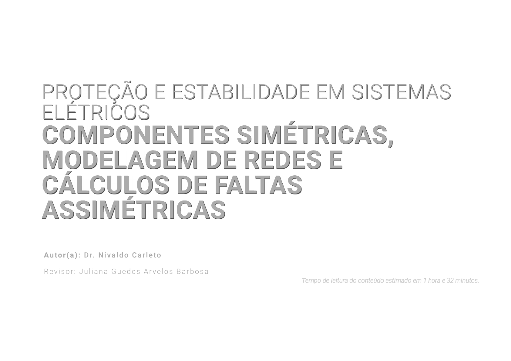 PROTEÇÃO E ESTABILIDADE EM SISTEMAS ELÉTRICOS COMPONENTES SIMÉTRICAS, MODELAGEM DE REDES E CÁLCULOS DE FALTAS ASSIMÉTRICAS Autor(a): Dr. Nivaldo Carleto Revisor: Juliana Guedes Arvelos Barbosa Tempo de leitura do conteúdo estimado em 1 hora e 32 minutos.Introdução Olá, estudante! Os Sistemas Elétricos de Potência (SEP) são constituídos de barramentos que se conectam a inúmeros dispositivos, como, os transformadores de corrente, relés de proteção, chaves fusíveis e religadores. Nesse sentido, a correta operação destes sistemas exige uma análise minuciosa de curtos-circuitos (faltas) e seus transientes, já que a energia elétrica utilizada pelas residências, indústrias e estabelecimentos comerciais dependem da estabilidade e da continuidade do SEP. Diante disso, estudaremos as componentes simétricas e as transformadas de Fortescue, a modelagem de redes para as sequências positiva, negativa e zero, bem como os cálculos de faltas assimétricas em geradores sem carga e em sistemas de potência. que você achou dos assuntos? Gostou? Então, vamos aos estudos! Bons estudos!Componentes Simétricas e Transformadas de Fortescue As componentes simétricas de um Sistema Elétrico de Potência (SEP) são representadas por fasores de tensões e/ou correntes elétricas. Porém, em razão do desequilíbrio de cargas (devido à manobras em subestações elétricas, dimensionamento incorreto das instalações e manutenção de redes de energia), da existência de possíveis faltas (curto-circuito em razão de descargasatmosféricas, por exemplo) e do surgimento de transientes (oscilações em um sistema de energia elétrica em razão de um desequilíbrio de cargas), pode ocorrer a interrupção no fornecimento de energia, ocasionando, com isso, prejuízos aos consumidores em geral. Nessas condições, torna-se necessário realizar um estudo utilizando a modelagem destas componentes simétricas; uma vez que a qualidade da energia elétrica é fundamental no contexto da matriz energética nacional (CARLETO, 2017). REFLITA Prezado(a) estudante, é importante pensar que um sistema elétrico trifásico equilibrado é caracterizado pela simetria entre as tensões e as correntes elétricas? Ou seja, cada conjunto dessas grandezas é constituído por três fasores de módulos iguais e defasados de 120° entre si. Isso mesmo! Como explicação, podemos dizer que essas condições são praticadas em razão das matrizes impedâncias dos componentes de uma rede de energia elétrica equilibrada serem diagonais e com elementos iguais(como as tensões e as correntes elétricas do SEP). Com isso, as análises e as modelagens de um sistema elétrico trifásico equilibrado podem ser realizadas com base em apenas uma fase. Portanto, se conhecermos a corrente ou a tensão elétrica desta fase, é possível determinar as variáveis correspondentes nas outras fases. Interessante, não é? Fonte: Elaborado pelo autor com base em Sato e Freitas (2015). É importante ressaltar que, um sistema elétrico de potência não permanece, continuamente equilibrado, já que podem surgir transientes devido às faltas (curtos-circuitos). Como resultado, sistema fica desequilibrado, não permitindo, com isso, uma modelagem simplificada da rede de energia. Como exemplos, é possível mencionar os seguintes tipos de desequilíbrios existentes em razão das faltas; são eles: curtos-circuitos assimétricos dos tipos fase-terra, fase-fase ou fase-fase- terra. Então, como podemos analisar e modelar sistemas trifásicos desequilibrados? É possível? Tem solução? Sim; este problema pode ser tratado utilizando método das componentes simétricas, desenvolvido por Charles LeGeyt Fortescue (1876-1936). Fortescue, durante a sua pesquisa relacionada com a eletrificação ferroviária (final de 1913), se deparou com problema da operação de motores de indução sob condições desequilibradas. Então, durante a 34th Annual Convention of the American Institute of Electrical Engineers (AIEE),Atlantic City, em 28 de junho de 1918, Fortescue apresentou um artigo intitulado Method of Symmetrical Coordinates Applied to the Solution of Polyphase Networks para simplificar a análise e a modelagem de faltas assimétricas em sistemas trifásicos de energia elétrica (SATO; FREITAS, 2015). De maneira resumida, podemos compreender método das componentes simétricas por meio do seguinte enunciado: um sistema elétrico trifásico desequilibrado pode ser decomposto em três sistemas elétricos equilibrados. Em tempo, salientamos que, esses sistemas decompostos são denominados em três componentes (OLIVEIRA et al., 2000; SATO; FREITAS, 2015) conforme interação a seguir: Olá, estudante! Percebeu a importância do trabalho de Fortescue para simplificar a análise e a modelagem de faltas assimétricas em sistemas trifásicos de energia? Espero que sim, pois é por meio desta modelagem que conseguiremos analisar os problemas das faltas ocorridas em SEP.Fonte: oundum101 / Freepik. Sistema Elétrico de Potência e seus Componentes Um Sistema Elétrico de Potência, também conhecido como SEP, integra inúmeros barramentos, linhas e torres de transmissão, relés de proteção, chaves seccionadoras, disjuntores, religadores, isoladores, para-raios, transformadores de potência, transformadores de corrente, resistores de aterramento, entre outros dispositivos necessários para atender os consumidores em geral. Nessas condições, devido à complexidade do SEP, é importante monitorar fluxo de carga nos barramentos para manter a estabilidade e a continuidade no fornecimento de energia elétrica. Caro estudante, que está achando do assunto? Percebeu a sua importância? Espero que esteja entendendo! Agora, vamos realizar uma atividade muito importante para ampliar ainda mais os seusconhecimentos? Então, vamos lá! Conhecimento Teste seus Conhecimentos (Atividade não pontuada) Os Sistemas Elétricos de Potência (SEP) são sistemas complexos