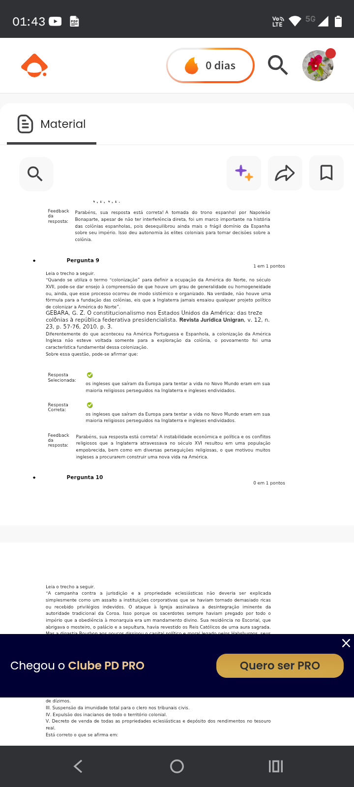 01:43 5G LTE 0 dias Material Feedback sua resposta está correta! A tomada do trono espanhol por da resposta: Bonaparte, apesar de não ter interferência foi um marco importante na das colonias espanholas, pois desequilibrou ainda mais dominio da Espanha sobre seu Isso deu autonomia às elites coloniais para tomar decisões sobre a Pergunta 9 1 em pontos Leia trecho a seguir. "Quando se utiliza termo "colonização" para definir a ocupação da do Norte, no século XVII, pode-se dar ensejo à compreensão de que houve um grau de generalidade ou homogeneidade ou, ainda, que esse processo ocorreu de modo e organizado. Na verdade, não houve uma para a fundação das eis que a Inglaterra jamais ensaiou qualquer projeto de colonizar a do GEBARA, G. Z. constitucionalismo nos Estados Unidos da das treze colônias à república federativa presidencialista. Revista Unigran, V. 12, n. 23, p. 57-76, 2010. p. 3. Diferentemente do que aconteceu na Portuguesa e Espanhola, a colonização da Inglesa não esteve voltada somente para a exploração da colônia, povoamento foi uma caracteristica fundamental dessa colonização. Sobre essa questão, pode-se afirmar que: Resposta Selecionada: os ingleses que sairam da Europa para tentar a vida no Novo Mundo eram em sua maioria religiosos perseguidos na Inglaterra e ingleses Resposta Correta: os ingleses que sairam da Europa para tentar a vida no Novo Mundo eram em sua maioria religiosos perseguidos na Inglaterra e ingleses Feedback sua resposta A instabilidade econômica e politica e os conflitos da resposta: religiosos que a Inglaterra atravessava no século XVI resultou em uma população empobrecida, bem como em diversas perseguições religiosas, 0 que motivou muitos ingleses a procurarem construir uma nova vida na Pergunta 10 0 em pontos Leia trecho a seguir. "A campanha contra a jurisdição e a propriedade não deveria ser explicada simplesmente como um assalto a instituições corporativas que se haviam tornado demasiado ricas ou recebido privilégios ataque à Igreja assinalava a desintegração iminente da autoridade tradicional da Coroa. Isso porque os sacerdotes sempre haviam pregado por todo império que a à monarquia era um mandamento divino. Sua no Escorial, que abrigava mosteiro, e a sepultura, havia revestido os Reis Católicos de uma aura sagrada. Mas Chegou Clube PD PRO Quero ser PRO de III. Suspensão da imunidade total para clero nos tribunais civis. IV. Expulsão dos inacianos de todo colonial. V. Decreto de venda de todas as propriedades e depósito dos rendimentos no tesouro real. Está correto que se afirma em: