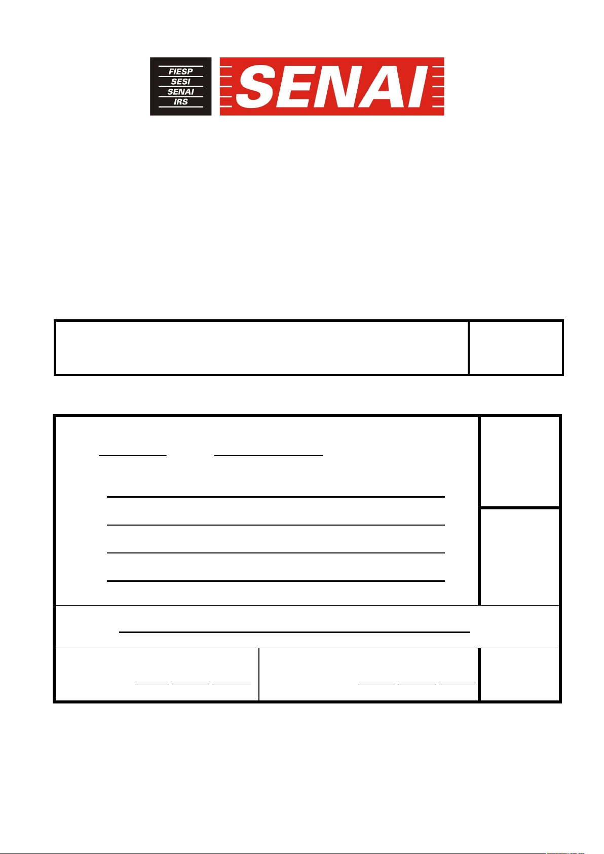 PRÁTICA DE MANUTENÇÃO Equipamento/ Modelo: Motor elétrico Turma: Grupo: Turma: Aluno 1: Aluno 2: Aluno 3: Aluno 4: Nota: Visto: Professor: Data de Início: / / Data de Término: / / Escola SENAI “Manuel Garcia Filho” Título: Introdução teórica Área: Mecânica de Manutenção 1. Introdução 1.1. O que é Motor Elétrico? Motores elétricos são equipamentos que possuem a característica de transformar energia elétrica em energia mecânica. Em função dos tipos de motores elétricos que existem, podemos dividí-los basicamente em três grupos que são: motores de corrente contínua, motores de corrente alternada e os motores universais. Quem trabalha na indústria sabe que o motor elétrico é um equipamento vital para o funcionamento de sistemas rotativos. Podemos dizer que ele é o coração de uma máquina. Seja na linha de montagem ou equipamentos auxiliares, ele está presente em diversos setores de uma empresa. Por exemplo: · Furadeiras, · Tornos mecânicos, · Compressores, · Esteiras transportadoras, · Agitadores e Misturadores, · Talhas elétricas, · Entre outros. Além disso, podemos encontrá-lo também em nosso dia a dia. Elevador, geladeira, máquina de lavar, são alguns exemplos de onde o motor elétrico está presente. 1.2. Tipos de Motores Elétricos Existem diversos tipos de motores elétricos no mercado, mas podemos classificá-los em três grupos principais: motor de corrente alternada (CA), motor de corrente contínua (CC) e motores universais (CA e CC). · Motor de corrente alternada um campo magnético é produzido por bobinas percorridas por correntes elétricas alternadas. Ou seja, há um rotor constituído por um ímã ou bobina que é alimentado pela corrente elétrica. · Motor elétrico de corrente continua (CC): A construção desses motores foi pensada para receber energia de uma fonte polarizada, ou seja, de um sistema onde a energia fornecida percorre um caminho entre entrada e saída. · Motor elétrico universal (CA e CC): Esse modelo de propulsor trabalha com as duas formas de corrente elétrica, alternada e continua. 1.2. Elementos dos motores Elétricos Um motor elétrico é composto por vários elementos principais, cada um com uma função específica. Aqui estão os principais componentes: 1. Estator: A parte fixa do motor que contém os enrolamentos de fio, onde a corrente elétrica cria um campo magnético. 2. Rotor: A parte móvel que gira dentro do estator. Ele é afetado pelo campo magnético gerado no estator. 3. Enrolamentos: Fios condutores que, quando energizados, criam um campo magnético. Podem estar no estator ou no rotor, dependendo do tipo de motor. 4. Comutador (em motores de corrente contínua): Um dispositivo que inverte a direção da corrente elétrica no rotor, garantindo que ele continue girando. 5. Escovas: Conectam o comutador à fonte de energia e permitem a passagem da corrente elétrica. 6. Carcaça: A estrutura externa que protege os componentes internos e mantém o motor unido. 7. Eixo: A parte que transmite o movimento giratório do rotor para a carga. 8. Rolamentos: Reduzem o atrito entre o eixo e a carcaça, permitindo um giro suave. Escola SENAI “Manuel Garcia Filho” Título: Prática de manutenção Área: Mecânica de Manutenção 1. Analisar a desmontagem dos equipamentos e apresentar para o docente o planejamento inicial com: Os dados nominais do equipamento. Situação Problema; Montar um GANTT do processo de desmontagem/montagem e funcionamento, levando em conta o tempo da prova; (ficha 1) Relatar os cuidados a serem tomados durante todo o processo, verificar aspecto técnico e humano; (ficha 2) Os dispositivos necessários (Kit`s para desmontagem e montagem de elementos de máquinas, etc.); (ficha 3) As Ferramentas necessárias (Alicate para anéis, Chave allen, etc); (ficha 3) Os instrumentos necessários (Alicate Amperímetro, Micrômetro externo, etc); (ficha 3) O Croqui do diagrama da ligação elétrica do motor (ficha 4) Entregar as fichas 1, 2, 3 e 4 ao Instrutor responsável. 2. Realizar a inspeção visual; (ficha 5) 3. Desmontar o equipamento conforme o planejamento das fichas 1, 2, 3 e 4; 4. Fazer um esboço ou "croqui" dos dados de placa de um motor elétrico e depois calcule o torque e a potência elétrica desse motor elétrico; (ficha 6 e 7) 5. Registrar os componentes descrevendo seus defeitos, falhas e solução. (ficha 8) 6. Registar como deverá ser feita a lubrificação da máquina, quais os pontos de lubrificação, a periodicidade da lubrificação e o tipo de lubrificante adequado. (ficha 9) 7. Registar os elementos de máquinas que devem ser substituídos em uma lista de compra. (ficha 10) 8. Registrar as peças que devem ser usinadas (se houver), com sua sugestão da máquina operatriz a ser usada e o tempo necessário para a usinagem. (ficha 11) 9. Registrar as alterações que você sugere para melhorar o desempenho do equipamento durante seu trabalho ou manutenção. (ficha 12) 10. Montar o equipamento. 11. Após definida a montagem, fazer o teste de funcionamento quando possível; 12. Montar um Checklist de Manutenção Preventiva do equipamento de acordo com o fabricante onde o mecânico de manutenção possa acompanhar o histórico do equipamento. (ficha 13) 13. Registrar as atividades desenvolvidas por dia de trabalho (Técnicas utilizadas, dificuldades, melhorias, reparos, etc.); (ficha 14) 14. Descrever as aplicações industriais do equipamento e informações técnicas. (ficha 15) Tempo para realização da tarefa: aproximadamente 15 aulas Obs.: Utilizar ferramentas, instrumentos, folhas, tabelas, catálogos, manuais, normas e dispositivos disponíveis durante a atividade; Apenas alguns equipamentos possuem um desenho de montagem, por isso deve-se levantar o maior número de informações possíveis. · Escola SENAI “Manuel Garcia Filho” Título: Cronograma e Cuidados Área: Manutenção Mecânica Ficha: 1 e 2 Cronograma Atividades Cada espaço 