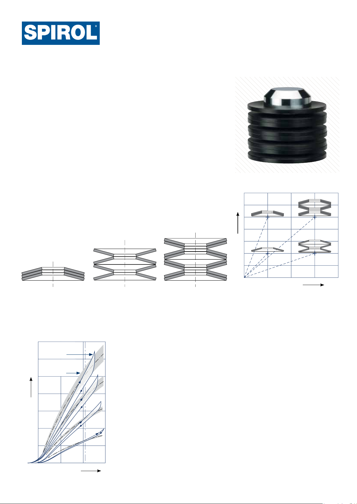 As Molas Prato são componentes cônicas projetadas para carregamento axial. As molas prato podem ser submetidas a cargas estática de forma contínua ou intermitente, ou ainda ser submetidas a ciclos contínuos de carga dinâmica. O que diferencia as Molas Pratos de outros tipos de molas é a deflexão da mola que em relação a uma determinada carga, é previsível, sendo possível calcular a vida útil mínima. Devido à sua previsibilidade, alta confiabilidade e incomparável tempo de fadiga, as Molas Prato são as molas mais utilizadas em aplicações críticas, como válvulas de segurança, mecanismos de embreagem e freio para elevadores e equipamentos pesados, e suportes amortecedores para tubulações industriais. As Molas Prato podem ser utilizadas individualmente ou empilhadas para fornecerem a força-deflexão requerida por a sua aplicação. Este Artigo Técnico detalha os diferentes métodos de empilhamento de Molas Prato e como determinar a configuração adequada de empilhamento para uma aplicação específica. Para obter o melhor desempenho da Mola Prato, a deflexão da mola na operação deve ser mantida entre 15% e 75% da deflexão total, pois é nessa faixa que os resultados correspondem mais precisamente com às características teóricas da Mola Prato. Se uma única Mola Prato não for capaz de atender as características de força/deflexão necessárias para a aplicação, é possível empilhar as Molas Prato em série, em paralelo ou de modo combinado para alcançar os requisitos desejados (veja abaixo: Métodos de Empilhamento e Figura 1). MÉTODOS DE EMPILHAMENTO A fricção (atrito) entre as Molas Prato empilhadas em paralelo deve ser levada em consideração. Os fatores que afetam a fricção incluem o número de molas prato empilhadas em paralelo, o valor de deflexão, a lubrificação e o acabamento da superfície das Molas Prato, além dos elementos-guia. Uma tolerância razoável é de 2% a 3% para cada superfície deslizante. A fricção adicional que ocorre nas Molas Pratos empilhadas em paralelo resulta em uma curva de carga/deflexão diferente da curva teórica. As cargas reais são maiores quando é adicionada uma carga e menores quando uma carga é removida. Essa histerese resulta em um efeito de amortecimento que aumenta com molas prato mais espessas ou com maior número de molas prato empilhadas em paralelo (Figura 2). A fricção (atrito) entre as superfícies deslizantes da mola deve ser minimizada para reduzir o desvio das previsões teóricas e diminuir o calor acumulado que é prejudicial à vida da Mola Prato. As Molas Prato empilhadas em paralelo devem ser lubrificadas com um lubrificante sólido, por exemplo, bissulfeto de molibdênio, e limitadas a um máximo de quatro molas em paralelo. A fricção será menor em uma pilha na vertical do que em uma pilha na horizontal. Em aplicações dinâmicas, há um período de “amaciamento” em que a fricção diminui com o desgaste e consequente polimento do acabamento da superfície deslizante e da superfície de contato. ARTIGO TÉCNICO Como Determinar a Configuração Adequada de Empilhamento de Molas Pratos Por John Leckfor, Engenheiro de Aplicações SPIROL Figura 1 LO A D F DEFLECTION s s 2= 3 s 1 F2= 2F1 s 1 a b d cF1 DEFLEXÃO s C A R G A F Deflexão: Mesma deflexão de uma única mola Força: Força de uma única mola multiplicada pelo número de molas EM PARALELO EM SÉRIE Deflexão: Deflexão de uma única mola multiplicada pelo número de molas Força: Mesma força de uma única mola Deflexão: Deflexão de uma única mola multiplicada pelo número de molas em série Força: Força de uma única mola multiplicada pelo número de molas em paralelo em um conjunto EM COMBINADO LO A D F DEFLECTION s n = 4 n = 3 n = 2 n = 1 Calculated curve Measured curve CÁLCULO DA CURVA CARACTERÍSTICA MEDIÇÃO DA CURVA CARACTERÍSTICA C A R G A F Figura 2 DEFLEXÃO s Ao empilhar as Molas Prato, é possível obter uma ampla gama de características de força/deflexão; a pilha pode ser projetada com curvas de carga específicas para atender aos requisitos da aplicação com possibilidades progressivas e regressivas (Figura 3). CONFIGURAÇÃO DA PILHA Preferencialmente, a pilha deve ter um número par de Molas Prato, com a borda externa da mola posicionada em cada extremidade da pilha para ajudar na estabilidade. Devido às várias restrições de aplicação, nem sempre é possível usar uma pilha com um número par de Molas Prato. No caso em que a pilha for configurada com um número ímpar de molas, a borda externa da Mola Prato deve ficar orientada para a extremidade em que a força é aplicada – a extremidade móvel da pilha. Pilhas menores são mais eficientes, o que é particularmente importante em aplicações dinâmicas. Como consequência da fricção entre as Molas Prato e os elementos de guia externo ou interno, as Molas Prato na extremidade móvel da pilha tendem a apresentar maior deflexão do que as Molas Prato na extremidade oposta. Então usar Mola Prato de maior diâmetro reduzirá o número de molas por pilha e a altura total da pilha. Recomenda-se que a altura total da pilha não exceda 3 vezes o diâmetro externo da Mola Prato ou 10 molas em série. Se a aplicação exigir, pilhas mais altas podem/devem ser divididas com arruelas planas para proporcionar estabilidade. GUIAS DE PILHAS Para manter as Molas Prato no lugar, as pilhas precisam de guias. O melhor método é um guia interno, como uma haste através do diâmetro interno. Em caso de guia externo, sugere-se uma luva. Em ambos os casos, o componente guia deve ser endurecido a 58 HRC com uma profundidade de, pelo menos, 0,6 mm e acabamento da superfície de ≤ 4 mícrons. Uma Mola Prato com espessura de 1 mm ou menos pode apresentar problema de estabilidade na superfície de rolamentos. Nesses casos, recomenda-se o uso de Discos Planos/Arruelas intermediários em contato com o diâmetro externo. Assim que a pilha de Molas Pr