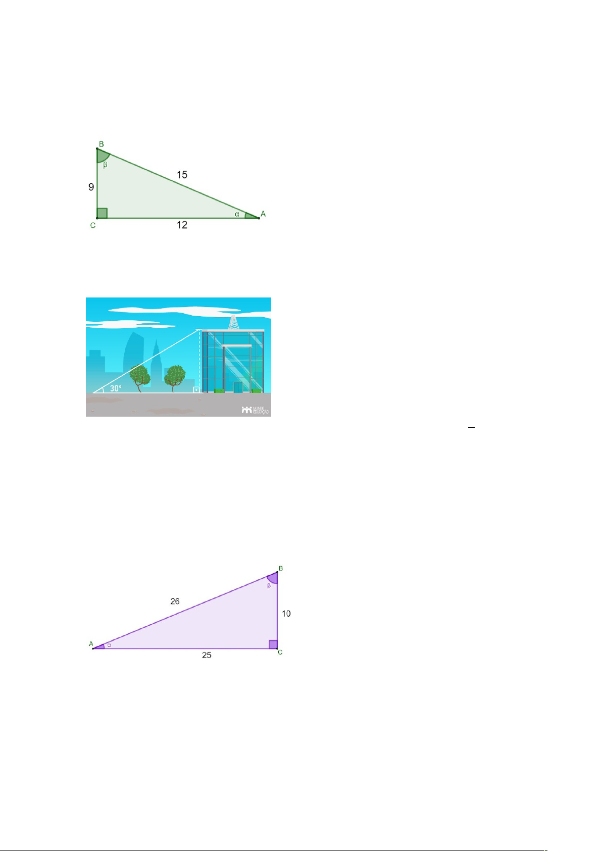 ATIVIDADE RAZÕES TRIGONOMÉTRICAS 1. Analisando o triângulo retângulo, com suas medidas dadas em centímetros, podemos afirmar que o valor do seno do ângulo ꞵ é igual a: 2. Um engenheiro foi contratado para calcular a altura de um prédio sem subir nele. A uma distância de 40 metros, constatou-se que era possível construir o seguinte triângulo retângulo: Podemos afirmar que a altura do prédio é de, aproximadamente quanto? (use ) 3. No triângulo retângulo a seguir, sabendo que seus lados estão medidos em metros, o valor do cosseno do ângulo ɑ é: 4. Um avião levantou voo, formando um ângulo de 20º com o solo, e atingiu uma altura de 1368 metros. A distância percorrida pelo avião, em metros quadrados, foi de: (Use: sen 20º = 0,342; cos 20º = 0,94; tg 20º = 0,364) 5. Um terreno possui o formato de um retângulo cuja base mede 8 cm, sabendo que o ângulo formado entre a base e a diagonal é de 30º, qual o valor que mais se aproxima da diagonal? (Use √3 = 1,7) 6. O valor do comprimento base de um triângulo retângulo isósceles em que os lados adjacentes à base medem 6√2 cm é: 7. As torres Puerta de Europa, construídas numa avenida de Madri, na Espanha, são inclinadas uma contra a outra. A inclinação das torres é de 15° com a vertical, e elas têm, cada uma, altura de 114 m (a altura é indicada na figura como o segmento AB). Essas torres são um bom exemplo de um prisma oblíquo de base quadrada, e uma delas pode ser observada na imagem. Utilizando 0,26 como valor aproximado para a tangente de 15° e duas casas decimais nas operações, descobre-se que a área da base desse prédio ocupa na avenida um espaço a) menor que 100 m². b) entre 100 m² e 300 m². c) entre 300 m² e 500 m². d) entre 500 m² e 700 m². e) maior que 700 m². 8. (Cesgranrio) Uma escada de 2 m de comprimento está apoiada no chão e em uma parede vertical. Se a escada faz 30° com a horizontal, a distância do topo da escada ao chão é de: a) 0,5 m b) 1 m c) 1,5 m d) 1,7 m e) 2 m 9. (Cesgranrio) Uma rampa plana, de 36 m de comprimento, faz ângulo de 30° com o plano horizontal. Uma pessoa que sobe a rampa inteira, eleva-se verticalmente de: a) 6√3 m. b) 12 m. c) 13,6 m. d) 9√3 m. e) 18 m. image1.jpeg image2.jpeg image3.jpeg image4.png