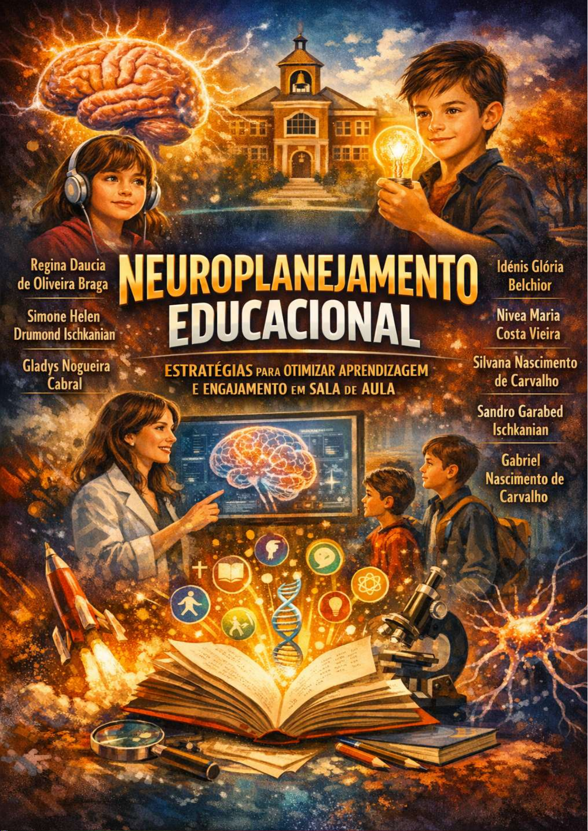 1 2 NEUROPLANEJAMENTO EDUCACIONAL: ESTRATÉGIAS PARA OTIMIZAR APRENDIZAGEM E ENGAJAMENTO EM SALA DE AULA. Regina Daucia de Oliveira Braga Simone Helen Drumond Ischkanian Gladys Nogueira Cabral Idênis Glória Belchior Nívea Maria Costa Vieira Silvana Nascimento de Carvalho Sandro Garabed Ischkanian Gabriel Nascimento de Carvalho O neuroplanejamento educacional constitui uma abordagem inovadora que integra princípios da neurociência, metodologias ativas e tecnologias emergentes para otimizar o planejamento pedagógico, favorecendo aprendizagem significativa e maior engajamento em sala de aula. O professor torna-se um mediador que utiliza evidências científicas sobre o funcionamento cerebral, motivação e construção do conhecimento para estruturar práticas de ensino mais eficientes e responsivas às demandas cognitivas e socioemocionais dos alunos. Sob essa perspectiva, a aprendizagem deixa de ser um processo linear e passa a ser concebida como fenômeno dinâmico associado à plasticidade cerebral e à interação social. Autores como Coll, Marchesi e Palacios (2004) destacam que o desenvolvimento psicológico está diretamente relacionado ao acesso a experiências educativas variadas e contextualizadas, contribuindo para o fortalecimento das funções cognitivas superiores. Em complemento, Moreira (2000) e Silva e Schirlo (2014) reforçam que a aprendizagem significativa ocorre quando o aluno estabelece relação entre conhecimentos prévios e novos conteúdos, o que evidencia a necessidade de estratégias diversificadas. O neuroplanejamento, alinhado às contribuições de Dewey e Freire, analisadas por Caron, Souza e Souza (2016), valoriza a autonomia discente e o caráter democrático da aprendizagem, compreendendo a escola como espaço crítico e formativo. A motivação, tema trabalhado por Araújo et al. (2023) e Henrique-Sanches et al. (2023), é componente central para o engajamento, pois influencia a qualidade da atenção, da memorização e do desempenho acadêmico, reforçando o papel do afeto, da curiosidade e da autorregulação emocional no processo educativo. Aguiar et al. (2023), Castells (2010) e Freitas et al. (2024) defendem que o uso de tecnologias e recursos interativos promove ambientes mais ricos e multisensoriais, favorecendo ciclos de aprendizagem alinhados às exigências da sociedade contemporânea em rede. Paralelamente, as contribuições metodológicas de Creswell (2021), Gil (2018), Lakatos e Marconi (2017) e Prodanov e Freitas (2013) reforçam a necessidade de rigor investigativo na produção de conhecimento e na construção de práticas pedagógicas validadas cientificamente, assegurando que o neuroplanejamento não seja mera reprodução de neuroconceitos descontextualizados. Compreender o planejamento pedagógico a partir da neurociência é reconhecer que o cérebro aprende melhor quando estimulado por experiências significativas, ambientes colaborativos e estratégias interdisciplinares que provoquem reflexão e participação ativa. O neuroplanejamento educacional possibilita integrar BNCC, tecnologias, currículo e formação docente, articulando conhecimento teórico e prática escolar, visando ao desenvolvimento integral dos estudantes. Conclui-se que essa abordagem potencializa a aprendizagem, fortalece o engajamento e contribui para o desenvolvimento de competências cognitivas, emocionais e sociais, reafirmando o papel transformador da educação no século XXI. Palavras-chave: Neurociência educacional; planejamento pedagógico; engajamento escolar; aprendizagem significativa; metodologias ativas; inovação educacional. 3 EDUCATIONAL NEUROPLANNING: STRATEGIES TO OPTIMIZE LEARNING AND ENGAGEMENT IN THE CLASSROOM. Regina Daucia de Oliveira Braga Simone Helen Drumond Ischkanian Gladys Nogueira Cabral Idênis Glória Belchior Nívea Maria Costa Vieira Silvana Nascimento de Carvalho Sandro Garabed Ischkanian Gabriel Nascimento de Carvalho Educational neuroplanning constitutes an innovative approach that integrates principles of neuroscience, active methodologies, and emerging technologies to optimize pedagogical planning, promoting meaningful learning and greater engagement in the classroom. The teacher becomes a mediator who uses scientific evidence about brain functioning, motivation, and knowledge construction to structure more efficient teaching practices that are responsive to the cognitive and socioemotional demands of students. From this perspective, learning ceases to be a linear process and begins to be conceived as a dynamic phenomenon associated with brain plasticity and social interaction. Authors such as Coll, Marchesi, and Palacios (2004) highlight that psychological development is directly related to access to varied and contextualized educational experiences, contributing to the strengthening of higher cognitive functions. In addition, Moreira (2000) and Silva and Schirlo (2014) reinforce that meaningful learning occurs when students establish connections between previous knowledge and new content, demonstrating the need for diversified strategies. Neuroplanning, aligned with the contributions of Dewey and Freire, analyzed by Caron, Souza, and Souza (2016), values student autonomy and the democratic character of learning, understanding the school as a critical and formative space. Motivation, a theme explored by Araújo et al. (2023) and Henrique-Sanches et al. (2023), is a central factor for engagement, as it influences the quality of attention, memory, and academic performance, reinforcing the role of affection, curiosity, and emotional self- regulation in the educational process. Aguiar et al. (2023), Castells (2010), and Freitas et al. (2024) argue that the use of technologies and interactive resources promotes richer and multisensory environments, encouraging learning cycles aligned with the demands of contemporary networked society. At the same time, methodological contributions from Creswell (2021), Gil (2018), 