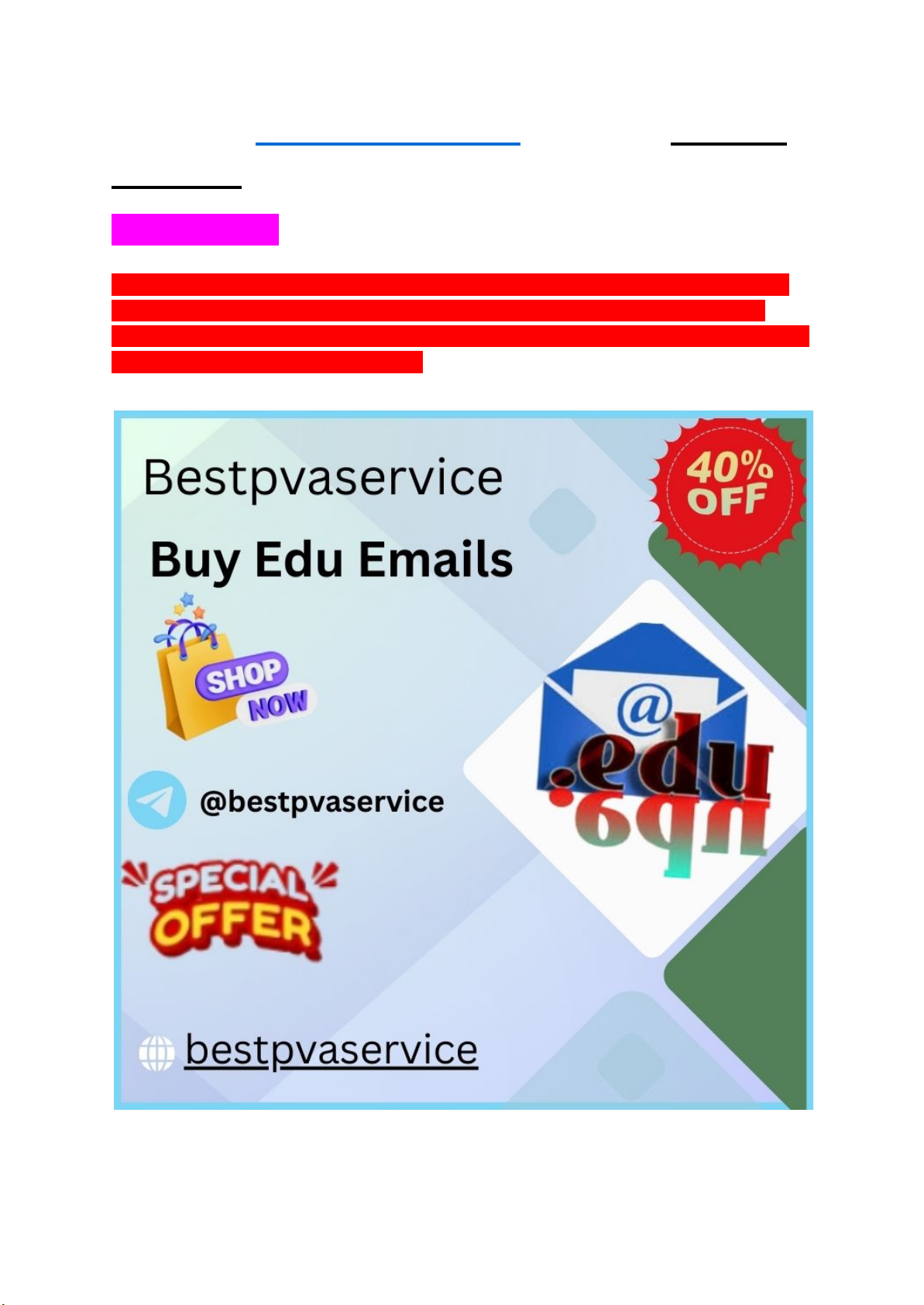 Telegram: @bestpvaservice WhatsApp:+1 (581) 615-7428 Buy Edu Email If you want to buy Edu emails instant for unlocking educational and resources, and want to connect with businesses, place your order at Bestpvaservice.COM . Edu emails can unlock exclusive benefits for businesses. So, buy Edu emails instant of all country including USA, UK and others. https://t.me/bestpvaservice https://api.whatsapp.com/message/S6RASRZ6CRESE1?autoload=1&app_absent=0 https://api.whatsapp.com/message/S6RASRZ6CRESE1?autoload=1&app_absent=0 Edu Mail is a powerful resource for students seeking to excel in their academic pursuits. From access to educational resources to exclusive discounts, Edu Mail offers a myriad of benefits that can propel students towards academic success. Our Edu (.edu) emails status- ➤ Instantly Delivery ➤ Google/outlook Login Success ➤ Azure will be working ➤ Google Drive supported ➤ Amazon Prime will be working ➤Customer Satisfaction Guaranteed ➤ USA University Edu Email ➤ 24/7 Customers Support If you face any problem you can contact us. we are online 24/7 hours Telegram: @bestpvaservice WhatsApp:+1 (581) 615-7428 Email: bestpvaservice@gmail.com Buy Edu Emails Buy Edu emails has become a popular trend among students and researchers seeking access to exclusive educational resources. These specialized email accounts offer unique benefits, such as discounts on software subscriptions, access to academic journals, and eligibility for student discounts. By purchasing an Edu email, individuals can tap into a world of opportunities that enhance their academic experience and professional development. However, the legitimacy and ethics of buy Edu emails raise important questions. While some argue that it provides equal access to educational resources, others believe it undermines the integrity of academic institutions. Additionally, there are concerns about the market for fake or unauthorized Edu emails and potential risks associated with using them in educational settings. The debate surrounding buy Edu https://t.me/bestpvaservice https://api.whatsapp.com/message/S6RASRZ6CRESE1?autoload=1&app_absent=0 mailto:bestpvaservice@gmail.com https://en.wikipedia.org/wiki/.edu emails highlights the complex relationship between technology, education, and ethical considerations in the digital age. Despite the controversies surrounding buy Edu emails, it is essential for individuals considering this option to weigh the pros and cons carefully. Understanding the implications of purchasing an Edu email account will help users make informed decisions about how best to leverage these resources without compromising their integrity or facing potential consequences in their academic or professional pursuits. What is Edu Mail Accounts? Edu Mail accounts, also known as educational email accounts, are email addresses provided to students and faculty by educational institutions. These emails typically have a domain ending in .edu, signifying their affiliation with an academic institution. Edu Mail accounts offer numerous benefits, including access to exclusive discounts on software, services, and products for education-related purposes. Moreover, Edu Mail accounts often provide students with access to various online resources such as research databases, academic journals, and cloud storage services. These accounts are also valuable for communication within the academic community and can be used to receive important updates from professors or university administrations. Overall, having an Edu Mail account is not just about the email address; it’s a gateway to a world of educational opportunities and privileges that can enhance a student’s academic experience. https://en.wikipedia.org/wiki/.edu Buy Edu Emails Top benefits of a student email address Having a student email address comes with a myriad of benefits that can greatly enhance your academic and personal life. Firstly, it provides access to exclusive discounts and deals from various retailers and service providers that are often available only to students. This can lead to significant cost savings on essential items such as electronics, software, clothing, and more. Secondly, a student email address opens the door to a wide range of educational resources and tools that are specially curated for students. These resources may include free or discounted software subscriptions, access to academic journals and research databases, as well as opportunities for internships or job placements tailored specifically for students. Furthermore, having a student email address allows you to easily communicate with professors, classmates, university administration, and potential employers in a https://bestpvaservice.com/product/buy-aged-github-accounts/ professional manner. This creates an efficient channel for networking and staying connected within the academic community. Ultimately, having a student email address is not just about sending or receiving emails; it is about unlocking valuable opportunities that can enrich your educational journey and prepare you for future success. How to export emails from outlook 365 One of the key features of Outlook 365 is its ability to easily export emails for various purposes. To do this, start by opening the Outlook 365 application and selecting the folder from which you want to export emails. Next, go to the File menu and choose Open & Export followed by Import/Export. From there, select Export to a file, then choose Outlook Data File (.pst) and proceed with the export process. This method allows you to save your emails in a convenient .pst file format that can be easily transferred or archived. Another useful way to export emails from Outlook 365 is by using the drag-and-drop feature. Simply select the email or emails you wish to export, then drag them into a folder on your desktop or any other desired location. This method provides a quick and effortless way to store important emails outside of the Outlook environme
