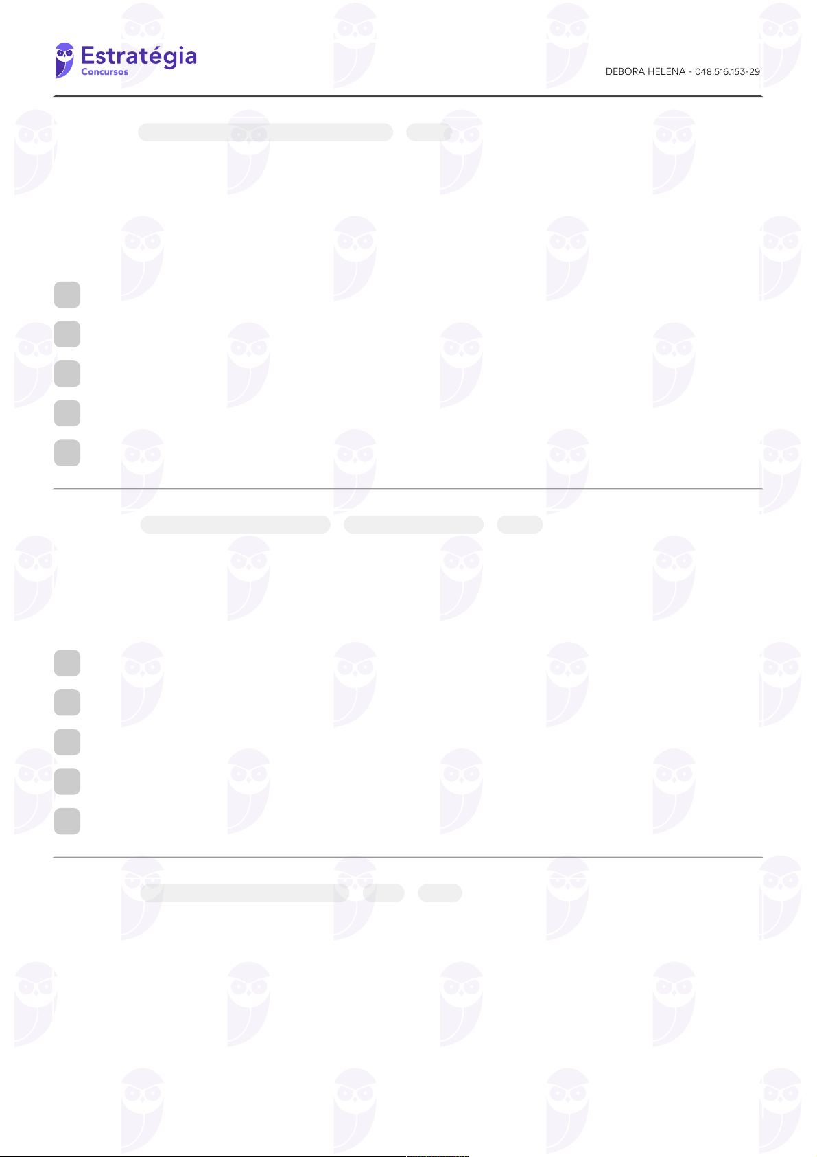 DIR PROC CIVIL FCC DEBORA HELENA - 048.516.153-29 Acessar Lista Questão 1 Hipóteses de improcedência liminar do pedido Art 332 Em janeiro de 2024, Diego ingressou com uma ação de indenização por danos morais em face do Estado em decorrência da morte de seu lho, Jonas, em situação de intervenção policial, em 2016. Na época, foi instaurado inquérito policial que concluiu pela impossibilidade de identi car o autor dos disparos, sendo o arquivamento homologado pelo juiz em 2018. Nesse caso concreto, nos termos do Código de Processo Civil, tendo identificada a ocorrência de prescrição, o juiz poderá A indeferir a petição inicial por falta de interesse processual. B julgar liminarmente improcedente independentemente da citação do réu. C julgar antecipadamente o pedido, com base na data de arquivamento do inquérito. D extinguir o feito por ausência de pressupostos de desenvolvimento válido e regular do processo. E reconhecer a existência de preclusão, perempção ou decadência. Essa questão possui comentário do professor no site 4001834081 Questão 2 Divórcio e Separação Consensuais Resolução CNJ n 352007 Art 733 Rogéria e Felipe, casados há 19 anos, têm duas lhas gêmeas, Mara e Maria, que completaram a maioridade civil no mês passado. O casal resolve se divorciar, de forma consensual, existindo patrimônio comum a partilhar, construído conjuntamente. Rogéria vai até o cartório extrajudicial e questiona sobre a possibilidade de realizar o divórcio por escritura pública, ela deve, corretamente, receber como resposta que A o divórcio precisara ser realizado judicialmente por conta da existência de filhos. B o divórcio extrajudicial dependerá de homologação judicial. C há necessidade de se valer da via judicial devido à existência de patrimônio a partilhar. D é possível ser feito o divórcio extrajudicial independentemente de advogado. E poderá realizar o divórcio extrajudicial, tendo em vista que não há filhos incapazes. Essa questão possui comentário do professor no site 4001834072 Questão 3 Assistência Litisconsorcial qualificada Art 119 Art 124 Paulo reside em um condomínio é discorda das regras de acesso à piscina de uso comum impostas pela administradora do condomínio. Não tendo havido oportunidade de resolução extrajudicial, ingressa com ação junto ao juízo competente. Um outro condômino, em seu apoio, ingressa na ação. Neste caso, estamos tratando da figura do https://concursos.estrategia.com/cadernos-e-simulados/cadernos/68a7b1c7-69a8-4c31-990d-d57ad6d2b7ec debor Realce A litisconsórcio misto. B litisconsórcio necessário. C assistente litisconsorcial. D assistente condominial. E terceiro interessado. Essa questão possui comentário do professor no site 4001834059 Questão 4 Art 8 Art 9 Art 10 De acordo com a Lei nº 9.099/1995, nos Juizados Especiais Cíveis, A far-se-á a citação por edital quando o réu se encontrar em local incerto e não sabido. B as partes não precisam ser assistidas por advogado, quer para propor ação como para recorrer. C não se admite a formulação de pedido genérico. D não podem postular, como parte, o incapaz, o preso, as pessoas jurídicas de direito público ou privado, as empresas públicas da União, a massa falida e o insolvente civil. E admitir-se-á o litisconsórcio. Essa questão possui comentário do professor no site 4001114468 Questão 5 Coisa Julgada Art 506 Art 508 Analise as proposições abaixo. I. Com o trânsito em julgado da decisão de mérito, considerar-se-ão deduzidas e repelidas todas as alegações e as defesas que as partes poderiam opor tanto ao acolhimento quanto à rejeição do pedido. II. Os motivos não fazem coisa julgada. III. A coisa julgada atinge os terceiros que, podendo, não hajam intervindo no processo na qualidade de assistentes. IV. Faz coisa julgada a verdade dos fatos, quando estabelecida como fundamento da sentença. Acerca da coisa julgada, está correto o que se afirma APENAS em A III e IV. B I, II e IV. C I e II. D II e III. E I e IV. Essa questão possui comentário do professor no site 4001114464 Questão 6 Cumprimento de Sentença de Obrigação de Fazer e de não Fazer Art 536 Art 537 De acordo com o disposto no Código de Processo Civil, no cumprimento de sentença que haja reconhecido a exigibilidade de obrigação de fazer, o Juiz, A de ofício ou a requerimento da parte, poderá impor multa para compelir o executado à efetivação da tutela específica, cujo valor será revertido ao Estado e abrange as penas por litigância de má-fé. B desde que a requerimento da parte, poderá impor multa, devida ao exequente, para compelir o executado à efetivação da tutela específica, sem prejuízo da aplicação das penas por litigância de má-fé, em caso de descumprimento injustificado à ordem judicial. C desde que a requerimento da parte, poderá impor multa, devida ao Estado, para compelir o executado à efetivação da tutela específica, sem prejuízo da aplicação das penas por litigância de má-fé, em caso de descumprimento injustificado à ordem judicial. D desde que a requerimento da parte, poderá impor multa para compelir o executado à efetivação da tutela específica, a qual será revertida ao Estado e abrange as penas por litigância de má-fé. E de ofício ou a requerimento da parte, poderá impor multa, devida ao exequente, para compelir o executado à efetivação da tutela específica, sem prejuízo da aplicação das penas por litigância de má-fé, em caso de descumprimento injustificado à ordem judicial. Essa questão possui comentário do professor no site 4001114458 Questão 7 Direito aos Interditos Possessórios Ações Possessórias Art 1210 Nicolas anunciou, em rede social, que turbaria a posse de um imóvel de Igor. Este, por sua vez, para defender sua posse, ajuizou ação de reintegração de posse contra Nicolas. De acordo com o disposto no Código de Processo Civil, provado o f