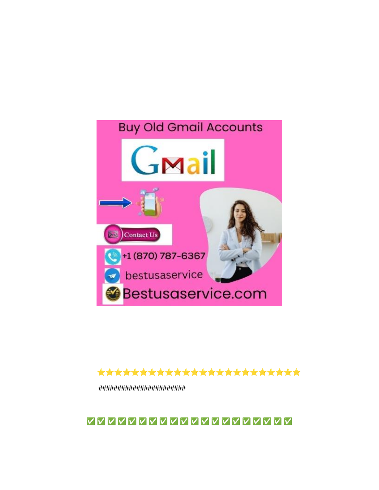 Top Ways to Get and Manage Gmail Accounts in 2026 | Business & Informational Guide Meta Description Learn the top methods to create, secure, and manage Gmail accounts in the USA and globally in 2026. This comprehensive SEO guide by bestusaservice covers setup, verification, business use, scaling, comparisons, and FAQs.⭐⭐⭐⭐⭐⭐⭐⭐⭐⭐⭐⭐⭐⭐⭐⭐⭐⭐⭐⭐⭐⭐⭐⭐ ################################################ @@@@@@@@@@@@@@@@@@@@@@@@@@@@@@@@@@@@ ✅ ✅ ✅ ✅ ✅ ✅ ✅ ✅ ✅ ✅ ✅ ✅ ✅ ✅ ✅ ✅ ✅ ✅ ✅ ✅ If you face any problem you can contact us. we are online 24/7 hours >Telegram : bestusaservice >> WhatsApp :+1 (870) 787-6367 >>>Email :bestusaservice0@gmail.com ✅ ✅ ✅ ✅ ✅ ✅ ✅ ✅ ✅ ✅ ✅ ✅ ✅ ✅ ✅ ✅ ✅ ✅ ✅ ✅ ⭐⭐⭐⭐⭐⭐⭐⭐⭐⭐⭐⭐⭐⭐⭐⭐⭐⭐⭐⭐⭐⭐⭐ Introduction Email remains a core digital identity tool for business and personal use worldwide. Gmail, as Google’s flagship email service, is widely adopted for its reliability, integration with Google Workspace, and ease of use. This guide by bestusaservice explains the top legitimate ways to obtain, configure, and manage Gmail accounts in 2026. The focus is on best practices, business use cases, security, and strategic management. Why Gmail Accounts Are Important for Business Gmail accounts serve as primary contact points for communication, collaboration, and service access. They power sign-ins to critical tools, cloud services, and business platforms. For organizations, Gmail links with Google Workspace, enabling email hosting, shared calendars, and team productivity features. Understanding Gmail Account Ownership and Policies A Gmail account is tied to a unique email address and Google account identity. Google’s terms require accurate personal information and prohibit unauthorized transfer or sale of accounts. Following official setup methods ensures you maintain access, security, and compliance with Google’s user agreement. 1. Create a Gmail Account on Google (Official Method) The most straightforward and legitimate way to obtain a Gmail account is through Google’s official sign-up process. This ensures full access to features and support. Visit the Gmail sign-up page, enter your preferred username, and follow the guided prompts to finalize your account. By using the official path, you retain control over recovery options, multi-factor authentication, and lifecycle management. 2. Use Google Workspace for Business Email Google Workspace offers business-grade Gmail accounts with custom domains (e.g., name@yourcompany.com). This provides professional email addresses tied to your brand. Workspace accounts also include advanced admin controls, shared drives, calendars, and security policies. Business accounts scale easily — adding users, managing permissions, and integrating with third-party tools. 3. Setup Gmail Through Trusted Resellers Organizations that need structured email services can work with official Google Workspace resellers. These partners help with setup, migration, training, and ongoing support. Resellers ensure accounts are created securely under your business domain and comply with Google’s licensing terms. This path combines Gmail’s power with professional onboarding and support, ideal for companies of all sizes. 4. Secure Gmail Accounts with Two-Factor Authentication Security is crucial for email accounts. Enabling two-factor authentication (2FA) adds a second verification step beyond the password. 2FA options include SMS codes, authenticator apps, and hardware security keys for stronger protection. Strong security reduces unauthorized access and supports safe access to connected services. 5. Manage Multiple Gmail Accounts Efficiently Many users maintain separate Gmail accounts for work, personal use, and projects. Gmail supports account switching without repeated logins. Use browser profiles or Google’s built-in account management to keep sessions distinct and organized. This approach helps maintain clarity between personal and professional communications. 6. Use Gmail with Email Clients and Productivity Tools Gmail integrates with email clients like Outlook, Apple Mail, and Thunderbird. It also works with productivity suites like Slack, Notion, and CRM systems. IMAP/POP settings let you receive and send messages within your preferred workflow. Connecting Gmail to these tools enhances communication efficiency across teams. 7. Migrate Existing Email to Gmail Securely If you are transitioning from another email service, Google provides migration tools to pull in mail and contacts. Migration ensures continuity of correspondence without losing historic data. This is common for organizations consolidating email systems or moving to cloud-based productivity. 8. Gmail for Professional Branding A clear, professional Gmail address (e.g., firstname.lastname) supports credibility. For business inboxes, use email signatures, profile pictures, and consistent naming conventions. Branded communication fosters trust with clients and partners. Gmail’s integration with Google Meet, Calendar, and Drive amplifies cross-channel productivity. 9. Automating Gmail with Filters and Labels Filters and labels are powerful Gmail features for organizing your inbox. Set rules to categorize, flag, or archive messages automatically. Structured mailboxes reduce clutter and help prioritize key communications. Teams can standardize filters to improve collaborative workflows. 10. Keep Gmail Accounts Recovery Ready Set up recovery email addresses and phone numbers to simplify account recovery when needed. Regularly review and update recovery options. This safeguards access if you forget your password or encounter lockouts. Prepared recovery settings reduce downtime and lost access. Benefits of Using Gmail Accounts in 2026 Integration with Google Ecosystem Gmail works seamlessly with Docs, Sheets, Drive, Meet, Calendar, and third-p