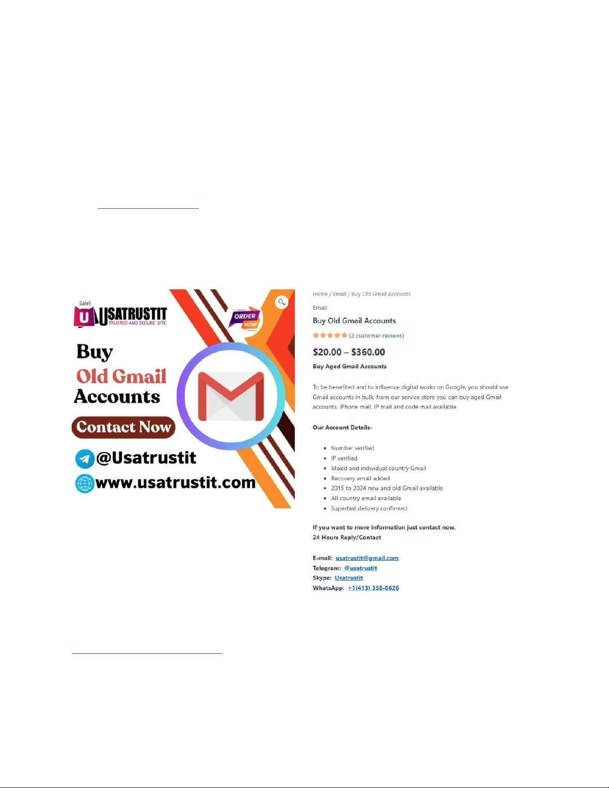 Best 16 Site to Purchase Secure Old Gmail Accounts Introduction Your old Gmail accounts might seem like a relic of the past, but they can still hold valuable information. Whether it’s personal memories, important contacts, or forgotten subscriptions, these accounts deserve attention. However, many users overlook them until it's too late. Securing your old Gmail accounts is not just about accessing what you once had; it's also about protecting yourself from potential risks and breaches. Let's dive into why securing these accounts is crucial and how you can easily safeguard them for the future. Importance of securing old Gmail accounts Securing old Gmail accounts is crucial in today's digital age. With cyber threats on the rise, neglecting an outdated account can expose your personal information to hackers. Many users forget about these accounts, leaving them vulnerable and unprotected. Moreover, old Gmail accounts often contain valuable data such as contacts, emails, and files. Protecting this information is essential for maintaining privacy and preventing identity theft. Taking steps to secure these accounts ensures that your sensitive data remains safe from prying eyes. If you want more information just contact me now. 24 Hours Reply/Contact ⭐✅🎯E-mail: usatrustit@gmail.com ⭐✅🎯Telegram: @usatrustit ⭐✅🎯Skype: Usatrustit ⭐✅🎯WhatsApp: +1(413) 358-0626 ⭐✅🎯Website: https://usatrustit.com/product/buy-old-gmail-accounts/ Assessing Account Recovery Options When dealing with old Gmail accounts, assessing your account recovery options is crucial. Start by checking the last-known password and any linked phone numbers or email addresses. These details can significantly streamline the recovery process. Google's recovery system offers several pathways to regain access. Consider using security questions if you set them up previously. Additionally, look for backup codes that might help in verifying your identity during the recovery phase. Each option plays a vital role in regaining control of your account efficiently. Understanding Google's account recovery process Google’s account recovery process is designed to help users regain access to their old Gmail accounts. It begins when you request a password reset or indicate that you've forgotten your login details. Google will prompt you with several questions, often requiring verification of personal information linked to the account. This may include answering security questions or receiving a verification code via an alternative email or phone number. Each step is crucial for confirming your identity and ensuring that only authorized users can regain access to their accounts. Utilizing official resources for forgotten account access If you've forgotten your old Gmail account details, Google offers several official resources to help you regain access. Start by visiting the Google Account Recovery page. This straightforward tool guides you through step-by-step prompts tailored for various recovery scenarios. You can also explore Google's Help Center, which contains articles specifically designed to address common issues with forgotten credentials. Utilizing these resources not only streamlines your recovery process but ensures you're following the safest methods recommended directly by Google. Tips for Regaining Access If you're trying to regain access to your old Gmail account, start by utilizing the "Forgot Password?" feature. Google will guide you through a series of recovery prompts that may include verification via linked phone numbers or alternative email addresses. Another effective method is answering security questions accurately. If you registered backup options during setup, now's the time to use them. It's crucial to remain calm and patient throughout this process; persistence often pays off when recovering old accounts. Possible recovery methods for old Gmail accounts When trying to recover old Gmail accounts, start with the password recovery option. Enter your email address on the Google sign-in page and follow the prompts. You may receive a verification code via SMS or an alternate email if you’ve set those up previously. If that doesn’t work, consider answering security questions linked to your account. If you can recall details like when you last accessed it or labels you've used, this information could help verify your identity successfully. Best practices for account verification and security To enhance the security of old Gmail accounts, enable two-factor authentication (2FA). This adds an extra layer of protection by requiring a verification code sent to your phone or another device. Even if someone has your password, they can't access your account without this second factor. Additionally, regularly update your recovery options. Ensure that the recovery email and phone number associated with your account are current. These details are crucial for regaining access should you ever forget your password or encounter login issues. Preventive Measures To safeguard your old Gmail accounts, take proactive steps now. Start by enabling two-factor authentication (2FA). This adds an extra layer of protection beyond your password. When someone tries to access your account, they’ll need a code sent to your phone or another approved device. Regularly update your recovery options as well. Ensure that the email and phone number linked to the account are current. By doing this, you can easily regain access should you ever forget your credentials or encounter any issues. If you want more information just contact me now. 24 Hours Reply/Contact ⭐✅🎯E-mail: usatrustit@gmail.com ⭐✅🎯Telegram: @usatrustit ⭐✅🎯Skype: Usatrustit ⭐✅🎯WhatsApp: +1(413) 358-0626 ⭐✅🎯Website: https://usatrustit.com/product/buy-old-gmail-accounts/ Steps to safeguard and prevent future account loss To safeguard your old Gmail account, start by enabling two-factor authentication. This adds an extra layer of se