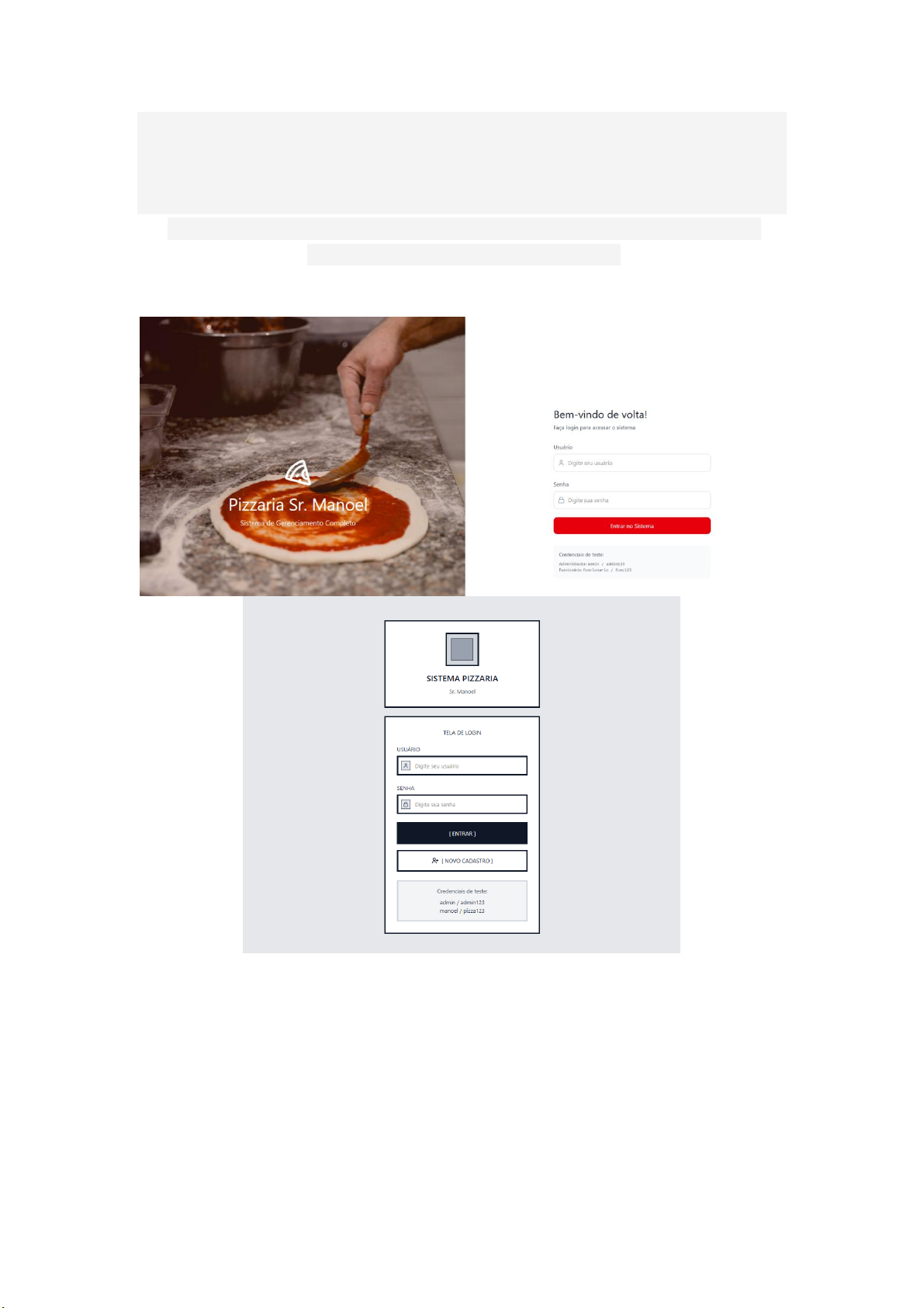 Tela de login: prevista para o sistema, na qual tenha as opções para o