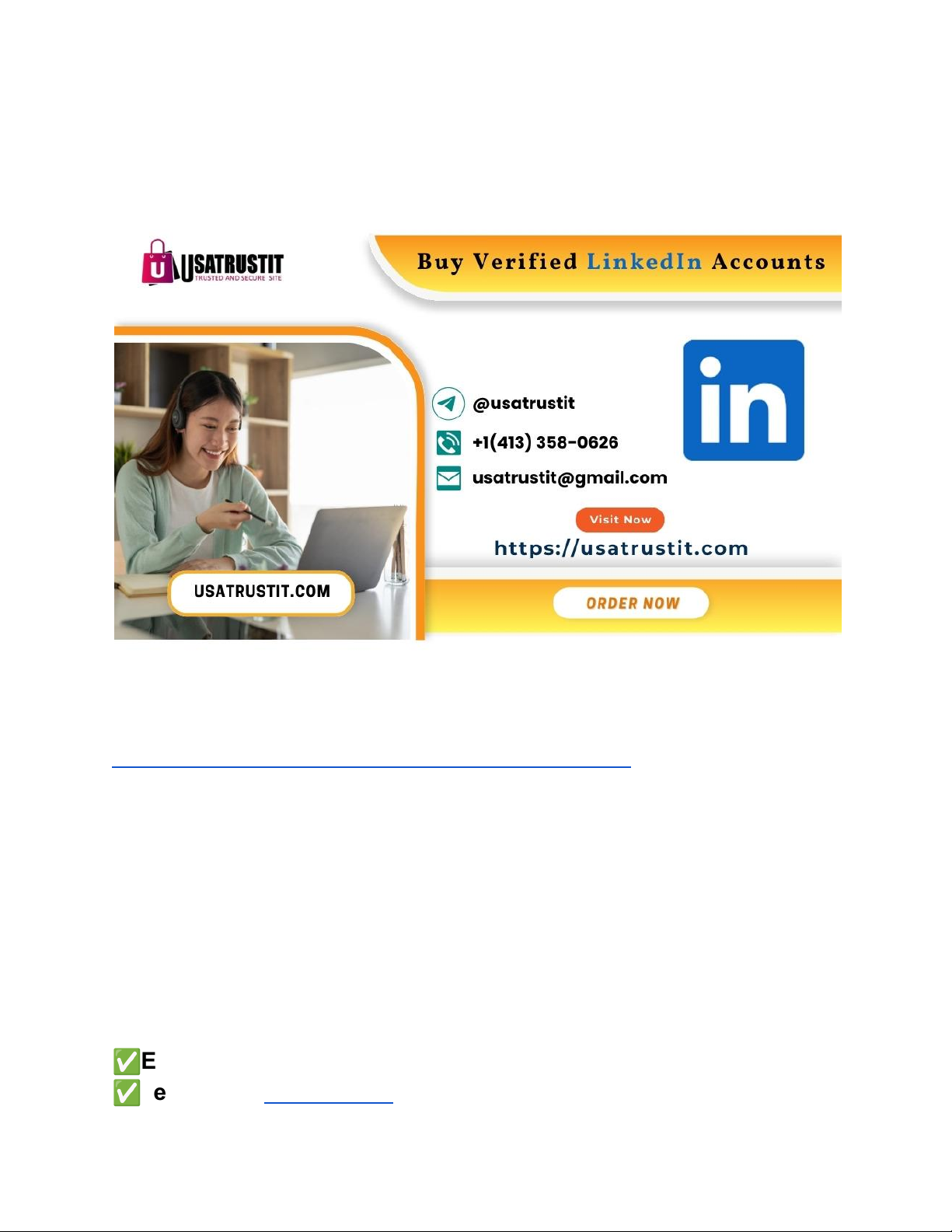 The Power of LinkedIn Accounts: A Key to Unlocking Professional Success What is LinkedIn? LinkedIn is the world’s largest professional networking platform, with over 900 million members across 200+ countries and territories. Unlike social media platforms like Facebook or Instagram, LinkedIn is designed for professional development, career networking, business growth, and showcasing expertise. Creating a well-crafted LinkedIn account is no longer optional—it’s essential for anyone looking to advance their career or business. Whether you're a job seeker, entrepreneur, recruiter, or thought leader, LinkedIn offers a wealth of opportunities to build relationships, gain industry insights, and improve your visibility. If you want more information just contact me now. 24 Hours Reply/Contact ✅E-mail: usatrustit@gmail.com ✅Telegram: @usatrustit https://usatrustit.com/product/buy-verified-linkedin-accounts/ http://t.me/usatrustit ✅Skype: Usatrustit ✅WhatsApp: +1(413) 358-0626 The Importance of Having a LinkedIn Account Here’s why building a LinkedIn profile should be a top priority for your professional journey: 1. Personal Branding Your LinkedIn profile acts as your online resume and portfolio. It’s often the first impression you make on potential employers, clients, collaborators, and peers. A complete and optimized LinkedIn profile highlights your skills, expertise, experience, and accomplishments, enabling you to stand out in a crowded digital world. 2. Networking Opportunities With LinkedIn, you have access to a global network of professionals. You can connect with people in your industry, explore job opportunities, and even build strategic partnerships. LinkedIn’s advanced search filters allow you to find people based on job titles, companies, and shared interests, giving you the tools to grow your professional network exponentially. 3. Thought Leadership LinkedIn provides an excellent platform for establishing yourself as a thought leader in your field. Publishing articles, sharing insights, and engaging in discussions can help position you as an expert. Consistent content creation on LinkedIn allows you to showcase your knowledge, attract followers, and contribute to industry conversations. 4. Job Opportunities and Career Advancement Recruiters actively use LinkedIn to find candidates, making it a prime spot for job seekers. By keeping your profile up-to-date, you ensure that recruiters and hiring managers can find you when they search for talent. For those already employed, LinkedIn serves as a vital tool for career development, helping you stay informed about industry trends and potential job openings. 5. Business Growth and Brand Awareness For entrepreneurs, small business owners, and marketers, LinkedIn offers a direct channel to potential clients, partners, and investors. With features like LinkedIn Pages for businesses, sponsored content, and LinkedIn Ads, you can engage your target audience and grow your business online. Key Elements of a Strong LinkedIn Account https://join.skype.com/invite/rrYleGxz2tIC https://wa.me/14133580626 https://usatrustit.com/product/buy-verified-linkedin-accounts/ https://usatrustit.com/product/buy-verified-linkedin-accounts/ To leverage the full potential of LinkedIn, it’s crucial to optimize your account. Here are the key components of a standout profile: 1. Profile Picture Your profile photo is your first impression. Choose a high-quality, professional headshot that reflects your personality and industry. Profiles with a clear photo receive 14 times more profile views than those without. 2. Compelling Headline Your LinkedIn headline is visible right beneath your name, and it should tell others who you are and what you do in a concise way. Instead of just listing your job title, craft a headline that showcases your value proposition. For example, “Marketing Specialist | Driving Digital Transformation & Business Growth | Helping Brands Build Stronger Customer Relationships.” 3. Customized LinkedIn URL LinkedIn allows you to customize your profile URL. Instead of a long string of random numbers and letters, make it clean and professional by including your name or your business name. 4. Summary (About Section) The "About" section is your opportunity to tell your professional story. Here, you can highlight your strengths, values, and career highlights. Focus on what sets you apart and what you’re https://usatrustit.com/product/buy-verified-linkedin-accounts/ passionate about. Use this section to convey personality and authenticity—don’t just list your job responsibilities. 5. Experience and Achievements Your work experience section should clearly highlight your responsibilities, but also emphasize your impact. Focus on achievements with quantifiable results (e.g., “Increased website traffic by 50%” or “Led a team that secured $500K in funding”). 6. Skills and Endorsements LinkedIn allows you to list up to 50 skills on your profile. Be sure to include a mix of hard and soft skills that match your profession. Ask colleagues and peers to endorse your skills to build credibility. 7. Recommendations Recommendations act as digital testimonials. Request recommendations from managers, clients, or colleagues who can speak to your skills, work ethic, and achievements. A strong set of recommendations adds legitimacy and trust to your profile. 8. Education and Certifications List your educational background, certifications, courses, and training programs. Having relevant credentials on your profile can enhance your authority and appeal, especially if you're targeting a specific industry or career path. 9. Multimedia and Portfolio Enhance your profile by adding multimedia elements like images, videos, presentations, or PDFs. Showcasing projects, public speaking events, or other examples of your work makes your profile more engaging and tangible. 10. Interests and Groups Joining industry-related LinkedIn Groups and following releva