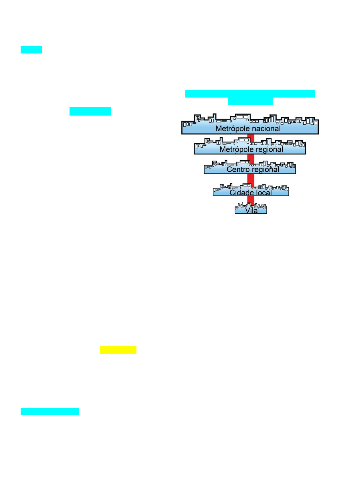 Geografia – Urbanização – Terceiro Ano Professor: Fábio Nobre CIDADE: Na Geografia, definimos cidade como um aglomerado com certo número de habitantes que exercem atividades urbanas, isto é, ligadas à indústria, ao comércio e aos serviços. No Brasil, toda sede de município é classificada como cidade, independentemente do tamanho da população e dos serviços ou recursos que oferece a seus habitantes. REDE URBANA A rede urbana é formada pelo conjunto de cidades – de um mesmo país ou de países vizinhos -, que se interligam umas as outras por meios de sistemas de transportes e de telecomunicações, através dos quais se dão os fluxos de pessoas, mercadorias, informações e capitais. A rede urbana dos países desenvolvidos são mais densas e articuladas por causa dos altos índices de industrialização e urbanização, da economia diversificada e dinâmica, dos mercados internos com alta capacidade de consumo e dos grandes investimentos em transportes e telecomunicações. Já as redes urbanas de muitos países em desenvolvimento, particularmente daqueles de baixo nível de industrialização e urbanização, são bastante desarticuladas, e as cidades estão dispersas no território. As redes de cidades mais densas e articuladas se encontram nas regiões do planeta onde se desenvolveram as megalópoles: nordeste e costa oeste dos Estados Unidos, porção ocidental da Europa e sudeste da ilha de Honshu, no Japão, embora haja importantes redes em outras regiões, como aquelas polarizadas por Cidade do México, São Paulo e Buenos Aires. O capitalismo em sua etapa informacional, o avanço da globalização e a consequente aceleração de fluxos no espaço geográfico planetário criaram um rede urbana mundial, cujos nós ou pontos de interconexão são as chamadas cidade globais. Desde o fim do século XIX, muitos autores passaram a utilizar o conceito de rede urbana para se referir a crescente articulação entre as cidades resultante da expansão do processo de industrialização-urbanização. No mesmo período, na tentativa de aprender as relações que se estabelecem entre as cidades no interior de uma rede, a noção de HIERARQUIA URBANA também passou a ser utilizada. Ocorre que a concepção tradicional de hierarquia urbana, tomada do jargão militar, já não oferece uma boa descrição das relações estabelecidas entre as cidades no interior da rede urbana. Com os avanços da revolução técnico-científica, a acelerada modernização dos sistemas de transportes e de telecomunicação, o barateamento e a maior facilidade de obtenção de energia, a disseminação de aviões, trens e automóveis mais velozes, enfim, com a redução do tempo de deslocamento, as relações entre as cidades já não respeitam o “esquema militar” na qual era necessário “galgar postos” dentro da hierarquia urbana. Esquema clássico de relações entre as cidades em uma rede urbana Em uma analogia com a hierarquia militar, a vila seria um soldado, e a metrópole nacional, um general, a posição mais alta. A metrópole nacional seria o nível máximo de poder e influência econômica na rede urbana de um país, e a vila, o nível mais baixo, que sofreria influência de todas as outras. Essa foi a concepção de hierarquia urbana utilizada desde o fim do século XIX até meados da década de 1970. Atualmente, uma pessoa com boa renda pode residir em uma chácara ou em um sítio, na zona rural, ou em uma pequena cidade, em lugares distantes de um grande centro, e estar mais integrada à vida urbana do que outra pessoa pobre que resida no mesmo centro. Se a pessoa vive, por exemplo, em uma chácara, a quilômetros da grande cidade, mas tem à sua disposição telefone, computador, conexão com a internet, antena parabólica e automóvel, está mais bem integrada do que outra que mora na cidade, mas em habitação precária ou mesmo na rua e sem acesso a todos esses bens e serviços. Portanto, o que define a integração ou não das pessoas à moderna sociedade capitalista é a maior ou menor disponibilidade de renda – e, consequentemente, a possibilidade de acesso às novas tecnologias, aos conhecimentos, aos bens e serviços – e não mais a distância que as separam dos lugares. Esquema atual de relações entre as cidades em uma rede urbana No atual estágio informacional do capitalismo, estruturou-se uma nova hierarquia urbana, na qual a relação da vila ou da cidade local pode se dar com o centro regional, com a metrópole regional ou até mesmo com a metrópole nacional. Esse esquema mostra a inter-relação das cidades no interior da rede urbana de uma forma mais próxima da realidade atual. SÍTIO URBANO É o local onde a cidade se desenvolve de forma espontânea ou planejada. Pode ser uma planície, um planalto, um vale, uma área litorânea, entre outros. Esse local influencia seu desenvolvimento e cultura, especialmente quanto ao seu aspecto natural que pode favorecer ou atrapalhar seu desenvolvimento. CONURBAÇÃO É o fenômeno urbano da unificação de duas ou mais cidades que, devido ao seu crescimento geográfico, fundem-se umas às outras. O processo de conurbação é um dos responsáveis pela formação das regiões metropolitanas. O fenômeno da conurbação é visível em quase todos os grandes centros urbanos brasileiros. A conurbação no Brasil é considerada um processo tardio, sendo que as primeiras cidades sofreram com este fenômeno apenas a partir da década de 1950 e 1970, como o Rio de Janeiro e São Paulo, por exemplo. REGIÃO METROPOLITANA No Brasil, o conceito de Região Metropolitana foi estabelecido pela Lei n. 14, de 1973, e foi definida como um “conjunto de municípios contíguos e integrados socioeconomicamente a uma cidade central, com serviços públicos de infraestrutura comum”. Com base de Constituição de 1988, a criação de Regiões Metropolitanas é atribuição dos Estados. A Região Metropolitana de Fortaleza é forma