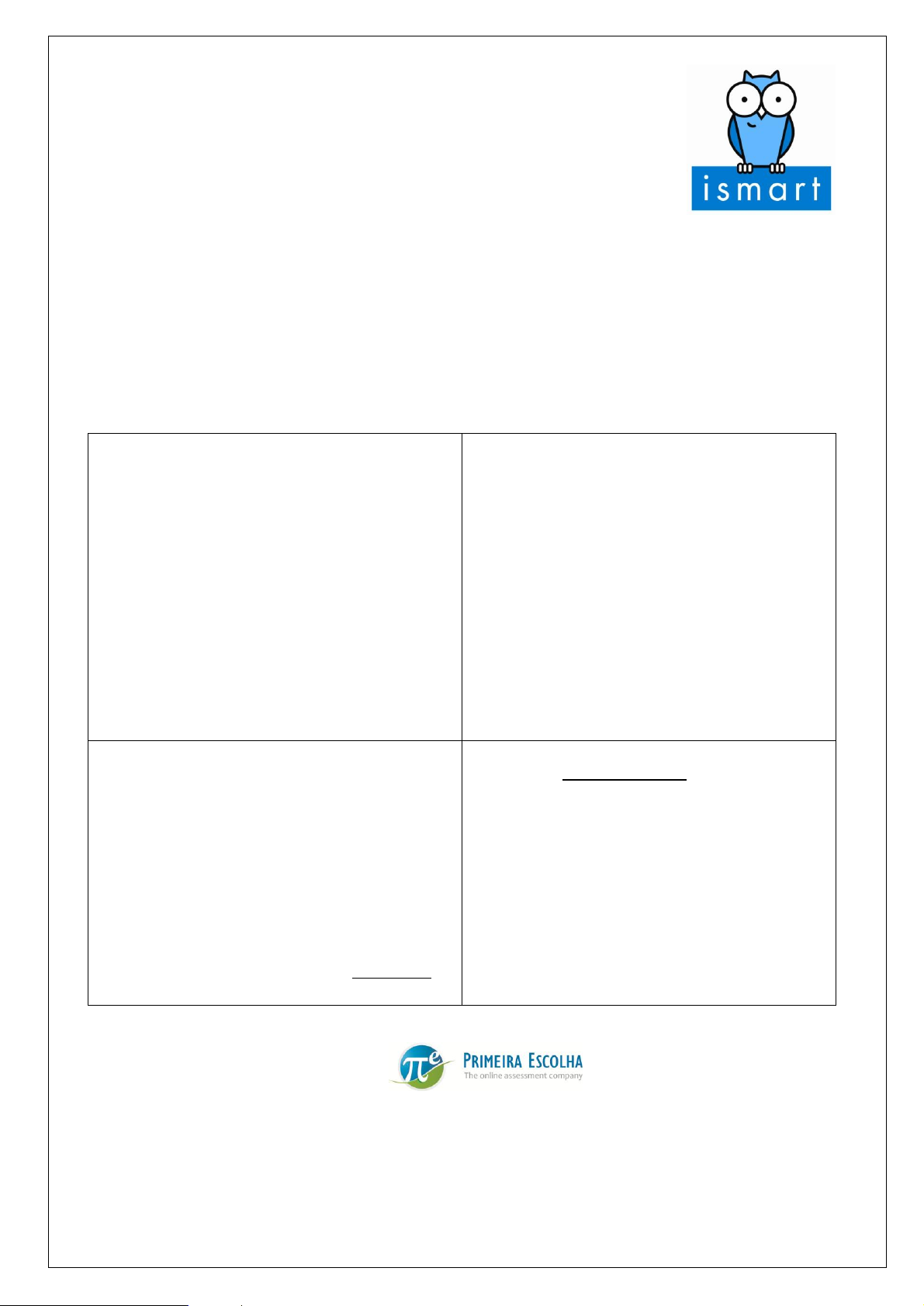 PROVA DE PORTUGUÊS E MATEMÁTICA Antes de começar 1) Este caderno deve conter: x 20 questões de Português. x 20 questões de Matemática. 2) Confira se este caderno está completo. 3) Confira se seu nome está escrito na folha de resposta. 4) Verifique se você está com todo material de que precisa (lápis com borracha). 5) Qualquer dúvida, levante a mão e pergunte ao fiscal de prova. Durante a prova x Cada questão tem quatro alternativas. x Apenas uma alternativa é correta. x Leia atentamente cada questão. x Escolha a alternativa que você achar correta em cada questão. x Marque a alternativa que você escolheu na questão. x Não é permitido consultar materiais. x Não é permitido conversar com outros candidatos. Tempo das provas Você tem 2 horas e 30 minutos para concluir esta prova. Este tempo inclui passar as alternativas marcadas para o cartão-resposta. O tempo mínimo para entregar a prova é de 1 hora. Não é permitido sair com esse caderno de prova. Os celulares deverão permanecer desligados. Preenchimento da folha de resposta Destaque cuidadosamente a folha de respostas desse caderno e lembre-se: x preencha com muita cautela; x como a folha tem o seu nome, não será possível você receber outra; x você pode usar lápis para preencher; x não deixe questões em branco; x não marque mais do que uma alternativa. Prova elaborada por Empresa Brasileira de Avaliações Educacionais – Primeira Escolha Modelo S_A Caderno número: Prova de seleção Matemática Modelo S1 - Reprodução Proibida 2 Elaborado pela Companhia Brasileira de Avaliações Educacionais Texto para as questões 1 e 2. Bruna Vieira sofreu bullying, superou e hoje é uma blogueira superfamosa! “Sempre fui muito tímida. Tinha medo de fazer novas amizades e acho que isso surgiu com as brincadeiras dos colegas de classe. Quando era menor, usava óculos, era estrábica, gordinha e bem desajeitada. Logo surgiram os apelidos de mau gosto. Para me refugiar de tudo isso, comecei a me interessar muito por fotografia, internet e leitura. Eu tinha quase 2 mil fotos no Orkut, vários textos escritos e um blog recém-criado, chamado B-maybe. No 1º ano do colegial, mudei de escola. No dia do trote, uma garota do 2º ano tirou uma foto minha e colocou no Orkut, sem autorização. E o pior, com a legenda ‘Sorry caloura, aqui não tem photoshop!’. Isso me deixou muito triste, principalmente porque os outros alunos da escola acharam a ‘brincadeira’ engraçada e comentaram coisas horríveis a meu respeito. Embora eu tenha sentido muita vontade de desistir, resolvi seguir em frente e não deixar que isso abalasse minha felicidade: afinal, eu havia passado em 2º lugar em um dos concursos mais disputados da região.(...) Hoje, três anos depois, percebo o quanto tudo isso mudou minha vida. Com a ajuda da minha mãe, dos meus novos amigos e das minhas leitoras, consegui superar tudo aquilo. Não guardo mágoas, pois foi graças a tudo que aconteceu que me tornei o que sou hoje. Aprendi a dar importância às coisas certas, e a simplesmente não me importar com o que pensam ou dizem a meu respeito (na internet ou fora dela).(...) ps: Tirei os óculos e uso lentes, emagreci e não sou mais tão tímida. Nada como o tempo” (Disponível em: http://capricho.abril.com.br/blogs/diganaoaobullying/ - acesso:17/07/2011) Questão 1 Este texto é considerado um depoimento, pois está em (A) primeira pessoa e descreve uma experiência. (B) primeira pessoa e convence sobre algo. (C) terceira pessoa e descreve um ambiente. (D) terceira pessoa e argumenta sobre um problema. Questão 2 Neste texto, a expressão final poderia ser complementada, mantendo a ideia defendida no depoimento, pela seguinte conclusão: “Nada como o tempo”... para (A) modificar nossos sonhos. (B) compartilhar experiências. (C) nutrir esperanças. (D) superar determinadas situações. Questão 3 Lixo no espaço Espalhados em volta da Terra, pequenos objetos podem fazer um grande estrago Ferramentas, pedaços ou lascas de tinta de satélites, naves e foguetes. Dá para acreditar que existem cerca de 370 mil objetos como esses passeando pelo espaço em volta da Terra? Esses pedacinhos de material que ficam em órbita ao redor do planeta são chamados de lixo espacial. Eles faziam parte de objetos que foram enviados ao espaço por um motivo específico, mas, com o passar do tempo, tornaram-se inúteis – ou seja, viraram lixo. Uma dificuldade é que os cientistas ainda não sabem como tirar toda essa sujeira do espaço, e ainda não há regras ou leis para melhorar essa situação. “A saída é prestar mais atenção a isso e ter certeza de que o material lançado no espaço não vai gerar lixo”, alerta Eder. “Precisamos cuidar do meio ambiente espacial também.” Quem estiver com os pés firmes no chão, pelo menos, pode ficar tranquilo: a chance de ser atingido por lixo espacial em plena superfície terrestre é mínima. Isso porque, se os objetos saem de órbita e vêm em direção à Terra, a maioria é destruída quando entra em contato com a atmosfera. Ainda bem... (Disponível em: http://chc.cienciahoje.uol.com.br/noticias/2011/julho/tem-lixo-no-espaco, acesso: 15/07/2011) O texto termina com a opinião: “Ainda bem” que remete a (A) reveladora limpeza da atmosfera. (B) impossibilidade de ser atingido por lixo espacial. (C) possibilidade de uma guerra espacial. (D) necessidade de cuidar do lixo em qualquer situação. http://capricho.abril.com.br/blogs/diganaoaobullying/bruna-vieira-sofreu-bullying-superou-e-hoje-e-uma-blogueira-superfamosa/ http://capricho.abril.com.br/blogs/diganaoaobullying/ http://chc.cienciahoje.uol.com.br/noticias/2011/julho/tem-lixo-no-espaco Prova de seleção Matemática Modelo S1 - Reprodução Proibida 3 Elaborado pela Companhia Brasileira de Avaliações Educacionais Questão 4 Depois de muita e boa chuva, Célia voltava de Belo Horizonte para sua casa no interior do Estado. Era bom viajar de ôni