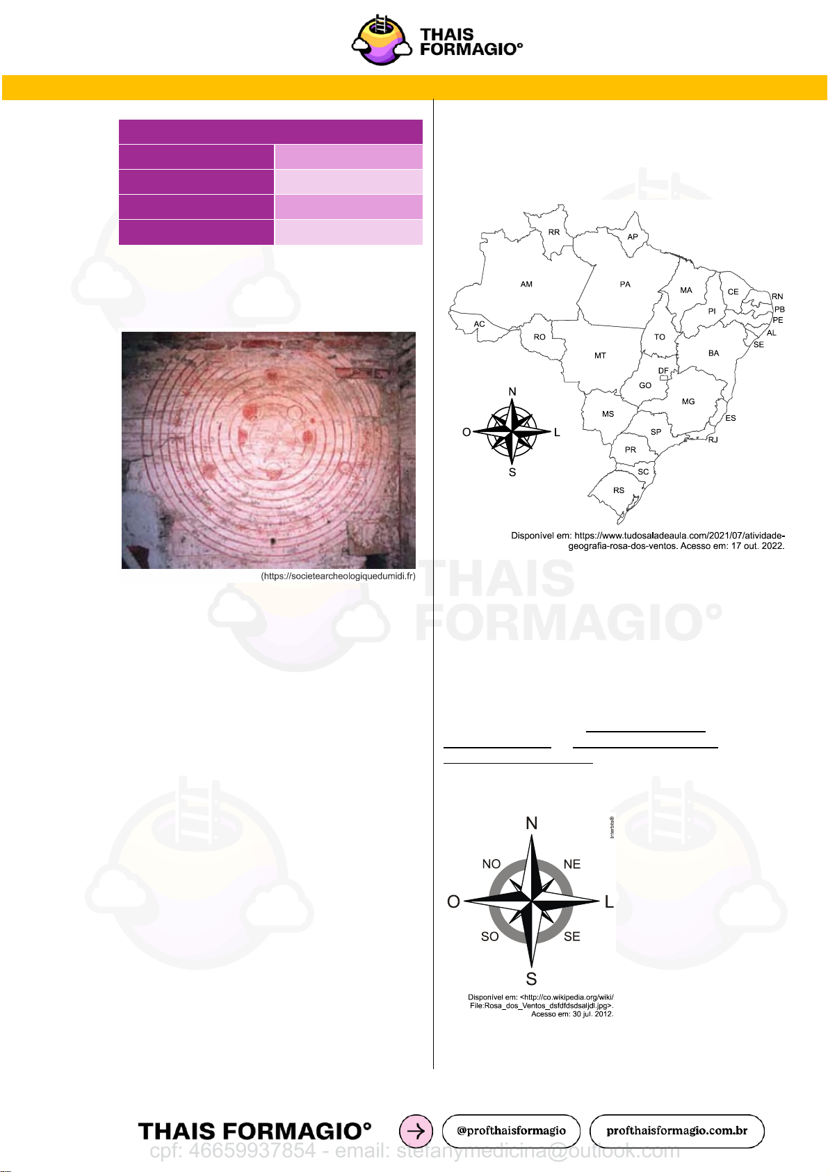 EXTENSIVO VOLTA AO MUNDO 2025 Lista- 1A: Rotação Fixação ENEM Discursivas Complementares 1. (Fcmscsp 2024) Analise o “Mapa do Céu”, desenhado no século XIII, numa parede da Igreja de Saint-Sernin da cidade de Toulouse, no sul da França. Nesse mapa, o planeta Terra é representado imóvel no centro do universo, em consonância com os saberes de astronomia a) baseados na irregularidade dos movimentos da Terra e do Sol. b) inspirados na valorização da luz solar na arquitetura religiosa. c) sustentados pela concepção dos seres humanos como criaturas eleitas de Deus. d) comprovados empiricamente graças ao emprego dos telescópios. e) difundidos para consolidar a tese de que o Sol é o planeta mais importante do Universo. 2. (Uepg-pss 1 2024) Sobre os movimentos do planeta Terra, assinale o que for correto. 01) A Terra orbita o Sol em um traçado que é ligeiramente oval. 02) O movimento do eixo de inclinação da Terra é que gera os anos no planeta. 04) A Terra tem 24 fusos horários, gerados pelo movimento de translação terrestre. 08) As noites e os dias são determinados pelo movimento de rotação da Terra, que dura aproximadamente 24 horas. 3. (Ueg 2023) A rosa dos ventos é uma representação que apresenta os pontos cardeais, colaterais e subcolaterais. Sua função é propiciar a localização/orientação no espaço geográfico. Sabendo disso, observe a figura a seguir. Um avião que partir de Goiânia (GO) em direção a Campo Grande (MS), sem escalas, deverá voar em que direção? a) Sudeste b) Nordeste c) Sudoeste d) Noroeste e) Sul 4. (Pucrj 2013) Em uma situação aleatória, uma pessoa que viaja, de automóvel, de São Paulo para Brasília, de Brasília para Manaus, de Manaus para Belém do Pará e de Belém do Pará para Salvador, vai percorrer o trajeto, respectivamente, nas seguintes direções (com base nos pontos cardeais e colaterais, a seguir): cpf: 46659937854 - email: stefanymedicina@outlook.com Thais Formagio 2, 3, 4, 5, 8, 10, 15 Thais Formagio 14 Thais Formagio 13 Thais Formagio 1, 6, 7, 9, 11* aula 2, 12 EXTENSIVO VOLTA AO MUNDO 2025 a) norte; noroeste; sudeste; nordeste. b) norte; noroeste; nordeste; sudeste. c) noroeste; norte; sudeste; nordeste. d) norte; sudeste; nordeste; sudoeste. e) noroeste; sudeste; nordeste; sudeste. 5. (Uepg 2012) Para orientação no espaço geográfico necessita-se de pontos de referências denominados de pontos cardeais, colaterais e subcolaterais. Com relação ao assunto, assinale o que for correto. 01) Oeste é oriente e leste é ocidente e os adjetivos respectivos são oriental e ocidental. 02) Norte-oriental e sul-ocidental referem-se, respectivamente, ao nordeste e ao sudoeste. 04) O ponto cardeal norte também é conhecido por setentrião, sendo que setentrional e boreal são adjetivos a ele relacionados. 08) Meridional e austral são adjetivos relativos ao leste. 16) Nordeste é o ponto colateral que fica entre o norte e o oeste, enquanto que o sudoeste fica entre o sul e o leste. 6. (Udesc 2023) A forma de nosso planeta (formato e suas dimensões) é um tema que vem sendo pesquisado ao longo dos anos em várias partes do mundo. Muitas foram as interpretações e os conceitos desenvolvidos para definir qual seria a forma da Terra. Pitágoras, em 528 a.C., introduziu o conceito de forma esférica para o planeta, e, a partir daí, sucessivas teorias foram desenvolvidas até alcançarmos o conceito que é, hoje, bem aceito no meio científico internacional. Fonte: Adaptado de Instituto Brasileiro de Geografia e Estatística – IBGE. Noções Básicas de Cartografia. Rio de Janeiro: IBGE, 1999. Considerando o formato e as dimensões do planeta Terra, indique a proposição incorreta. a) O geoide é uma representação da superfície da Terra determinada pela linha do relevo do planeta. Essa superfície serve de referência e não corresponde à superfície real da Terra. b) A superfície do geoide não corresponde, necessariamente, à superfície da elipsoide de referência. As diferenças, positivas ou negativas, entre essas duas superfícies podem ser representadas em um mapa e são chamadas ondulações do geoide. c) Segundo o conceito introduzido pelo matemático alemão, Carl Friedrich Gauss (1777-1855), a forma do planeta é o geoide, que corresponde à superfície do nível médio do mar homogêneo (ausência de correntezas, ventos, variação de densidade de água, etc.) supostamente prolongado por sob os continentes. d) O elipsoide é a superfície de referência utilizada nos cálculos que fornecem subsídios para a elaboração de uma representação cartográfica. A forma e o tamanho de um elipsoide, bem como sua posição relativa ao geoide, definem um sistema geodésico. e) O principal uso dos elipsoides de referência é servir de base para um sistema de coordenadas de latitude (norte/sul), longitude (este/oeste) e elevação (altura). 7. (Pucrj 2021) Cartograficamente, sabe-se que a maneira mais adequada de representar a Terra como um todo é por meio de um globo. Porém, precisamos de mapas para estudar a superfície do planeta. Transformar uma esfera em um mapa seria impossível se os cartógrafos não utilizassem uma técnica matemática chamada projeção cartográfica, que gera a) representações de um corpo esférico sobre uma superfície plana. b) deformações desnecessárias para análise de um planeta em forma de geoide. c) adequações por meios de cálculos astronômicos sintetizadores da realidade. d) formações territoriais híbridas que possibilitam a visualização do espaço geográfico real. 8. (Famema 2017) Analise a imagem. A visão mais comum que temos da Terra, vista do espaço sideral, esconde sua forma e sua superfície irregulares. Dentre as superfícies terrestres observadas na imagem analisada, é correto afirmar que a superfície a) elipsoide representa a atual conformação da litosfera diante das forças endógenas que a modelam. b) geoide é um panorama futuro pa