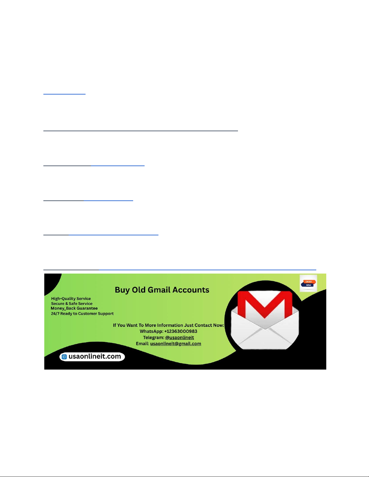 In today’s digital landscape, having access to verified, old Gmail accounts with Phone Verified Accounts (PVA) is essential for various online activities such as marketing, social media management, and account recovery. However, not all accounts are created equal, and selecting a reliable source is crucial to avoid scams, account suspensions, or security issues. USAOnlineIT specializes in providing high-quality, verified old Gmail accounts with PVA, ensuring your online operations are smooth and secure. This comprehensive guide will walk you through the essential steps to buy and select reliable old Gmail accounts, emphasizing key factors and best practices. If You Want To More Information Just Contact Now: WhatsApp: +12363000983 Telegram: @usaonlineit Email: usaonlineit@gmail.com Website Link : https://usaonlineit.com/product/buy-old-gmail-accounts/ Understanding the Importance of Old Gmail Accounts Old Gmail accounts are highly valuable because they come with an established history, increasing their credibility and trustworthiness. Unlike fresh accounts, older accounts tend to have better deliverability for emails, making them ideal for marketing campaigns and outreach activities. They are less likely to be flagged or suspended by Google, especially when they are https://usaonlineit.com/product/buy-old-gmail-accounts/ https://usaonlineit.com/product/buy-old-gmail-accounts/ https://usaonlineit.com/product/buy-old-gmail-accounts/ https://usaonlineit.com/product/buy-old-gmail-accounts/ verified with PVA. Businesses leverage these accounts to create social media profiles, run ad campaigns, or test new strategies without risking their primary accounts. Reliable old accounts also help in avoiding the hassle of creating and verifying new accounts repeatedly, saving time and effort. USAOnlineIT offers aged, verified Gmail accounts with a proven activity history, making them a dependable asset for your online needs. What Is a PVA (Phone Verified Account)? A Phone Verified Account (PVA) is a Gmail account that has been linked to a verified phone number during its creation or verification process. This verification adds an extra layer of security and credibility, making the account less susceptible to suspension. Google recognizes PVAs as genuine and trustworthy, which ensures higher deliverability and fewer restrictions. For marketers and business owners, PVA accounts are essential because they can be used for multiple activities such as creating social media profiles, ad accounts, or email campaigns with minimal risk of suspension. USAOnlineIT provides PVA Gmail accounts verified through legitimate phone numbers, ensuring maximum security and trustworthiness for clients. Key Factors to Consider When Buying Old Gmail Accounts When purchasing old Gmail accounts, several factors should be considered to ensure reliability and value. First, verify the age of the account; older accounts are generally more trustworthy. Second, confirm that the account is PVA-verified with a legitimate phone number. Third, assess the seller’s reputation and reviews—reliable sellers have positive feedback and transparent policies. Fourth, check if the account has a clean activity history with no suspicious or malicious activities. Fifth, confirm the delivery method—instant access or scheduled delivery. Sixth, consider the security features, such as recovery email and linked phone number. Seventh, inquire about guarantees or refunds in case of account issues. USAOnlineIT prioritizes these factors, providing verified, aged, and secure Gmail accounts with full transparency. Top Sites to Buy Old Gmail Accounts There are numerous platforms where you can purchase old Gmail accounts, but not all are reliable. Trusted sites emphasize account authenticity, security, and customer support. Among the most reputable are USAOnlineIT, BuyOldGmail.com, AccountsMarket.io, PVAAccounts.net, and GmailAccountStore.com. USAOnlineIT stands out for its rigorous verification process, guaranteed account security, and excellent customer service. When selecting a site, look for transparency about account history, verification process, and refund policies. Avoid platforms that offer suspiciously cheap accounts or lack reviews. Trusted vendors provide detailed account information, proof of verification, and customer support to address any issues. Choosing a reputable site like USAOnlineIT ensures you receive high-quality, reliable accounts that meet your specific needs. How to Verify the Authenticity of Gmail Accounts Before Purchase https://usaonlineit.com/product/buy-old-gmail-accounts/ Verifying the authenticity of Gmail accounts before purchase is vital to avoid scams and compromised accounts. Reputable sellers will provide proof of account age, activity history, and verification status. Request screenshots or video demonstrations of the account’s activity and verification process. Confirm that the account has legitimate recovery options, such as a linked phone number and recovery email. Review buyer feedback and ratings on the seller’s platform. USAOnlineIT offers detailed account information, including verification proof and activity logs, ensuring clients buy genuine accounts. Always ask for guarantees or refund policies if the account turns out to be invalid or compromised. Proper verification protects your investment and ensures the account’s longevity. How to Identify a Reputable Seller of Old Gmail Accounts Choosing a reputable seller is crucial for acquiring reliable old Gmail accounts. Start by checking seller reviews and ratings—positive feedback and high ratings are good indicators of trustworthiness. Look for transparency in their listing, including detailed account histories, verification methods, and refund policies. Avoid sellers who offer accounts at suspiciously low prices or refuse to provide proof of verification. Verify their customer support availability and responsiveness. USAOnlineIT has built a reputation 