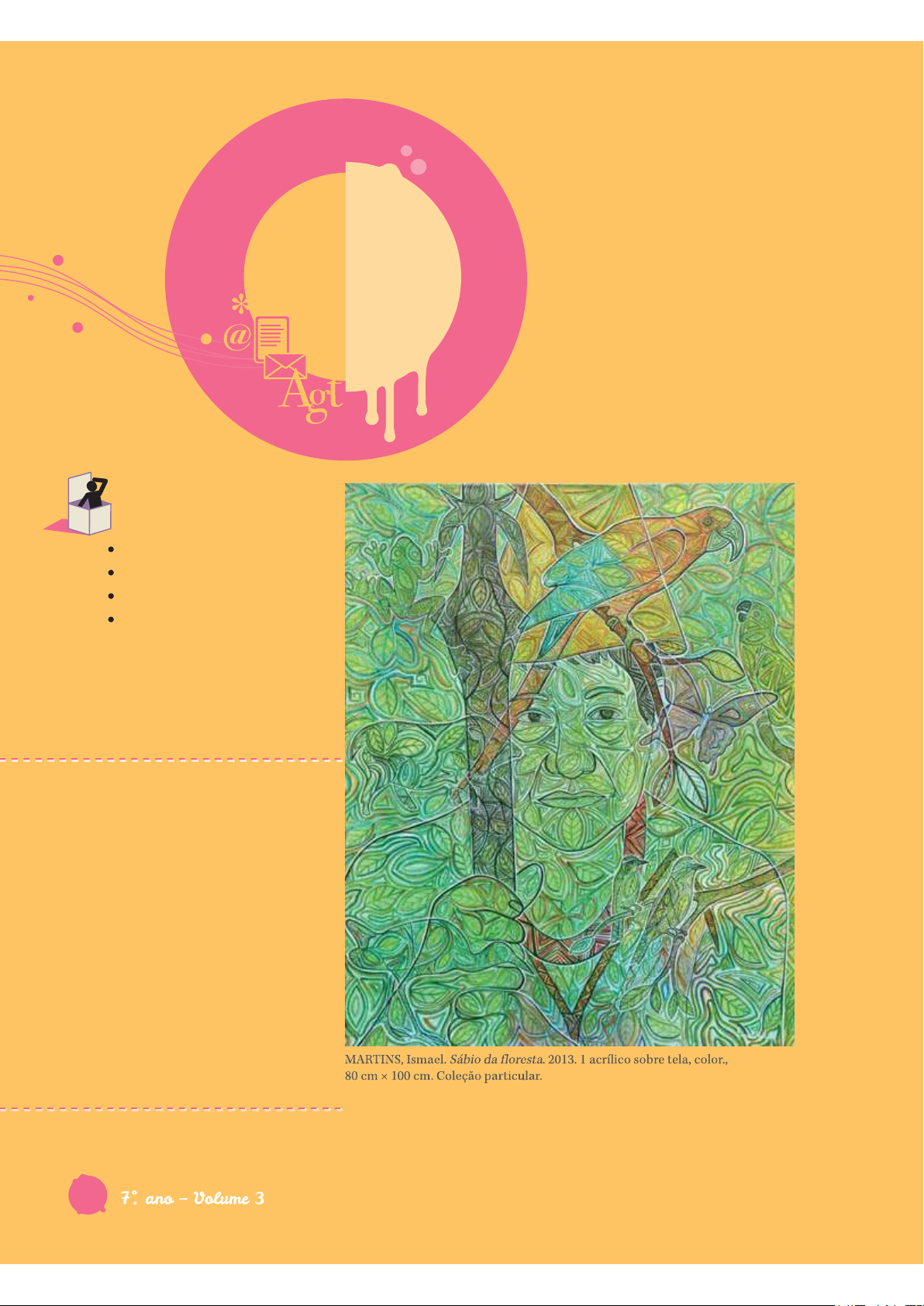 ca p ít u lo A cultura indígena é um elemento importante das tradições brasileiras. Conhe- cer e preservar as tradições dos povos indígenas é essen- cial, e essa cultura pode ser conhecida por meio de suas lendas. Outras lendas, como as urbanas, buscam explicar acontecimentos misteriosos. O real e o imaginário são dois componentes das lendas que têm sua origem na oralidade. Lenda indígena Transitividade verbal I Preposições Lenda urbana o que você vai conhecer Lendas: vozes culturais10 © A ce rv o Is m ae l M ar ti n s 30 Língua Portuguesa Observe a obra de arte da página anterior e troque ideias sobre as questões. 1. Que imagem se destaca nessa obra? 2. Que outros elementos estão representados? 3. Que cores predominam? Por quê? 4. Explique o título . Ler lendas indígenas e urbanas e compreender seu estilo, sua composição e função comunicativa. Distinguir, na estrutura básica da oração (sujeito e predicado), verbos de ligação (e predica- tivo do sujeito) de verbos significativos. Conhecer e compreender a função das preposições. objetivos do capítulo estudo do texto Lenda indígena Leia esta lenda: orelhas-de-pau: fungos, também conhecidos como urupês, que costumam crescer sobre troncos de árvores. ralharam: brigaram, chamaram a atenção. acanhada: envergonhada, tímida. jamaru: planta cuja cabaça é usada para guardar objetos. 31 Kayapó: nome de um grupo indígena. urucu: semente vermelha obtida da árvore urucu. jenipapo: fruto do jenipapeiro, árvore da mesma família do café e que chega a 20 metros de altura. puba: fermentado. roçada: terreno desbastado e pronto para a sementeira. vergasse: entortasse. manivas: mandiocas. beiju: espécie de massa de mandioca assada. 1 Qual é a finalidade dessa lenda? 2 Releia este período e resolva as questões. a) Que explicações são dadas no texto para essa afirmação? b) A expressão �A princípio�, no início do texto, transmite que informação? 32 Língua Portuguesa c) A palavra �Terra�, nesse período, escrita com inicial maiúscula, faz referência ( ) ao terceiro planeta do Sistema Solar quanto à proximidade do Sol. ( ) à superfície sólida da crosta terrestre onde os indígenas fariam seu roçado. 3 A história é narrada em que tempo verbal? Por quê? 4 Essa lenda foi escrita em a) ( ) 3.ª pessoa, portanto não sabemos quem é o narrador. b) ( ) 1.ª pessoa, já que é o jovem índio quem conta a história. c) ( ) 1.ª pessoa, pois Nhokpôti conta como ensinou os indígenas a plantar. 5 Releia este trecho e marque V para as afirmativas verdadeiras e F para as falsas: A expressão �Certo dia� ( ) apresenta uma ideia imprecisa sobre o tempo em que ocorreu o acontecimento. ( ) marca uma mudança na narrativa, introduzindo um elemento novo. ( ) mostra que os indígenas não tinham ideia de tempo. 6 Que explicações a moça deu para ter descido à Terra e como isso aconteceu? 7 O jovem índio achou possível a história que ela contou sobre como chegou à Terra. Por quê? 8 Reescreva este trecho, substituindo a expressão destacada por outra que expresse seu real sentido. 9 Por que o jovem, ao levar a moça para a casa dele, a escondeu? 10 Como o indígena escondeu de sua família a jovem que ele encontrou na floresta? 11 O que motivou Nhokpôti a pensar em uma mudança nos costumes alimentares dos indígenas? 33 12 A moça tinha o desejo de voltar para o céu porque a) ( ) estava com saudade dos pais. b) ( ) queria comer lagartas. c) ( ) queria trazer sementes de frutas e legumes. d) ( ) estava com vontade de comer vegetais preparados pela mãe. 13 Qual foi a estratégia usada por Nhokpôti para voltar ao céu pela primeira vez? 14 Por que razão ela voltou ao céu mais tarde? Como ela fez isso? 15 Que decisão a índia tomou após terminar de criar seu filho? 16 Faça uma interpretação do fato de Nhokpôti não ter mais voltado à Terra. 17 Numere as ações conforme a ordem em que elas aparecem na narrativa. a) ( ) Após terem aprendido a cultivar, os índios continuam fazendo isso ano após ano, cabendo às mulheres plantar a terra preparada. b) ( ) O índio leva a moça para a casa dele. c) ( ) A moça passa os dias escondida em um jamaru. d) ( ) A mãe do índio abre o jamaru e descobre a linda moça dentro dele. e) ( ) Um jovem índio, andando pela floresta, encontra uma linda moça. f) ( ) A índia se queixa ao marido de estar enjoada de comer lagartas e manifesta o desejo de voltar ao céu. g) ( ) O rapaz conversa com a jovem índia e descobre que os pais da moça brigaram com ela, por isso veio à Terra. h) ( ) A índia volta do céu com mudas de bananeira, de batatas e inhames e um beiju. i) ( ) A índia tem um filho. j) ( ) Depois de terminar de criar seu filho, a índia vai ao céu e não volta à Terra. - rios. Transmitidas de geração em geração, vão sendo modificadas à medida que são contadas e recontadas. - - 34 Língua Portuguesa 18 Complete o quadro a seguir com os elementos da lenda sobre a origem da lavoura. Personagens Espaço Tempo Narrador Discurso (direto ou indireto) Sequência inicial Conflito Clímax Desfecho 35 estudo da língua Transitividade verbal I Podem aparecer dois tipos de verbo em uma oração: de ligação ou significativo. Verbo de ligação Os verbos de ligação não informam algo sobre o sujeito; eles têm apenas a função de ligar o sujeito ao predicativo do sujeito. Exemplo: A moça era acanhada. Nesse período, atribui-se ao sujeito (a moça) uma característica � acanhada. O verbo ser tem a função de estabelecer uma relação entre o sujeito e a característica dada a ele. Essa característica exerce o papel de predicativo do sujeito. Nesse caso, o predicado é nominal. Estrutura de orações com verbo de ligação sujeito verbo de ligação predicativo do sujeito predicado nominal Principais verbos de ligação Exemplos ser A terra é boa. estar A terra está arável. permanecer A terra permanece sustentável. parecer