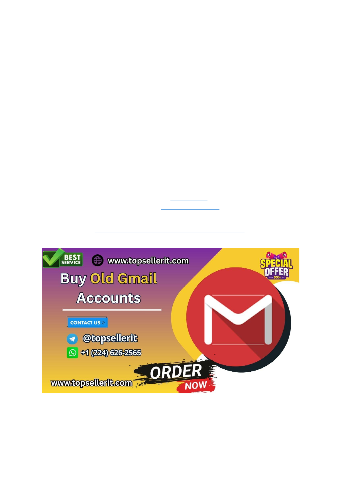 Buy Old Gmail Accounts Are you navigating the bustling world of online marketing and social media? If so, you've likely encountered the importance of having a strong digital presence. One crucial element that can set you apart is your email accounts—specifically, old Gmail accounts. But why should you consider purchasing these aged assets? The answer lies in their value for building credibility, enhancing outreach efforts, and maximizing engagement on various platforms. With all this potential at your fingertips, it’s time to explore how buying old Gmail accounts from topsellerit.com can give your strategy the boost it needs. Let’s dive into what makes these gems so desirable! If you want to know more information, contact us – 24 Hours Reply/Contact ➤Email: topsellerit0@gmail.com ➤Telegram: @topsellerit ➤WhatsApp: +1 (224) 626-2565 https://topsellerit.com/product/buy-old-gmail-accounts/ Why to purchase Gmail accounts? https://t.me/topsellerit https://wa.link/mglwag https://topsellerit.com/product/buy-old-gmail-accounts/ Purchasing Gmail accounts can significantly enhance your online presence. Aged accounts often come with a history that adds credibility to your marketing efforts. Newer accounts may lack trust, making it harder for you to connect with potential customers. Older Gmail accounts tend to have fewer restrictions compared to their younger counterparts. This is crucial when it comes to social media platforms or bulk email campaigns where limitations can hinder progress. Moreover, having multiple Gmail accounts allows for better organization and segmentation of communication strategies. You can target different audiences without mixing messages. Older Gmail accounts are less likely to trigger spam filters, ensuring your outreach reaches the desired inboxes instead of getting lost in cyberspace. These factors make purchasing old Gmail accounts a smart move for serious marketers looking to elevate their game and drive results effectively. How to verify a Gmail account? Verifying a Gmail account is a crucial step to ensure its authenticity and security. Start by logging into the account you wish to verify. Google typically sends a verification email to the associated recovery email address. Check that inbox for a message from Google, which usually contains a verification link or code. If you don’t see it, look in your spam or junk folder. Sometimes emails can get lost there unexpectedly. Alternatively, when creating an account, Google offers phone number verification as another option. Enter your mobile number and wait for the text message with the confirmation code. Complete this process by entering the code back on the site. Following these steps ensures that you have full access and control over your Gmail account while enhancing its security measures. If you want to know more information, contact us – 24 Hours Reply/Contact ➤Email: topsellerit0@gmail.com ➤Telegram: @topsellerit ➤WhatsApp: +1 (224) 626-2565 https://t.me/topsellerit https://wa.link/mglwag How can I buy real Old Gmail Accounts from topsellerit.com? Buying real old Gmail accounts from topsellerit.com is a straightforward process. Start by visiting the website and exploring their offerings. You'll find various options tailored to your needs. Once you identify the accounts that suit you, simply add them to your cart. The site offers a user-friendly interface that makes navigation easy. Next, proceed to checkout. You’ll need to fill in some basic information and choose your preferred payment method. Topsellerit provides secure payment options for peace of mind. After completing your purchase, you'll receive confirmation via email. This will include details about how to access and manage your newly acquired accounts efficiently. Topsellerit also offers customer support should any questions arise during or after the purchasing process, ensuring you feel confident with your investment in old Gmail accounts. Why choose us to Buy Old Gmail Accounts? When it comes to buying old Gmail accounts, trust is paramount. At topsellerit.com, we stand out in the crowded marketplace for several compelling reasons. Our extensive selection features verified and active accounts that cater to your specific needs. Each account undergoes rigorous validation processes to ensure reliability. We prioritize customer satisfaction above all else. Our support team is always ready to assist you with any inquiries or concerns regarding your purchase. Security is another cornerstone of our service model. We understand the importance of privacy and take necessary measures to protect your information during transactions. Competitive pricing sets us apart from others in the industry. You get quality without breaking the bank. Choosing topsellerit means gaining access to a wealth of experience and expertise, ensuring a seamless purchasing experience every time you buy old Gmail accounts. How ancient Gmail accounts give benefits in social media marketing? Ancient Gmail accounts offer a distinct advantage in social media marketing. They carry longevity and credibility, factors that can greatly enhance your online presence. With an older account, you’re more likely to have established trust with various platforms. This trust translates into higher engagement rates and better visibility for your content. Additionally, these accounts often come pre-loaded with followers or connections built over time. Leveraging this existing network can amplify your reach quickly. Moreover, platforms like Facebook and Instagram recognize the age of an account when determining its authority. An old Gmail account linked to your social profiles may improve their standing in algorithms. Using well-aged emails reduces the risk of being flagged as spam during outreach campaigns. This allows for smoother communication with potential clients or partners, ultimately leading to greater success in your marketing efforts. Is it safe to buy Old Gmail Accounts? 