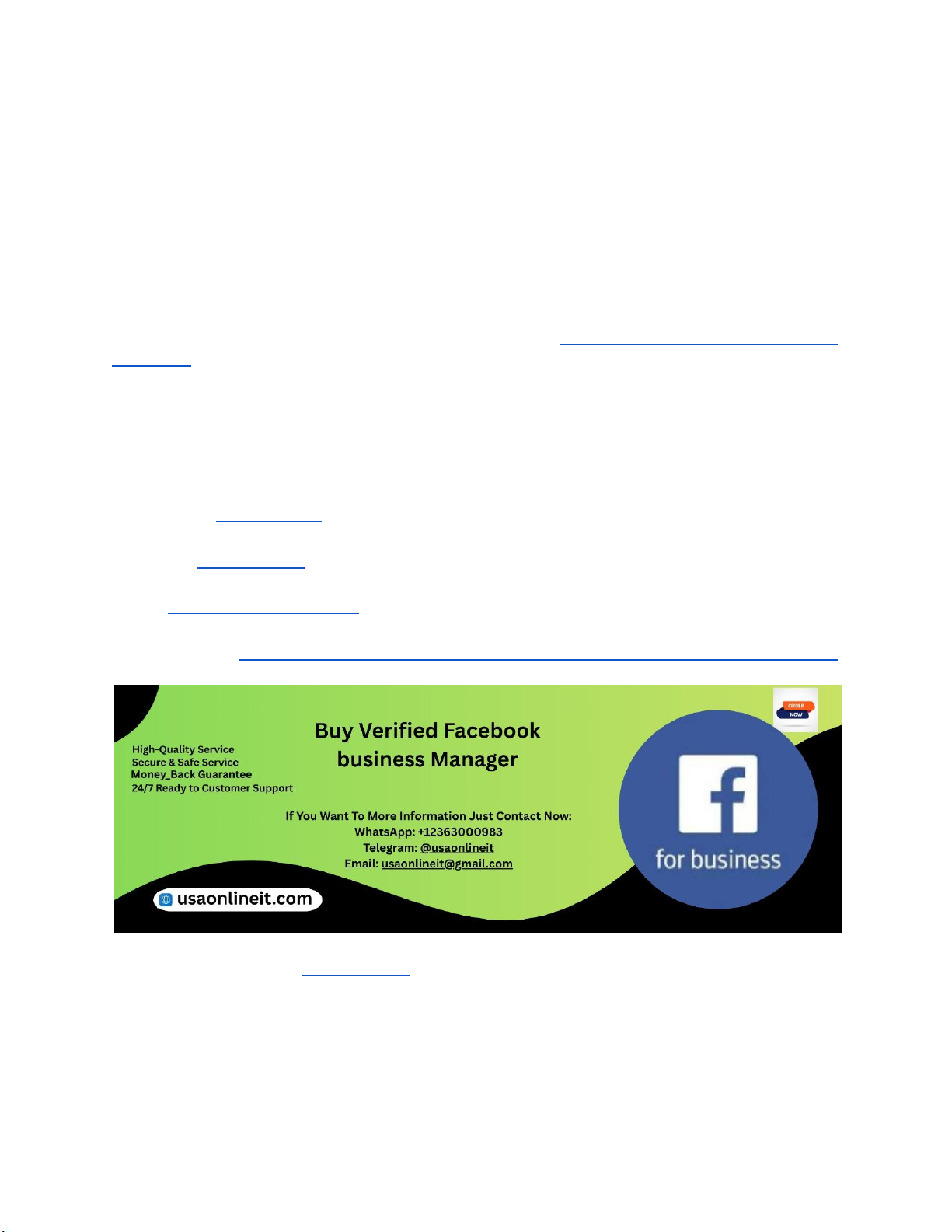 Buy Authentic Facebook Business Manager Accounts By USAOnlineIT In 2026, Facebook (Meta) advertising continues to dominate the digital marketing ecosystem. Businesses, agencies, and advertisers increasingly rely on Facebook Business Manager (BM) accounts to manage ads, pages, pixels, catalogs, and teams efficiently. However, strict Meta policies, frequent bans, and long approval delays have created strong demand for authentic, aged, and secure Business Manager accounts. As a result, many professionals now look for trusted platforms to buy verified Facebook Business Manager accounts safely. If You Want To More Information Just Contact Now: WhatsApp: +12363000983 Telegram: @usaonlineit Email: usaonlineit@gmail.com websites Link : https://usaonlineit.com/product/buy-verified-facebook-business-manager/ This in-depth guide from USAOnlineIT explores proven platforms, security practices, risk management strategies, and buying considerations to help marketers make informed decisions in 2026. Understanding Facebook Business Manager Accounts in 2026 https://usaonlineit.com/product/buy-verified-facebook-business-manager/ https://usaonlineit.com/product/buy-verified-facebook-business-manager/ https://usaonlineit.com/product/buy-verified-facebook-business-manager/ https://usaonlineit.com/product/buy-verified-facebook-business-manager/ https://usaonlineit.com/product/buy-verified-facebook-business-manager/ https://usaonlineit.com/product/buy-verified-facebook-business-manager/ Facebook Business Manager is Meta’s centralized system for managing advertising assets without mixing personal and business activity. In 2026, Meta has further tightened compliance rules, making new Business Manager creation more challenging. Many advertisers experience instant restrictions, ad account reviews, or verification delays, even with legitimate businesses. An authentic Business Manager account typically includes a clean history, verified business details, aged ownership, and access to core assets like ad accounts and pixels. These elements significantly improve ad stability and spending limits. Businesses running high-budget campaigns often prefer pre-aged Business Managers to avoid warming issues and sudden bans. USAOnlineIT emphasizes that understanding how Business Managers function internally is essential before buying one. Proper structure, asset allocation, and compliance settings are critical to long-term success. Without this knowledge, even a high-quality BM can quickly become restricted. Why Businesses Buy Facebook Business Manager Accounts There are several reasons businesses choose to buy Facebook Business Manager accounts rather than creating new ones. First, time efficiency is crucial. Building trust with Meta organically can take months, while advertising campaigns often require immediate execution. Second, aged Business Managers typically have higher trust scores, reducing the risk of instant ad disapprovals. Third, agencies managing multiple clients need scalable solutions, and creating dozens of BMs manually is no longer practical under Meta’s restrictions. USAOnlineIT frequently works with eCommerce brands, affiliate marketers, and agencies that require stable ad environments. Purchasing a verified BM allows them to launch campaigns faster, test creatives efficiently, and scale without unnecessary interruptions. However, buying Business Manager accounts must be done carefully. Choosing unreliable sellers or using unsafe login practices can lead to permanent bans. That’s why selecting proven platforms is essential. Key Features of an Authentic Business Manager Account Not all Business Manager accounts are equal. An authentic and high-quality BM in 2026 should include several critical features. These include real business information, aged creation history, clean policy record, and proper geographic consistency. A trustworthy BM often comes with at least one ad account, a verified business profile, and previous legitimate activity. Some may include a pixel, domain verification, or page ownership. These assets increase credibility in Meta’s automated systems. USAOnlineIT advises buyers to avoid accounts created using bots, fake documents, or recycled user data. Such accounts may work temporarily but usually fail during scaling. Authenticity is the foundation of advertising stability. Understanding these features helps buyers evaluate platforms objectively and avoid scams that promise “cheap unlimited BMs” without real value. Security Risks When Buying Business Manager Accounts Security is the biggest concern when purchasing Facebook Business Manager accounts. Common risks include account recovery by sellers, shared access with unknown users, IP mismatches, and compromised login credentials. Meta actively monitors suspicious behavior, such as sudden location changes, device switching, or abnormal asset additions. Poor security practices can result in disabled Business Managers and linked ad accounts. USAOnlineIT strongly recommends buying only from platforms that provide full ownership transfer, clean admin access, and security guidelines. Two-factor authentication, consistent IP usage, and gradual activity warming are non-negotiable steps after purchase. Ignoring security protocols can destroy even the most expensive Business Manager account within days. Risk awareness is critical in 2026’s stricter Meta ecosystem. Compliance and Meta Policy Awareness Although many businesses buy Business Manager accounts, compliance with Meta advertising policies remains essential. Buying an account does not grant immunity from ad reviews or policy enforcement. Advertisers must still follow ad content rules, business verification requirements, and payment compliance. Many bans occur not because of the account’s origin, but due to policy-violating ads or aggressive scaling. USAOnlineIT helps clients align ad strategies with Meta’s evolving policies, reducing rejection rates and maintaining long-term a