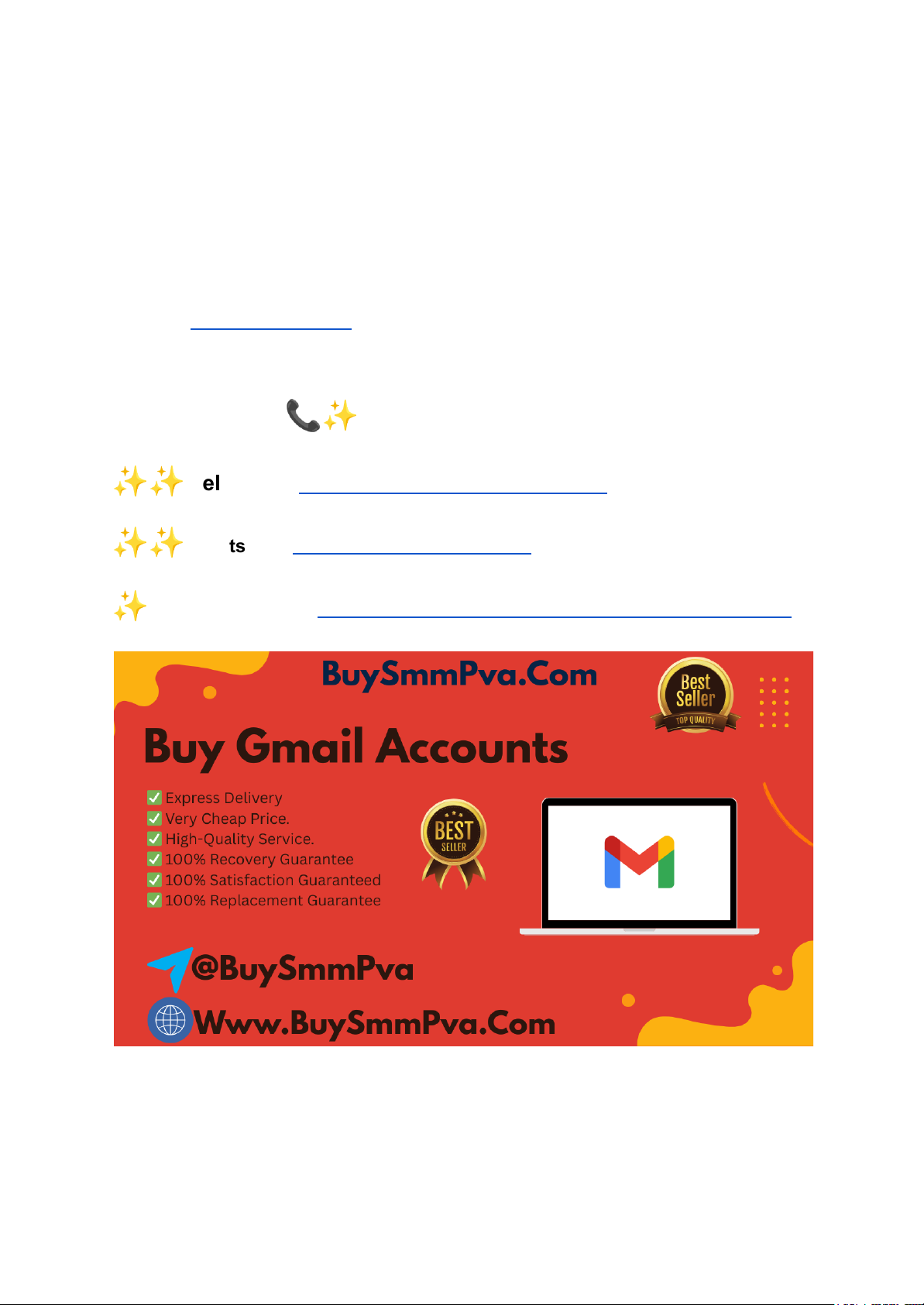 Buy Gmail Accounts – Safe & Verified Aged Accounts for Business and Agency Growth In today's digital age, Gmail is an essential tool for businesses, agencies, and entrepreneurs. As one of the most popular email platforms globally, it provides a secure and reliable means of communication. However, setting up new Gmail accounts for business purposes can be a time-consuming and tedious process, which is why many business owners and agencies choose to buy Gmail accounts – safe & verified aged accounts. This article explores the benefits, key considerations, and best practices for purchasing Gmail accounts to optimize your business operations and streamline email marketing efforts. Contact Us! 📞✨ ✨✨ Telegram: https://telegram.me/buysmmpva ✨✨ WhatsApp: https://wa.me/12363497022 ✨ Visit Our Product: https://buysmmpva.com/product/buy-gmail-accounts/ What are the key advantages of buying Gmail accounts for businesses? https://buysmmpva.com/product/buy-gmail-accounts/ https://telegram.me/buysmmpva https://wa.me/12363497022 https://buysmmpva.com/product/buy-gmail-accounts/ Buying Gmail accounts – safe & verified aged – offers several advantages for businesses and agencies. First, it saves time, as setting up Gmail accounts can be a lengthy process when done manually. Aged accounts often come with a higher trust score, making them more reliable for sending emails and avoiding spam filters. Moreover, businesses can scale their operations rapidly by purchasing multiple accounts for email marketing, customer support, or internal communication. These accounts are often pre-verified, which reduces the risk of being flagged or suspended for suspicious activity. How does buying aged Gmail accounts benefit email marketing campaigns? Aged Gmail accounts are particularly beneficial for email marketing campaigns. When you buy Gmail accounts – safe & verified aged – you acquire accounts that have a longer history, making them less likely to be flagged as spam by email service providers. These accounts are trusted by email platforms, which means your marketing emails have a higher chance of being delivered to your recipients’ inboxes. Additionally, aged accounts are more likely to bypass filters that newer accounts often face, ensuring that your marketing efforts reach a broader audience without disruptions. What are the risks of using new Gmail accounts compared to aged ones? While new Gmail accounts can be useful, they come with certain limitations. If you buy Gmail accounts – safe & verified aged, you're essentially investing in accounts that have a solid reputation with Gmail. New accounts may have limited trust, leading to higher chances of being marked as spam or temporarily suspended by Gmail. Additionally, newer accounts often require more time and effort to build credibility, whereas aged accounts come with pre-established trust scores, ensuring smoother operations for business communications and marketing efforts. Can buying Gmail accounts improve deliverability for business emails? Yes, purchasing Gmail accounts – safe & verified aged – can significantly improve the deliverability of your business emails. Email service providers like Gmail prioritize accounts with a proven history of good behavior. Aged Gmail accounts are less likely to be penalized by spam filters, increasing the chances of your emails reaching your target audience. This is especially important for businesses relying on email marketing, as a high deliverability rate ensures that your promotional and transactional emails get to the inbox rather than the spam folder. How does the verification process work for Gmail accounts? The verification process for Gmail accounts involves several steps, including phone number verification, email address confirmation, and sometimes CAPTCHA challenges. When you buy Gmail accounts – safe & verified aged, these accounts have already gone through the https://buysmmpva.com/product/buy-gmail-accounts/ https://buysmmpva.com/product/buy-gmail-accounts/ https://buysmmpva.com/product/buy-gmail-accounts/ https://buysmmpva.com/product/buy-gmail-accounts/ verification process. This means that the accounts are less likely to be flagged or suspended by Gmail. Verified accounts come with enhanced credibility, ensuring smoother interactions for businesses and agencies, whether for email marketing, outreach campaigns, or internal communications. What factors should I consider when choosing a service to buy Gmail accounts? When selecting a service to buy Gmail accounts – safe & verified aged – several factors need to be considered. First, ensure the service provider offers high-quality, verified accounts that have not been flagged for suspicious activity. Look for providers who offer customer support, allowing you to resolve any issues that may arise. Also, ensure the accounts are aged and not freshly created, as aged accounts are more trusted by Gmail. Finally, check the provider's reputation through customer reviews and feedback to ensure you're investing in a reliable service. Can businesses use bought Gmail accounts for customer support? Yes, businesses can effectively use bought Gmail accounts – safe & verified aged – for customer support. These accounts are ideal for managing customer inquiries, troubleshooting issues, and maintaining communication with clients. Since aged accounts have a higher trust score, they are less likely to be flagged as suspicious when used for customer service purposes. Using Gmail for customer support ensures a professional and seamless experience, as it provides a familiar platform that customers are comfortable with, improving your brand’s reputation. Are there any legal concerns when buying Gmail accounts? When you buy Gmail accounts – safe & verified aged – it’s important to ensure that the service provider complies with legal and ethical standards. Purchasing accounts from reputable sources ensures that the accounts are not ob