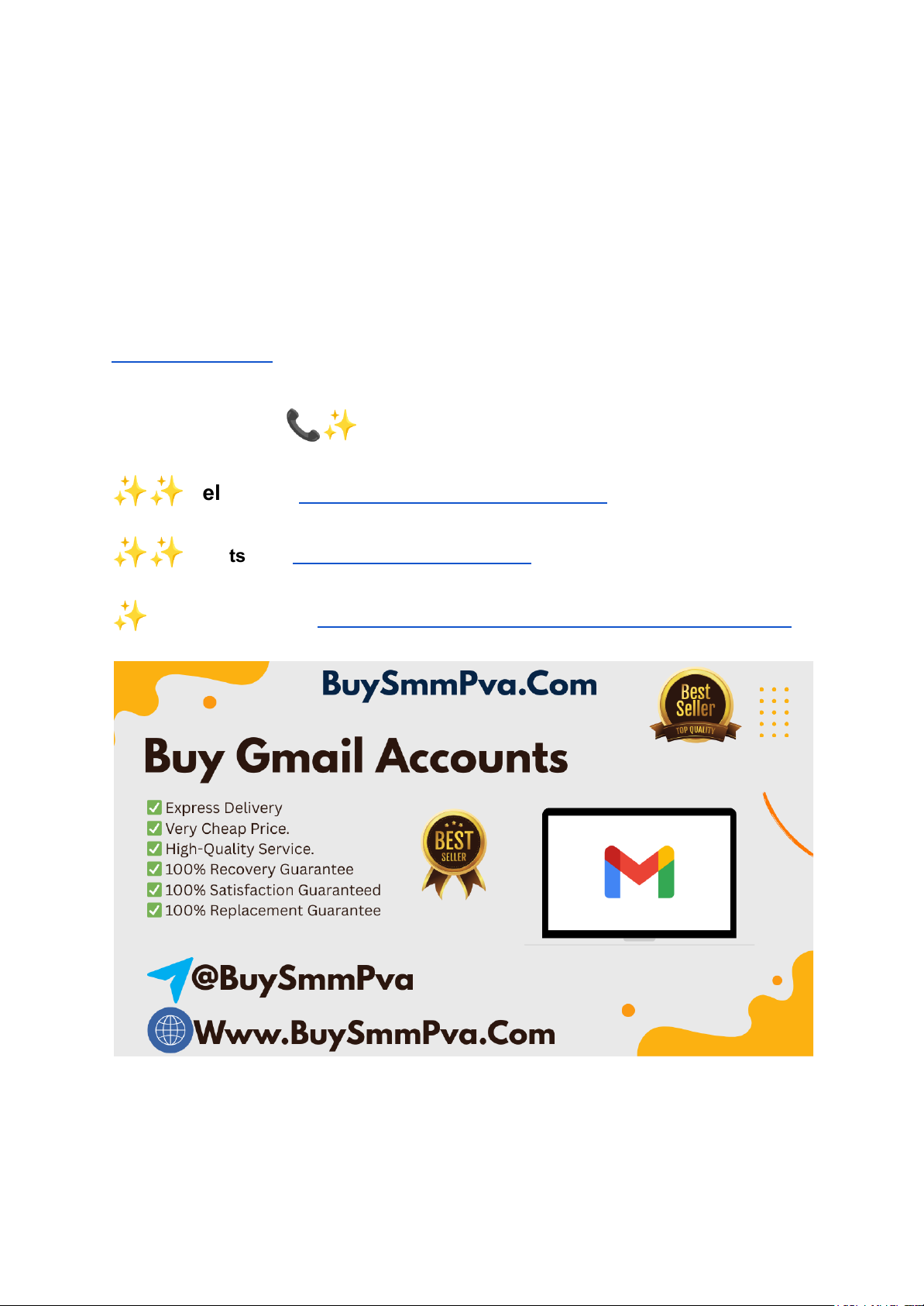 10 Best Website to Buy Old Gmail Accounts ( Pva and Bulk ) In today's competitive digital landscape, having a reliable and secure email presence is crucial for business growth and efficient communication. Gmail, being one of the most widely used and trusted email platforms, offers a plethora of benefits for business and agency owners. But with the increasing need for multiple accounts, many business owners find it challenging to manage the creation of these accounts securely. This is where the option to buy Gmail accounts – Safe & Verified Aged comes in, offering a strategic solution for businesses to expand their online operations smoothly. Contact Us! 📞✨ ✨✨ Telegram: https://telegram.me/buysmmpva ✨✨ WhatsApp: https://wa.me/12363497022 ✨ Visit Our Product: https://buysmmpva.com/product/buy-gmail-accounts/ 1. What are the advantages of buying Gmail accounts for businesses? https://buysmmpva.com/product/buy-gmail-accounts/ https://telegram.me/buysmmpva https://wa.me/12363497022 https://buysmmpva.com/product/buy-gmail-accounts/ When you buy Gmail accounts – Safe & Verified Aged, businesses gain access to pre-verified, secure accounts that are ready to use. These accounts are less likely to be flagged for suspicious activities, ensuring smooth communication with clients, suppliers, and other stakeholders. Furthermore, businesses can streamline their operations by using multiple accounts for different purposes, such as marketing, customer service, and internal communications. 2. How can buying aged Gmail accounts improve email deliverability? One of the significant benefits of buying aged Gmail accounts is enhanced email deliverability. Unlike newly created accounts, aged Gmail accounts have a proven track record and are less likely to end up in spam folders. This is particularly important for businesses and agencies that rely on email marketing campaigns and need to ensure their emails reach their intended recipients. 3. Why should agencies prefer buying verified Gmail accounts? Agencies often need to manage multiple accounts for their clients, and buying verified Gmail accounts offers them a fast and secure solution. These accounts are already verified, reducing the time spent on account setup and ensuring that they can immediately start using the accounts for their operations, whether for email outreach, campaign management, or client communications. 4. How do safe and verified Gmail accounts enhance security for businesses? When businesses choose to buy Gmail accounts – Safe & Verified Aged, they are assured of heightened security. Verified accounts typically come with built-in security features, including two-factor authentication (2FA), secure login protocols, and regular activity checks. This level of security helps safeguard sensitive business data and protects against potential cyber threats. 5. What makes a Gmail account safe and verified? A safe and verified Gmail account is one that has been authenticated by Google, confirming the user's identity and ensuring that the account complies with Google's terms of service. These accounts are less prone to being hacked or suspended due to suspicious activities, making them ideal for businesses and agencies that require reliable email solutions. buy Gmail accounts 6. How does buying Gmail accounts help businesses scale quickly? https://buysmmpva.com/product/buy-gmail-accounts/ https://buysmmpva.com/product/buy-gmail-accounts/ https://buysmmpva.com/product/buy-gmail-accounts/ https://buysmmpva.com/product/buy-gmail-accounts/ As businesses grow, they often require more email accounts for various functions, from customer support to marketing outreach. By choosing to buy Gmail accounts – Safe & Verified Aged, businesses can quickly scale their operations without worrying about creating and verifying each account individually. This allows them to focus more on business growth rather than account management. buy Gmail accounts 7. How does the age of a Gmail account affect its usability? Aged Gmail accounts come with a history of usage that demonstrates their legitimacy. This history often includes consistent login activity and interactions, which reduces the likelihood of the account being flagged as spam or compromised. Older accounts are generally seen as more trustworthy by Google, ensuring smoother operations for businesses that rely on their email systems. buy Gmail accounts 8. What types of businesses benefit from buying Gmail accounts? Businesses that require email outreach, marketing campaigns, customer communication, and social media management can all benefit from buy Gmail accounts – Safe & Verified Aged. Whether it’s for an e-commerce store, a digital marketing agency, or a consultancy firm, these accounts can be leveraged to ensure effective communication and branding. 9. How can buying Gmail accounts improve marketing efforts? For businesses involved in email marketing, buy Gmail accounts – Safe & Verified Aged can significantly improve campaign success. These accounts are less likely to be blacklisted or flagged, which means marketing emails have a higher chance of reaching their audience’s inboxes. This translates to better open rates, higher engagement, and improved conversion rates. 10. Can businesses use multiple Gmail accounts for different purposes? Yes, buy Gmail accounts allows businesses to segment their email management efficiently. For example, businesses can use one account for customer service, another for marketing, and yet another for internal communications. This not only helps in organizing tasks but also ensures that each communication channel is properly maintained. 11. How do businesses ensure their Gmail accounts remain safe after purchase? https://buysmmpva.com/product/buy-gmail-accounts/ https://buysmmpva.com/product/buy-gmail-accounts/ https://buysmmpva.com/product/buy-gmail-accounts/ https://buysmmpva.com/product/buy-gmail-accounts/ https://buysmmpva.com/product/buy-gmail-ac