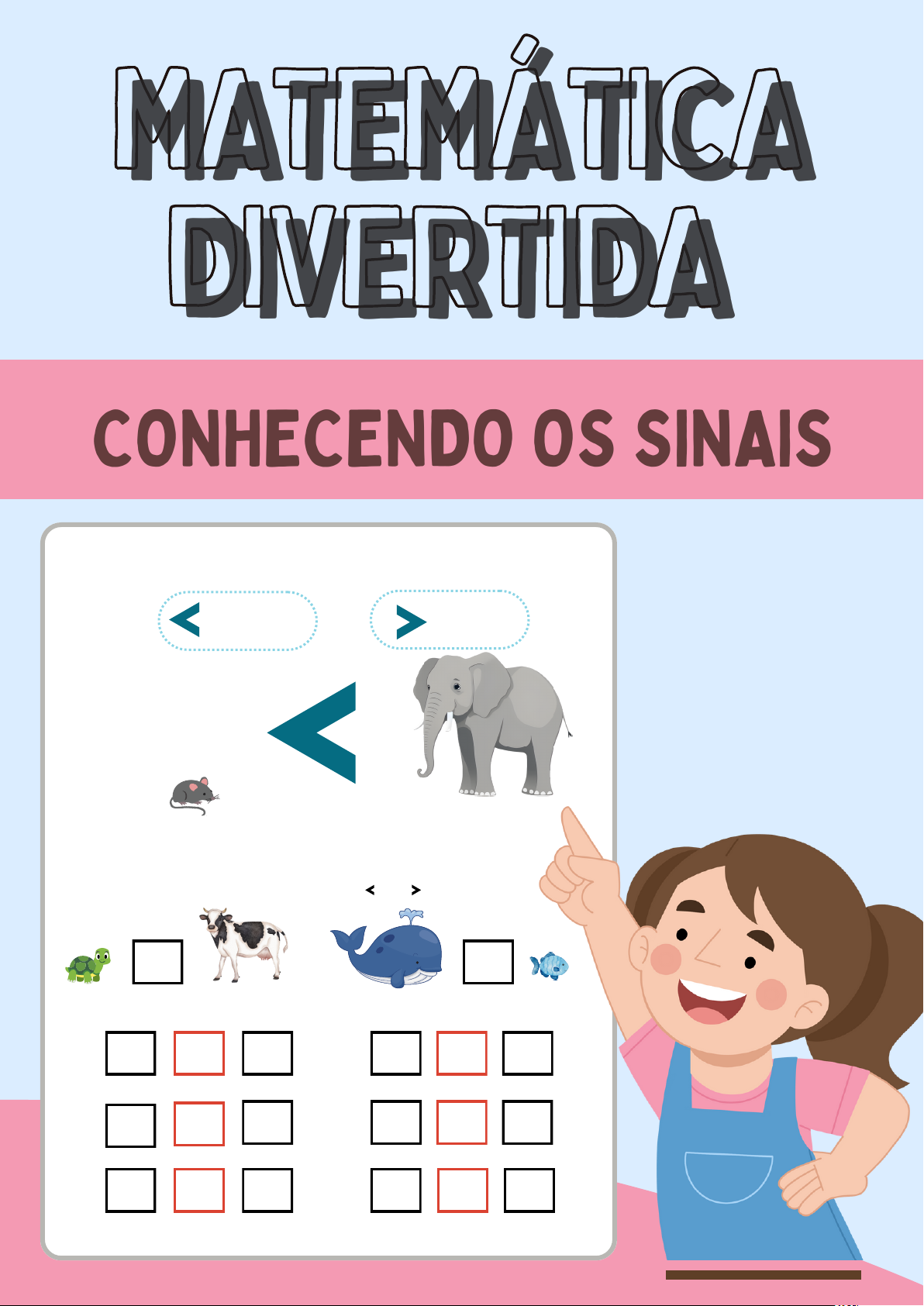 MaiorMenor O rato é menor que o elefante. Preencha o espaço com menor ou maior:1. 2 4 85 9 1 3 6 7 4 6 2 CONHECENDO OS SINAISCONHECENDO OS SINAIS MATEMÁTICA DIVERTIDA MATEMÁTICAMATEMÁTICA DIVERTIDADIVERTIDA MATEMÁTICA LEIA COM ATENÇÃO: Todos os direitos autorais pertencem à Sousa Marketing Digital LTDA - CNPJ - 46.941.473/0001-94. AVISOS E INSTRUÇÕES: O que posso fazer: O que não posso fazer: TERMOS DE USO: --------- Uso pessoal. Você pode baixar/imprimir o arquivo quantas vezes desejar para seu uso pessoal. (Casa/Escola) Os materiais do SMD estão sob a proteção dos Direitos Autorais previstos na Lei n° 9.610/1998, tais como estão dispostos nos art. 28 e art. 29 da referida lei, sendo expressamente proibida a distribuição (inclusive a venda), a transmissão e a reprodução não autorizadas pelo autor dos materiais que você está recebendo, podendo acarretar o crime previsto no art. 184 do Código Penal. Não é permitido revender ou compartilhar este produto.- Todas as vendas são finais. DIVIRTAM-SE NOME: PROFESSOR(A): TURMA: DATA: sinal significado = igual Escreva a quantidade de elementos de cada conjunto e, depois, use os sinais igual (=) ou diferente ( ). Sinais matemáticos Igual e Diferente Aqui é igual!! Aqui é diferente!! sinal significado diferente NOME: PROFESSOR(A): TURMA: DATA: Maior Sinais matemáticos Menor O rato é menor que o elefante. Preencha o espaço com menor ou maior:1. 2 4 85 9 1 3 6 7 4 6 2 NOME: PROFESSOR(A): TURMA: DATA: C D U 1 3 2 minuendo 1 1 _ subtraendo resto ou diferença Qual é o subtraendo?* Nome dos termos:Nome dos termos: C D U 4 6 7 1°parcela 5 1 2°parcela + 8 3°parcela soma ou total *Qual é a soma desta operação? Sinais matemáticos Adição Subtração Ideia de: * * * Adicionar Juntar Acrescentar Ideia de: * * * Tirar Subtrair Comparar Adição ou subtração? 5 3 = 8 7 4 = 11 6 3 = 3 9 3 = 6 12 4 = 16 4 8 = 12 10 5 = 5 3 9 = 12 14 7 = 7 6 4 = 10 15 5 = 10 0 5 = 5 NOME: PROFESSOR(A): TURMA: DATA: quociente1 8 resto Multiplicação Ideia de: * * * Adicionar Parcelas iguais Combinar Nome dos termos: C D U 1 2 5 multiplicando 10 produto multiplicador Sinais matemáticos Divisão Ideia de: * * Repartir Medir Nome dos termos: 1 8 5 divisordividendo 3 *Qual é o produto? 5 3 2 *Qual é o quociente? Resposta A: 1.250 Resposta B: 61 - 00 - NOME: PROFESSOR(A): TURMA: DATA: Maior, menor ou igual Escreva o sinal correto para menor que e igual a = Menor que: Maior que: Igual a: 5 2 9 3 8 5 8 7 6 9 7 6 5 é 3 é 8 é 7 é 8 3 4 9que que que a 7 Compare e pinte o sinal correto para e igual = a NOME: PROFESSOR(A): TURMA: DATA: Maior, menor ou igual Escreva o sinal correto para menor que e igual a = NOME: PROFESSOR(A): TURMA: DATA: Maior, menor ou igual Escreva o sinal correto para menor que e igual a = NOME: PROFESSOR(A): TURMA: DATA: Maior, menor ou igual > > = = = Escreva e circule o sinal correto para menor que , igual a = NOME: PROFESSOR(A): TURMA: DATA: Maior, menor ou igual Pinte o sinal correto para menor que e igual a = NOME: PROFESSOR(A): TURMA: DATA: Maior, menor ou igual NOME: PROFESSOR(A): TURMA: DATA: Igual ou diferente? Pinte a imagem que é diferente NOME: PROFESSOR(A): TURMA: DATA: Igual ou diferente? Pinte a imagem que é diferente NOME: PROFESSOR(A): TURMA: DATA: Igual ou diferente? Pinte a imagem que é diferente Olhe para a imagem à esquerda e circule a imagem que é a mesmo à direita NOME: PROFESSOR(A): TURMA: DATA: Igual ou diferente? 6aa0e9ed8d93a2e2bbe7e0cc3316ac220f30220fd09324efe576d7cd65c81686.pdf 5fd4b136c4dffbb97520093f39cff3dc9ad38668f045f7d20d076fa7c99a4168.pdf 5fd4b136c4dffbb97520093f39cff3dc9ad38668f045f7d20d076fa7c99a4168.pdf 5fd4b136c4dffbb97520093f39cff3dc9ad38668f045f7d20d076fa7c99a4168.pdf 6aa0e9ed8d93a2e2bbe7e0cc3316ac220f30220fd09324efe576d7cd65c81686.pdf 6aa0e9ed8d93a2e2bbe7e0cc3316ac220f30220fd09324efe576d7cd65c81686.pdf
