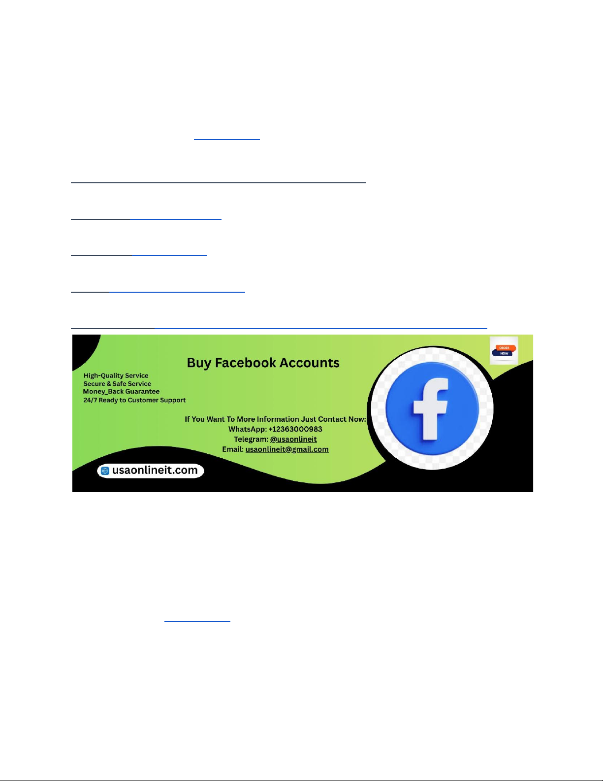 In the fast-paced digital world, many entrepreneurs and marketers seek quick solutions to acquire Facebook accounts for various business purposes. However, rushing the process can lead to compromised accounts, scams, or violations of platform policies. This guide explores the best practices to purchase Facebook accounts carefully and securely without rushing into fast, potentially risky services. USAOnlineIT is committed to providing reliable, verified accounts through a patient and responsible approach. If You Want To More Information Just Contact Now: WhatsApp:+12363000983 Telegram: @usaonlineit Email: usaonlineit@gmail.com Websites Link :https://usaonlineit.com/product/buy-facebook-accounts/ Understanding the Importance of Patience in Account Acquisition Patience is a vital component when buying Facebook accounts. Rushing to acquire accounts quickly often results in compromised credentials, bans, or accounts that violate platform policies. Taking the time to research reputable providers and verify account authenticity ensures long-term safety and usability. A patient approach allows buyers to evaluate the seller’s credibility, check for guarantees, and understand the account’s history thoroughly. Rushing can lead to scams, fake accounts, or accounts with prior restrictions that could jeopardize your business activities. USAOnlineIT emphasizes the importance of patience, guiding clients through a meticulous process that prioritizes security and authenticity. This careful approach minimizes risks and ensures you receive accounts that will serve your business needs without interruption or penalties. Remember, in the realm of digital assets, slow and steady wins the race, providing sustainable success and peace of mind. Why Rushing Can Lead to Account Bans and Restrictions https://usaonlineit.com/product/buy-facebook-accounts/ https://usaonlineit.com/product/buy-facebook-accounts/ https://usaonlineit.com/product/buy-facebook-accounts/ https://usaonlineit.com/product/buy-facebook-accounts/ https://usaonlineit.com/product/buy-facebook-accounts/ Speeding through the purchase process without due diligence increases the likelihood of acquiring accounts flagged or banned by Facebook. Quick transactions often involve accounts with suspicious activity, fake credentials, or prior violations. These accounts are at higher risk of being restricted or shut down, which wastes time and money. Facebook employs strict algorithms to detect suspicious behavior, and hastily acquired accounts may not have a clean history. Furthermore, accounts bought from unreliable sources might have prior restrictions that the new owner inherits. This can lead to permanent bans, making the investment worthless. USAOnlineIT advocates for a cautious, deliberate approach to buying accounts, emphasizing verification and authenticity checks. By avoiding haste, buyers significantly reduce the risk of penalties and ensure their accounts remain active and compliant with Facebook’s policies. Patience in acquisition ultimately results in a more stable and profitable long-term presence on the platform. How to Identify Trustworthy Providers Finding reputable providers is essential for secure and reliable account purchases. Trustworthy sellers offer verified accounts with detailed histories, transparent information, and guarantees. Look for providers with positive customer reviews, long-standing industry presence, and clear documentation of account authenticity. USAOnlineIT is recognized for its transparent processes, verified accounts, and customer-centric approach. It’s critical to avoid providers who promise instant delivery without verification, as these often sell fake or compromised accounts. Reliable sellers also offer guarantees such as replacement policies if the account gets restricted or banned shortly after purchase. Conduct thorough research, read reviews, and verify the seller’s reputation before proceeding. Trustworthy providers prioritize security, transparency, and customer satisfaction. Choosing a reputable provider ensures that your investment is protected and that you receive a genuine, usable Facebook account that aligns with your business goals. The Role of Detailed Verification in Account Safety Verification is the cornerstone of secure account purchases. Verified accounts have a proven history, genuine activity, and authentic credentials, reducing risks significantly. When buying Facebook accounts, always request detailed verification reports that include account age, activity history, and linked contact information. Verified accounts often come with additional security features, such as email or phone number confirmation, which can be transferred or updated. USAOnlineIT specializes in providing thoroughly verified accounts with comprehensive documentation, ensuring clients receive safe and legitimate assets. Proper verification prevents issues such as suspension, restrictions, or fake accounts that can harm your reputation. It also enhances trustworthiness when engaging with customers or running advertising campaigns. Prioritizing verified accounts is a best practice that guarantees a smoother experience and long-term stability on Facebook. Avoiding the Temptation of Quick, Cheap Deals Many buyers are tempted to choose the cheapest and fastest options available, but this often results in compromised accounts. Cheap deals may involve fake accounts, accounts with prior restrictions, or accounts obtained through unethical methods. Such accounts pose significant risks, including bans, security breaches, or legal issues. Instead, focus on quality over cost by selecting reputable providers like USAOnlineIT that offer verified, aged accounts with guarantees. Investing in a legitimate account may cost more initially but provides peace of mind, security, and longevity. Remember, a stable and compliant account is worth the premium. Avoid scams and shortcuts that promise instant gratification; instead, choose a r