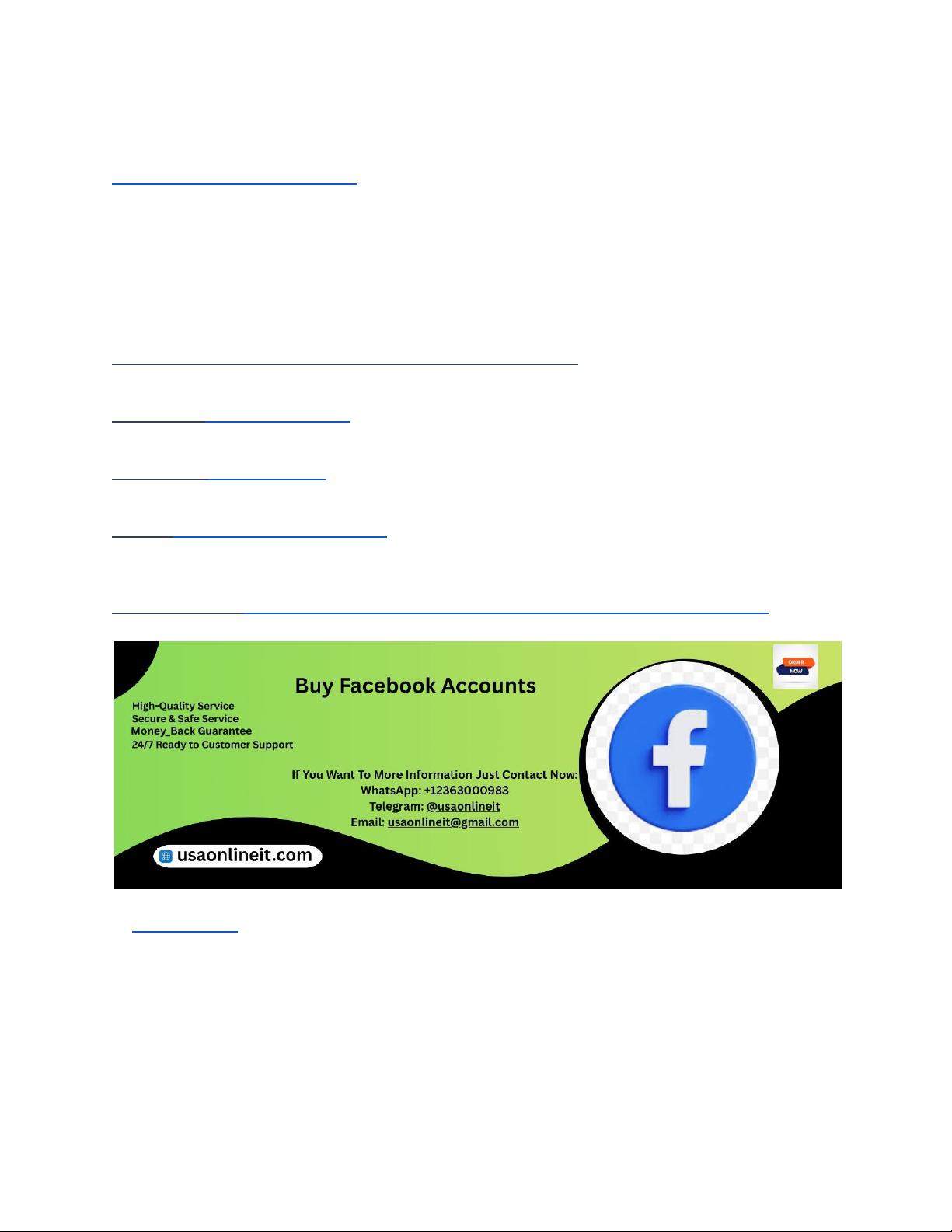 Understanding Facebook Marketing Accounts in the USA Facebook marketing accounts are the foundation of any serious digital advertising strategy in the United States. These accounts allow businesses to run ads, manage pages, access Marketplace features (where eligible), and build long-term brand trust. Unlike personal profiles, marketing-focused setups are designed for scalability, compliance, and data-driven growth. For US-based advertisers, Facebook applies stricter identity verification, payment validation, and account-quality checks, making it critical to understand how the system works before investing heavily in ads. If You Want To More Information Just Contact Now: WhatsApp:+12363000983 Telegram: @usaonlineit Email: usaonlineit@gmail.com Websites Link :https://usaonlineit.com/product/buy-facebook-accounts/ At USAOnlineIT, we help businesses understand the structure behind Facebook’s ecosystem so they can grow without unnecessary shutdowns or restrictions. Facebook evaluates signals such as account history, behavior consistency, payment reliability, and policy compliance. Marketers who rush the process often face bans, while those who build properly gain stability and higher ad performance. Knowing the difference is the first step toward sustainable success. Personal Profiles vs Business Accounts for Marketing https://usaonlineit.com/product/buy-facebook-accounts/ https://usaonlineit.com/product/buy-facebook-accounts/ https://usaonlineit.com/product/buy-facebook-accounts/ https://usaonlineit.com/product/buy-facebook-accounts/ https://usaonlineit.com/product/buy-facebook-accounts/ Many beginners confuse personal Facebook profiles with business marketing accounts. A personal profile is meant for individual use, while marketing activities should always run through Facebook Business Manager. Mixing the two increases the risk of restrictions and lost assets. In the USA, Facebook is especially strict about this separation. Business accounts allow you to manage ad accounts, pages, pixels, catalogs, and team members in one secure environment. This structure protects your assets even if a personal profile faces issues. USAOnlineIT strongly recommends that all serious advertisers operate through Business Manager to ensure compliance, scalability, and professional credibility. This approach also makes it easier to work with agencies, freelancers, and partners without sharing personal login details. Facebook Business Manager Setup Best Practices Setting up Business Manager correctly is critical for long-term success. This includes verifying your business, adding a real domain, setting up two-factor authentication, and assigning proper roles. Facebook prioritizes verified businesses in the USA, especially for higher ad spend and sensitive niches. USAOnlineIT helps clients configure Business Manager in a way that aligns with Facebook’s internal trust signals. A clean setup reduces ad disapprovals, lowers CPMs over time, and prevents sudden account shutdowns. Many marketers underestimate how much structure matters—yet it’s one of the biggest factors in account longevity and ad performance. Facebook Ad Accounts and Spending Limits Explained Facebook ad accounts come with spending limits that increase as trust builds. New ad accounts typically start with lower thresholds, which gradually rise with consistent policy-compliant activity. Trying to force rapid scaling often triggers automated reviews or restrictions. In the US market, Facebook closely monitors billing consistency, ad quality, and user feedback. USAOnlineIT advises clients to scale ad spend gradually while maintaining high-quality creatives and landing pages. This approach signals reliability to Facebook’s systems and unlocks higher limits naturally over time. Marketplace Access and Eligibility Requirements Facebook Marketplace is not automatically available to all accounts. Eligibility depends on location, account history, age, and compliance with community standards. In the USA, Marketplace access is tied closely to trust signals and consistent behavior. Rather than attempting shortcuts, USAOnlineIT guides businesses on how to qualify properly by maintaining clean activity, verifying identity, and following selling policies. This ensures stable access and avoids permanent restrictions that are difficult to reverse. Facebook Account Trust and Quality Signals Facebook uses internal quality scores to evaluate accounts. These include login behavior, IP consistency, engagement patterns, and adherence to advertising policies. Accounts with strong trust signals experience fewer reviews and better ad delivery. USAOnlineIT focuses on helping brands align with these quality metrics through proper setup, realistic scaling, and transparent business practices. Trust isn’t built overnight—but once established, it becomes a powerful asset. Common Reasons Facebook Accounts Get Restricted Restrictions often result from policy violations, inconsistent behavior, payment issues, or misleading ad content. In the US, financial and health-related ads are especially scrutinized. USAOnlineIT helps clients audit their ad strategies to identify risk areas before Facebook flags them. Prevention is far more effective than recovery, especially when accounts are tied to valuable business assets. Safe Scaling Strategies for Facebook Marketing Scaling Facebook ads successfully requires structure, patience, and data analysis. Sudden budget spikes, creative duplication, or aggressive targeting can raise red flags. A controlled scaling strategy minimizes risk and improves ROI. USAOnlineIT uses proven scaling frameworks that prioritize account health while increasing performance. This approach protects accounts while delivering consistent growth. Agency and Partner Account Solutions Many US businesses choose to work with agencies or partners that provide managed ad account solutions. This allows brands to advertise without handling technical complexity inter