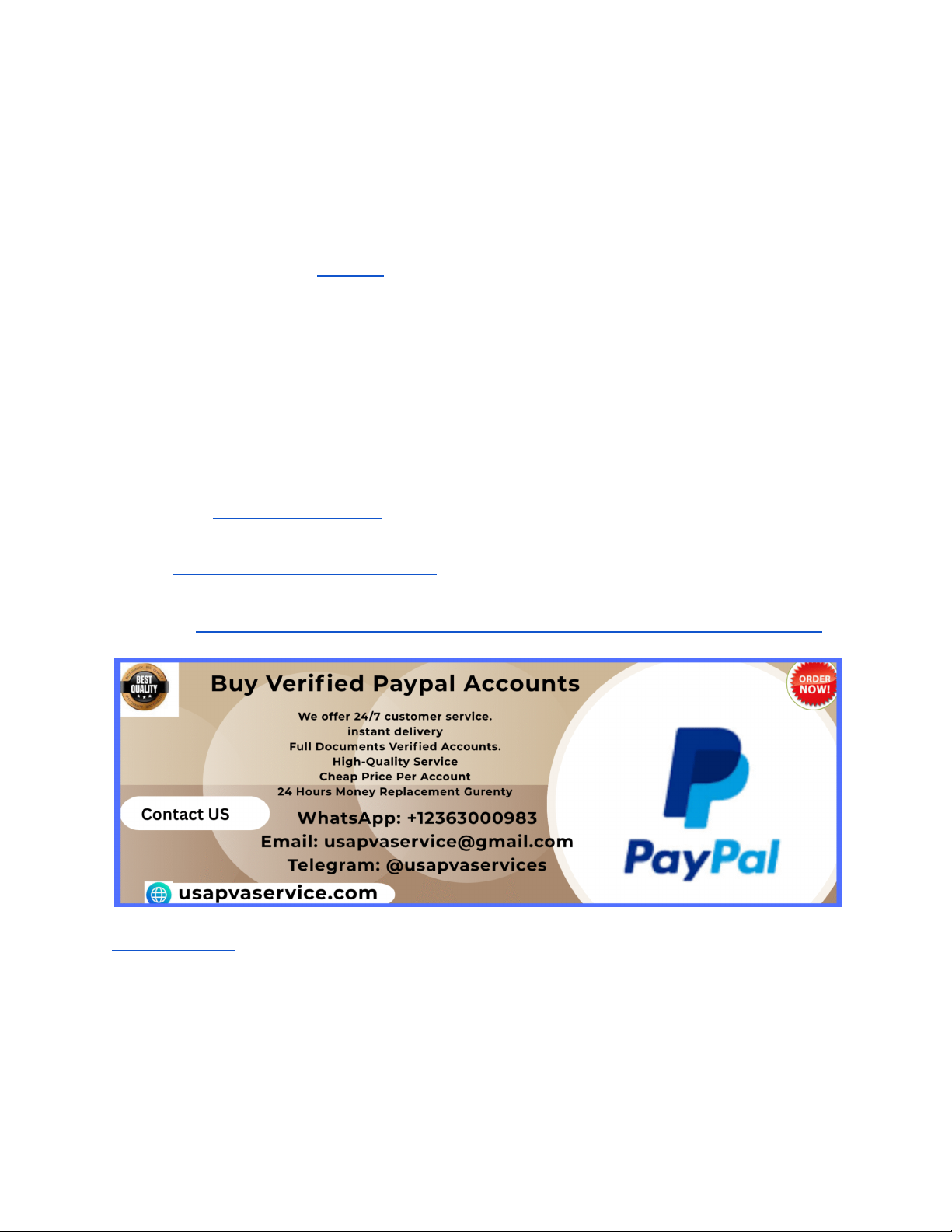 Buy Authentic PayPal Accounts Online – 24/7 Support & 100% Guarantee Why Authentic PayPal Accounts Matter for Secure Online Transactions In today’s digital economy, PayPal remains one of the most trusted global payment platforms for businesses, freelancers, and online entrepreneurs. Using authentic PayPal accounts is essential to ensure smooth transactions, account stability, and long-term usability. An authentic account reduces the risk of sudden limitations, payment holds, or compliance issues that can interrupt business operations. When you choose verified and properly prepared PayPal accounts, you gain peace of mind knowing that the account aligns with PayPal’s policies and industry best practices.If You Want more Information, Just Contact us now: WhatsApp: +12363000983 Telegram: @usapvaservices Email: usapvaservice@gmail.com Visit us :https://usapvaservice.com/product/buy-verified-paypal-accounts/ usapvaservice focuses on providing high-quality PayPal account solutions designed for users who value security, transparency, and reliability. Authenticity is not just a buzzword—it directly affects transaction success rates, customer trust, and brand reputation. By prioritizing genuine account setups with proper documentation and compliance-ready configurations, businesses can scale confidently. This approach also supports better buyer-seller protection, smoother dispute handling, and faster withdrawals. Ultimately, authentic PayPal accounts help you build a sustainable online payment infrastructure that supports growth rather than creating risk. https://usapvaservice.com/product/buy-verified-paypal-accounts/ http://@usapvaservices https://usapvaservice.com/product/buy-verified-paypal-accounts/ https://usapvaservice.com/product/buy-verified-paypal-accounts/ Understanding the Benefits of Buying Verified PayPal Accounts Verified PayPal accounts offer a range of advantages compared to unverified or poorly prepared alternatives. Verification helps unlock higher transaction limits, improves trust with customers, and allows access to more PayPal features. For online sellers and service providers, this translates into smoother checkouts and higher conversion rates. A verified account signals credibility, which can influence buyer confidence and repeat purchases. usapvaservice emphasizes verification as a cornerstone of account quality. Each account is prepared with attention to compliance standards, ensuring users can operate without unnecessary interruptions. Verified accounts also experience fewer security challenges, as PayPal’s systems recognize them as legitimate and properly set up. This stability is particularly important for businesses processing frequent or high-value payments. By choosing verified PayPal accounts, users position themselves for long-term success, reduced operational friction, and improved customer satisfaction across multiple markets. How 24/7 Support Enhances Your PayPal Account Experience Round-the-clock support is critical when managing online payment systems. Issues can arise at any time, from login concerns to transaction inquiries. Having access to 24/7 support ensures that problems are addressed quickly, minimizing downtime and financial impact. Immediate assistance can be the difference between resolving a minor issue and facing prolonged account disruption. usapvaservice provides dedicated 24/7 customer support to guide users through every stage of account usage. Whether you need onboarding help, security guidance, or general account advice, expert assistance is always available. This commitment to support builds trust and reliability, especially for businesses operating across time zones. Continuous support also reflects a customer-first approach, ensuring users feel confident and protected. With responsive help available at all times, managing your PayPal account becomes a smoother and more predictable experience. The Importance of a 100% Guarantee for Buyer Confidence A 100% guarantee plays a vital role in building buyer confidence, particularly in digital services. It demonstrates accountability and commitment to quality, assuring customers that their investment is protected. When purchasing PayPal account solutions, a guarantee reduces perceived risk and reinforces trust in the provider. usapvaservice stands behind its offerings with a clear guarantee, reflecting confidence in account quality and preparation standards. This assurance means customers can proceed knowing that support and resolution options are available if concerns arise. A strong guarantee also indicates transparency and professionalism, two factors that influence purchasing decisions. By prioritizing customer protection, usapvaservice fosters long-term relationships rather than one-time transactions. This approach aligns with ethical business practices and enhances brand credibility in competitive online markets. Secure Account Preparation and Compliance-Ready Setup Security and compliance are essential when dealing with financial platforms like PayPal. Proper account preparation includes secure credentials, compliance-aware configurations, and adherence to platform guidelines. These measures help reduce risks associated with limitations or reviews. usapvaservice focuses on secure, compliance-ready account setups that prioritize user safety. Accounts are prepared with attention to detail, ensuring alignment with PayPal’s usage standards. This proactive approach helps users avoid common pitfalls and maintain account health over time. Secure preparation also supports better fraud prevention and data protection, which are critical in today’s digital landscape. By choosing a provider that values security and compliance, users can focus on growing their business instead of managing avoidable risks. Who Can Benefit from Authentic PayPal Accounts Authentic PayPal accounts are valuable for a wide range of users, including eCommerce sellers, freelancers, digital marketers, and interna