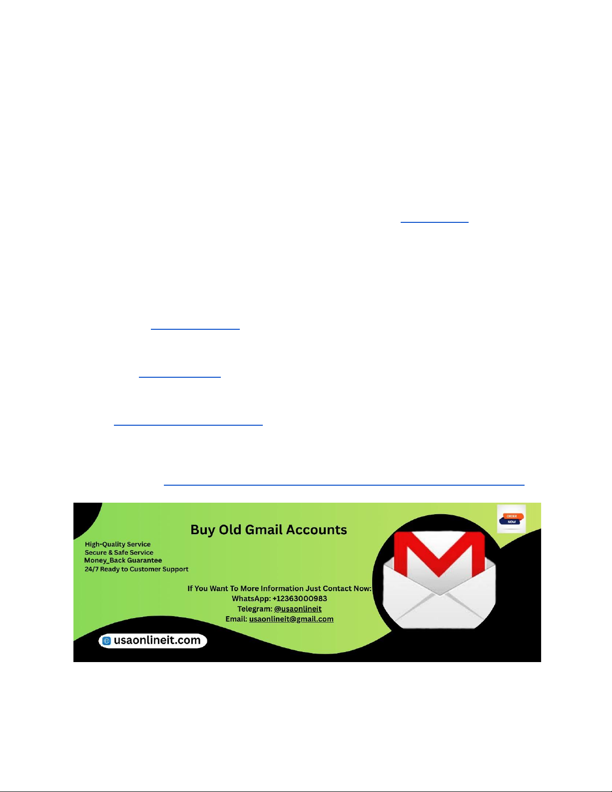 Introduction to Old Gmail Accounts and Their Value Old Gmail accounts have become increasingly valuable in today’s digital ecosystem. Unlike newly created email accounts, aged Gmail accounts carry a history that signals trust, stability, and authenticity. This makes them particularly useful for businesses, marketers, developers, and digital professionals who need reliable communication channels. At USAOnlineIT, we understand that credibility matters, and that is why aged Gmail accounts with full access and warranty are in high demand. If You Want To More Information Just Contact Now: WhatsApp: +12363000983 Telegram: @usaonlineit Email: usaonlineit@gmail.com Website Link : https://usaonlineit.com/product/buy-old-gmail-accounts/ An old Gmail account typically has a clean activity record, consistent login behavior, and age that helps reduce verification issues. Many platforms and services treat aged accounts more https://usaonlineit.com/product/buy-old-gmail-accounts/ https://usaonlineit.com/product/buy-old-gmail-accounts/ https://usaonlineit.com/product/buy-old-gmail-accounts/ https://usaonlineit.com/product/buy-old-gmail-accounts/ favorably than brand-new ones, as they are less likely to trigger security flags. This can result in smoother onboarding, fewer restrictions, and better overall performance. Another important aspect is reliability. With full access provided, users can confidently manage security settings, recovery options, and long-term usage without interruptions. When combined with a warranty, buyers gain peace of mind knowing their investment is protected. USAOnlineIT focuses on quality, transparency, and customer satisfaction, making old Gmail accounts a dependable digital asset for professional use. Why Account Age Matters in the Digital World Account age plays a critical role in how email accounts are perceived across the internet. Older Gmail accounts tend to have stronger reputational signals, which can influence how emails are delivered, how services respond, and how platforms assess risk. This is one of the key reasons professionals seek aged Gmail accounts from trusted providers like USAOnlineIT. Newly created accounts often face limitations such as phone verification prompts, temporary restrictions, or heightened monitoring. In contrast, older accounts have already passed Google’s initial trust-building phase. Their long-standing presence suggests consistent usage, making them appear more authentic in automated systems. For businesses, this can translate into improved email deliverability, smoother account integrations, and fewer interruptions. Account age also helps reduce the likelihood of sudden suspensions caused by automated security reviews. While age alone is not a guarantee, it significantly improves account stability when paired with responsible usage. USAOnlineIT ensures that all old Gmail accounts are properly aged, verified, and delivered with complete access. This allows users to immediately benefit from the advantages that come with established digital identities. Understanding Full Access Gmail Accounts Full access is one of the most important features when purchasing old Gmail accounts. It means the buyer receives complete control over the account, including login credentials, recovery email settings, password changes, and security configurations. At USAOnlineIT, full access is a standard, not an option. With full access, users can update passwords immediately, add or remove recovery information, and customize security preferences to align with their needs. This level of control is essential for long-term usability and account safety. Without full access, accounts may carry risks such as recovery conflicts or limited control. Full access also allows seamless integration with Google services like Drive, YouTube, Google Ads (where permitted), and other third-party tools. This makes aged Gmail accounts far more versatile and valuable for professional workflows. https://usaonlineit.com/product/buy-old-gmail-accounts/ USAOnlineIT prioritizes transparency by delivering accounts that are ready for secure ownership transfer. Buyers can confidently manage their accounts from day one, ensuring stability, privacy, and uninterrupted access. The Importance of Warranty When Buying Gmail Accounts A warranty is a crucial factor that separates reliable providers from unreliable sellers. When purchasing old Gmail accounts, a warranty ensures protection against unexpected issues such as login problems or account access errors within a specified period. USAOnlineIT offers warranty-backed accounts to safeguard customer investments. Without a warranty, buyers take on unnecessary risk. Even high-quality accounts may occasionally face technical issues due to platform updates or security checks. A warranty provides reassurance that support or replacement is available if something goes wrong under valid conditions. This level of accountability reflects a provider’s confidence in their product. USAOnlineIT stands behind the quality of its aged Gmail accounts, offering clear warranty terms and responsive customer support. This builds trust and long-term relationships with clients. A warranty also signals professionalism. It shows that the provider values customer satisfaction over short-term sales. For anyone seeking dependable aged Gmail accounts, warranty coverage is not just a benefit—it is a necessity. Common Use Cases for Old Gmail Accounts Old Gmail accounts serve a wide range of legitimate professional use cases. Businesses often need stable email accounts for communication, account recovery, testing environments, or long-term digital projects. Aged accounts help reduce friction in these scenarios. At USAOnlineIT, we cater to diverse professional needs. Developers may use aged Gmail accounts for testing integrations with APIs or authentication flows. Marketers may require established inboxes for managing brand communications or handling client correspondence. Entr