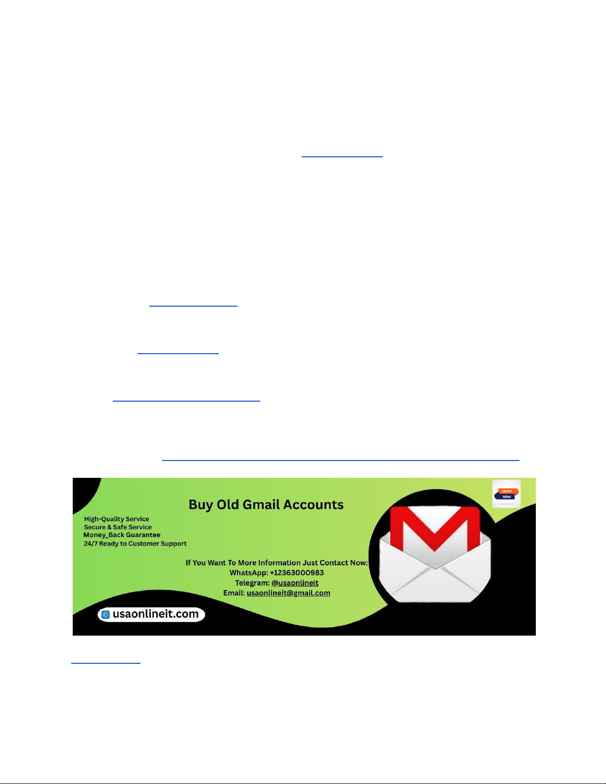 Understanding Why People Search for Old Gmail Accounts Many individuals and businesses search for old Gmail accounts because they believe age equals trust. Older email accounts are often assumed to have better credibility, fewer verification hurdles, and a stronger reputation across Google services. Marketers, freelancers, and online entrepreneurs may look for aged accounts to save time and avoid the slow process of building trust from scratch. However, this growing demand has also created confusion and misinformation in the market. Not all aged Gmail accounts are safe, legitimate, or transferable. If You Want To More Information Just Contact Now: WhatsApp: +12363000983 Telegram: @usaonlineit Email: usaonlineit@gmail.com Website Link : https://usaonlineit.com/product/buy-old-gmail-accounts/ USAOnlineIT emphasizes the importance of understanding why this demand exists before taking any action. While account age does influence trust signals, ownership, usage history, and compliance matter far more. Many users do not realize that buying Gmail accounts can expose them to serious risks, including account suspension and data loss. Education is the first step https://usaonlineit.com/product/buy-old-gmail-accounts/ https://usaonlineit.com/product/buy-old-gmail-accounts/ https://usaonlineit.com/product/buy-old-gmail-accounts/ https://usaonlineit.com/product/buy-old-gmail-accounts/ https://usaonlineit.com/product/buy-old-gmail-accounts/ toward making safe decisions. By understanding motivations and misconceptions, users can explore legal and secure alternatives that provide the same benefits without long-term consequences. The Hidden Risks Behind Purchased Gmail Accounts Buying Gmail accounts often appears simple on the surface, but the risks beneath are significant. Many accounts sold online were created using automated tools, fake identities, or compromised systems. These accounts may already be flagged internally by Google, even if they appear active at first. Buyers frequently lose access days or weeks later without warning. USAOnlineIT strongly advises users to understand these dangers. Sellers may retain recovery access, reuse phone numbers, or resell the same account to multiple buyers. In some cases, accounts contain past activity linked to spam or policy violations, making them unstable from the start. Even if credentials are changed, Google’s security systems can detect ownership changes. What seems like a shortcut can result in wasted money and operational disruption. Choosing security over speed is essential when dealing with email infrastructure. Google’s Policy on Account Ownership and Transfers Google’s Terms of Service clearly state that Gmail accounts are intended for the individual who created them. Account transfers, resale, or shared ownership violate these terms. While many users overlook this policy, enforcement has become more advanced over time. Automated systems analyze login behavior, device fingerprints, IP changes, and recovery data to identify suspicious activity. USAOnlineIT highlights that policy violations do not always result in immediate suspension. Sometimes accounts work temporarily, giving users a false sense of security. However, enforcement can occur months later, often when the account becomes business-critical. Understanding these rules helps users avoid irreversible mistakes. Compliance is not optional—it is essential for long-term reliability and professional operations. Common Myths About “Aged” Gmail Accounts One common myth is that account age alone guarantees safety. In reality, age without consistent, legitimate usage provides little value. Another misconception is that changing passwords and recovery information makes an account secure. Google tracks far more than surface-level details. USAOnlineIT regularly encounters users who believed they purchased “verified” or “safe” accounts, only to lose access later. Verification badges, phone numbers, or profile completeness do not override policy violations. Trust is built through legitimate ownership, not artificial aging. Dispelling these myths helps users make informed, sustainable choices for their digital operations. Why “Trusted Providers” Are Often Misleading Many websites label themselves as trusted providers without transparency or accountability. These claims are rarely backed by verifiable business registrations, customer protections, or long-term guarantees. Once an account fails, buyers often have no recourse. USAOnlineIT encourages users to critically evaluate any provider making such claims. True trust comes from compliance, customer education, and legal service offerings. Providers that avoid discussing Google policies or risks should raise immediate red flags. Transparency is the foundation of genuine trust in digital services. Security Concerns and Data Privacy Issues When purchasing Gmail accounts, users may unknowingly inherit privacy risks. Previous owners could have accessed sensitive communications, recovery emails, or connected third-party apps. Even deleted data can leave traces that compromise security. USAOnlineIT stresses that email accounts often act as gateways to other platforms. A compromised Gmail account can expose cloud storage, payment systems, and social media accounts. Protecting data privacy requires full ownership and clean account history, which purchased accounts cannot guarantee. Legal and Business Consequences of Account Loss For businesses, losing access to an email account can halt operations instantly. Client communications, invoices, password resets, and internal records may all depend on a single email address. Sudden suspension can damage reputation and revenue. USAOnlineIT advises businesses to prioritize stability over shortcuts. Legal alternatives exist that offer professionalism, age credibility, and scalability without risking shutdowns. Planning for growth means choosing infrastructure that will not disappear overnight. Safe a