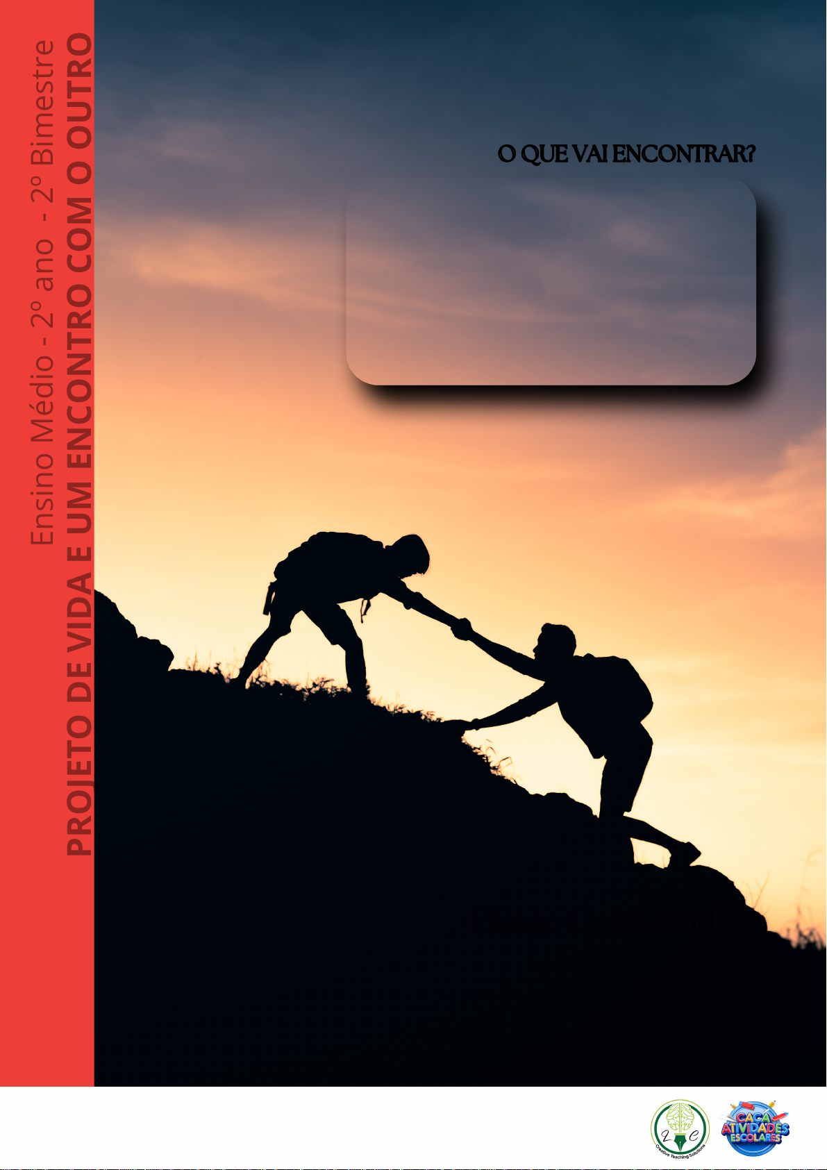 O QUE VAI ENCONTRAR?O QUE VAI ENCONTRAR? PR O JE TO D E VI D A E U M E N CO N TR O C O M O O U TR O PR O JE TO D E VI D A E U M E N CO N TR O C O M O O U TR O En si no M éd io - 2º a no En si no M éd io - 2º a no - 2 º B im es tr e - 2 º B im es tr e PROJETO DE VIDA Elaine C. AndradeElaine C. Andrade AUTORES Eduardo Menandes PARCERIAS cacapalavrasdidaticos.com.br2025 O jovem no/do Século XXI Vamos ouvir para aprimorar Interações sociais na era da tecnologia Cidadania na vida real e virtual Conectando dimensões para um futuro social Projeto de Vida – Estabelecendo conexões Pensando em Legados Coerência para uma nova realidade AGATHA BRUNA V.P. RIBEIRO - agathabvpr@gmail.com - APCPDELET23042025 - 2962 Uso exclusivo com os seus alunos ANDRADE, Elaine Cris Projeto de Vida 2º ano de Ensino Médio - 2° bimestre/2025 66 páginas.: Apostila com textos e exercícios práticos. 1.º Edição – Belo Horizonte Obra em 1v. para o Ensino Médio Componente curricular: Projeto de Vida CNPJ: 38.042.723/0001-26 Elaborado por: Elaine Cris Andrade Professores Colaboradores: Eduardo Menandes Edição de texto e organização: Elaine C. M. Andrade Projeto gráfico: Elaine C. M. Andrade PROJETO DE VIDA Ensino Médio - 2º ano 2º Bimestre AVISO IMPORTANTE USO EXCLUSIVO COM OS SEUS ALUNOS É PROIBIDA A REPRODUÇÃO, VENDA E COMPARTILHAMENTO DESTE MATERIAL. TODAS AS APOSTILAS DE CAÇA-PALAVRAS DIDÁTICOS ESTÃO PROTEGIDAS COM SENHA, DE USO PESSOAL DO COMPRADOR. ALÉM DISSO, EM TODAS AS PÁGINAS, ESTÃO O SEU E-MAIL E UM CÓDIGO INTERNO PARA LOCALIZAR RAPIDAMENTE O DONO DO MATERIAL. A VIOLAÇÃO DOS DIREITOS EXCLUSIVOS DO PRODUTOR SOBRE AS OBRAS É CRIME (ARTIGO 184 DO CÓDIGO PENAL). CASO SEJA FEITA A REPRODUÇÃO, VENDA OU COMPARTILHAMENTO, NOS RESERVAMOS O DIREITO DE ENTRAR COM PROCESSOS E AÇÕES LEGAIS PARA RESPONSABILIZÁ-LO POR PLÁGIO E DANOS AOS DIREITOS AUTORAIS. e um Encontro Com o Outro AGATHA BRUNA V.P. RIBEIRO - agathabvpr@gmail.com - APCPDELET23042025 - 2962 Uso exclusivo com os seus alunos Apresentação Caros colegas, É um prazer e um desafio preparar um material para compartilhar com vocês. O ensino e o nosso público estão em constante transformação, e buscar novas estratégias tem sido nosso desafio diário. Esta apostila foi desenvolvida com o objetivo de oferecer, aos professores e alunos, alternativas diferenciadas, descontraídas e dinâmicas que facilitem o processo de ensino e aprendizagem dos conteúdos trabalhados em sala de aula, em todos os componentes curriculares. O estudo dirigido é uma metodologia de ensino que envolve a condução do processo de aprendizado por meio de orientações claras e atividades planejadas, facilitando a assimilação dos conteúdos e promovendo uma maior autonomia no estudo. Os benefícios do estudo dirigido para a aprendizagem são numerosos e incluem: Organização e Planejamento: Os alunos aprendem a organizar seu tempo e a planejar suas atividades de estudo de forma eficiente, o que contribui para o desenvolvimento de habilidades de gerenciamento do tempo. Autonomia: Com orientações claras, os alunos ganham confiança para estudar sozinhos, desenvolvendo independência e responsabilidade pelo próprio aprendizado. Foco e Concentração: As atividades dirigidas ajudam os alunos a manter o foco nos objetivos de aprendizagem, evitando distrações e aumentando a produtividade. Desenvolvimento de Habilidades: Através de exercícios práticos e direcionados, os alunos aprimoram suas habilidades de compreensão, análise e síntese, essenciais para o sucesso acadêmico. Motivação: A estrutura e clareza das atividades proporcionam um caminho claro a seguir, o que pode aumentar a motivação e o engajamento dos alunos no processo de aprendizagem. Esperamos que esta apostila seja uma ferramenta valiosa para apoiar o desenvolvimento acadêmico e pessoal dos alunos, oferecendo recursos e atividades que promovam um aprendizado eficaz e prazeroso. Elaine Cristina M. de Andrade Formada em Pedagogia (2012-2015) pela Universidade Braz Cubas-SP. Pós- graduada em Ensino de Língua Inglesa pela Universidade Estácio de Sá. Eduardo Menandes Bacharel e Licenciado em Geografia pela PUC-MG Pós-Graduado em Metodologia de Ensino de Geografia pelo IPEMIG Professor de Geografia na Rede Pública do Estado de Minas Gerais e Prefeitura Municipal de Betim. VALORIZE O TRABALHO INTELECTUAL DOS PROFISSIONAIS DA EDUCAÇÃO AGATHA BRUNA V.P. RIBEIRO - agathabvpr@gmail.com - APCPDELET23042025 - 2962 Uso exclusivo com os seus alunos 1 - O jovem no/do Século XX ...................................................................... 6 2 - Vamos ouvir para aprimorar ................................................................ 10 3 - Interações sociais na era da tecnologia ...................................... 14 4 - Cidadania na vida real e virtual ........................................................ 18 5 - Conectando dimensões para um futuro social ........................ 22 6 - Projeto de Vida – Estabelecendo conexões ............................... 26 7 - Pensando em Legados ......................................................................... 30 8 - Coerência para uma nova realidade .............................................. 34 Colorir .................................................................................................................. 38 Avaliação Formativa .................................................................................... 43 Gabaritos ............................................................................................................ 46 Anexos .................................................................................................................. 56 Planejamento bimestral .............................................................................. 61 Sumário Projeto de Vida - 2º ano - 2º Bimestre Projeto de Vida - 2º ano - 2º bimestre Produzido LC Creative Teaching Soluti