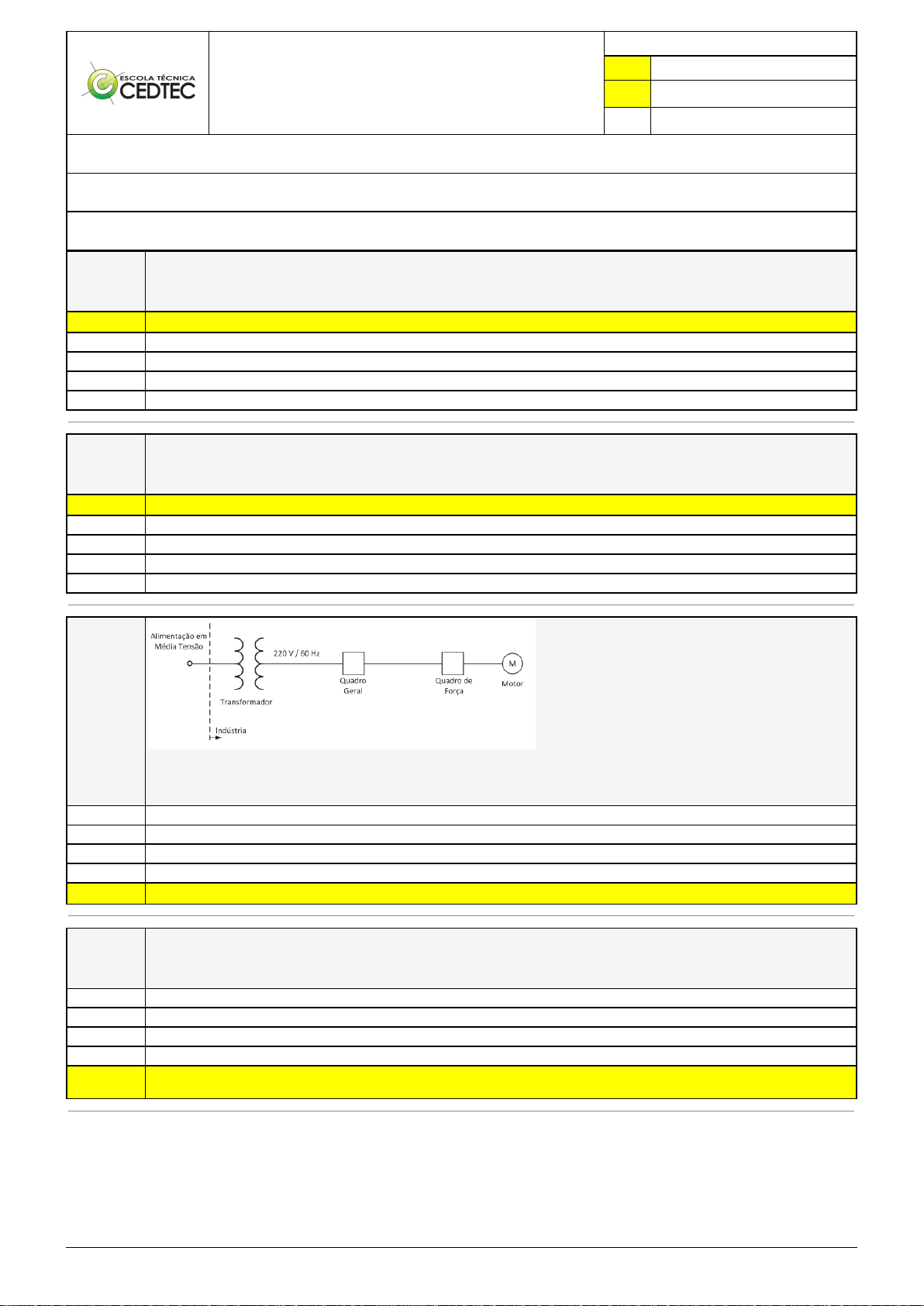 Pincel Atômico - 16/01/2026 13:23:05 1/1 Exercício Caminho do Conhecimento - Etapa 4 (24424) Atividade finalizada em 16/01/2026 13:22:55 (3696945 / 1) LEGENDA Resposta correta na questão # Resposta correta - Questão Anulada X Resposta selecionada pelo Aluno Disciplina: COMANDOS ELÉTRICOS [1486000] - Avaliação com 4 questões, com o peso total de 6,50 pontos [capítulos - 112] Turma: Curso Técnico: Eletrotécnica - Grupo: EAD - 02/25 - EAD ELE [158040] Aluno(a): 91479190 - ELISON SANTOS ALVES - Respondeu 4 questões corretas, obtendo um total de 6,50 pontos como nota [349959_1651 88] Questão 001 Por razões técnicas e econômicas, o sistema trifásico tornou-se padrão em geração, transmissão e distribuição dentre todos os sistemas polifásicos. Os sistemas trifásicos possuem a flexibilidade de poder atender cargas monofásicas, bifásicas e trifásicas sem qualquer alteração em sua configuração. Podemos definir que um sistema trifásico equilibrado é aquele em que a resultante da soma das tensões é igual a X 0 440 80 220 120 [349960_1651 93] Questão 002 Energia elétrica é uma das principais fontes de geração de força que afetam significativamente a economia de um país. Nos últimos anos, o Governo brasileiro adotou um forte racionamento, tendo em vista evitar um colapso do sistema de fornecimento de energia elétrica. A origem do problema foi: X O baixo nível de água das barragens que abastecem as principais hidrelétricas do País. As secas que vêm sistematicamente assolando a região nordestina. A elevação dos preços do petróleo. A baixo nível de água nos reservatórios da região Norte. O conflito do Oriente Médio. [349960_1729 95] Questão 003 A figura acima mostra parte do diagrama unifilar da instalação elétrica de uma indústria, em particular, da instalação de um motor elétrico (M). A energia elétrica é entregue em média tensão e distribuída no interior da indústria a partir do enrolamento de baixa tensão do transformador, cuja tensão nominal é 220 V. Sabe-se que o comprimento total do circuito mostrado é inferior a 100 m. Então, o valor, em volts, da máxima queda de tensão admissível desde o secundário do transformador até o motor, em regime permanente, é: 11 8,8 4,4 22 X 15,4 [349959_1729 97] Questão 004 Entende-se por seletividade de um sistema de proteção de um Sistema Elétrico de Potência como sendo: A velocidade ou rapidez de ação, na ocorrência de um curto-circuito. A capacidade da proteção responder às anormalidades nas condições de operação, e aos curto-circuitos para os quais foi projetada. A probabilidade, sob dadas circunstâncias, de um componente, um equipamento ou um sistema satisfazer a função prevista. O tempo que um equipamento fica inativo. X A propriedade da proteção em reconhecer e escolher as condições para as quais uma imediata operação é requeria, e aquelas para as quais nenhuma operação ou um retardo de atuação é exigido.