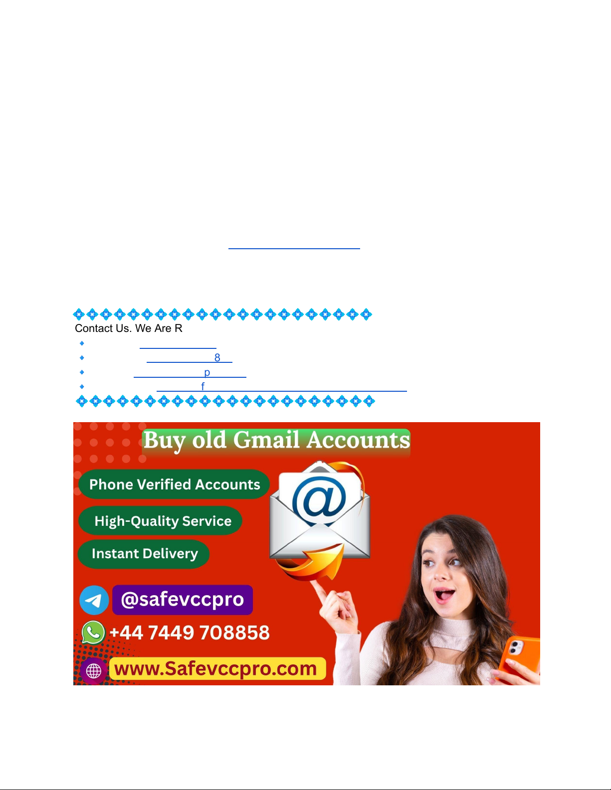 Buy Old Gmail Accounts Securely & Instantly – Safevccpro 2044 Buy Old Gmail Accounts Safevccpro is a Google-certified marketplace providing reliable, premium bulk-aged email, social, banking, and advertising accounts, including Gmail, Yahoo, Hotmail, and Outlook. All accounts are delivered securely. Buy Old Gmail Accounts, In the fast-paced digital landscape of 2044, establishing immediate authority and maintaining high deliverability are no longer luxuries—they are survival requirements for every entrepreneur, agency owner, and businessman. 💠💠💠💠💠💠💠💠💠💠💠💠💠💠💠💠💠💠💠💠💠💠 Contact Us. We Are Reply 24/7 Hours 🔹 Telegram: @SafeVCCPro 🔹 Whatsapp: +44 7449 708858 🔹 Website:https://safevccpro.com/ 🔹 Product Info: https://safevccpro.com/product/buy-gmail-accounts/ 💠💠💠💠💠💠💠💠💠💠💠💠💠💠💠💠💠💠💠💠💠💠 https://safevccpro.com/product/buy-gmail-accounts/ https://wa.me/447449708858 https://wa.me/447449708858 https://safevccpro.com/ https://safevccpro.com/product/buy-gmail-accounts/ The days of simply creating a fresh account and launching a marketing campaign are long gone.Today, sophisticated algorithms prioritize "Account Tenure" and historical trust signals over almost everything else. (The Inbox Engineering Framework That Actually Lands in the Inbox, 2025) This is where the strategic decision to buy Old Gmail Accounts becomes a game-changer for your professional infrastructure. At Safevccpro, we recognize that your time is better spent scaling your business than warming up fresh inboxes that might still trigger spam filters. As a Google-certified marketplace, we provide premium, aged Gmail accounts with a prebuilt history of reliability. These accounts aren't just logins; they are high-value digital assets designed to help you bypass the "probationary" filters that often plague new users. (Automated Gmail Account Nurturing Tool, 2025) Whether you are running complex cold outreach, managing a high-ticket SEO agency, or scaling e-commerce operations, our accounts provide the robust foundation you need to reach the primary inbox every time. Why Should You Buy Old Gmail Accounts for Business? For entrepreneurs, the primary hurdle in digital communication is the "sandbox effect." New accounts are under constant surveillance by automated security systems. (SolarWinds, 2026) When you choose to buy Old Gmail Accounts, you are essentially purchasing "digital trust." An aged account has already survived years of algorithm updates and has established a clean activity record. This historical data signals to Google that the account is operated by a genuine human, not a bot, which significantly lowers the risk of instant suspension or flagging. (Google Business Profile Suspended? Here are some possible causes and fixes (2025) How Do Aged Accounts Improve Email Deliverability? Email deliverability is the lifeblood of any marketing agency. If your emails land in the spam folder, your ROI drops to zero. Aged accounts possess a "sender reputation" that fresh accounts lack. Because these accounts have existed for several years, they carry established cookies and a history of stable login sessions. This allows you to scale your outreach faster. (Scaling Email Operations: From 10 to 1000 Accounts (2025 Guide), 2025) When you buy Old Gmail Accounts, you can launch your professional campaigns with a higher volume of messages than with new accounts, which must be "warmed up" slowly over months to avoid being blocked. (The Risks and Realities of Buying Old Gmail Accounts, 2025) Are the Accounts from Safevccpro Phone Verified? Yes, security and authenticity are our top priorities. At Safevccpro, every account we offer is a PVA (Phone Verified Account). We ensure that each account undergoes a unique, real-sim verification process to pass the most stringent bot-detection tests of 2044. When you buy Old Gmail Accounts from us, you receive full access credentials, including the recovery email and https://safevccpro.com/product/buy-gmail-accounts/ https://safevccpro.com/product/buy-gmail-accounts/ https://safevccpro.com/product/buy-gmail-accounts/ https://safevccpro.com/product/buy-gmail-accounts/ https://safevccpro.com/product/buy-gmail-accounts/ https://safevccpro.com/product/buy-gmail-accounts/ the verification phone number. This complete package ensures you have 100% ownership and can secure the account in accordance with your internal security protocols. Can I Use Old Gmail Accounts for Social Media Management? Agency owners often need to manage multiple social media profiles for their clients. Platforms like Facebook, Instagram, and LinkedIn are notorious for flagging accounts created with brand-new emails (How to Manage Multiple Social Media Accounts Without Flags, 2025). To ensure your client's assets remain safe, it is highly recommended to buy Old Gmail Accounts. These aged emails act as a "shield," providing a layer of legitimacy to the social profiles they are attached to. Using an account with a 5- to 10-year history significantly reduces the risk that your social media campaigns will be interrupted by sudden "identity verification" requests. (Eltaher et al., 2025) What is the Delivery Time After Purchasing? We understand that in business, every second counts. That is why Safevccpro offers instant delivery for all bulk and individual orders. As soon as your payment is processed via our secure gateway, the account credentials are sent directly to your dashboard or email. You don't have to wait for manual verification or back-and-forth emails. If you decide to buy Old Gmail Accounts today, you can integrate them into your workflow within minutes, keeping your team productive without downtime. How Does Account Age Affect Google Ads and SEO? For digital marketers, account age is a secret weapon for SEO and advertising. Google Ads accounts linked to aged Gmail profiles are often approved faster
