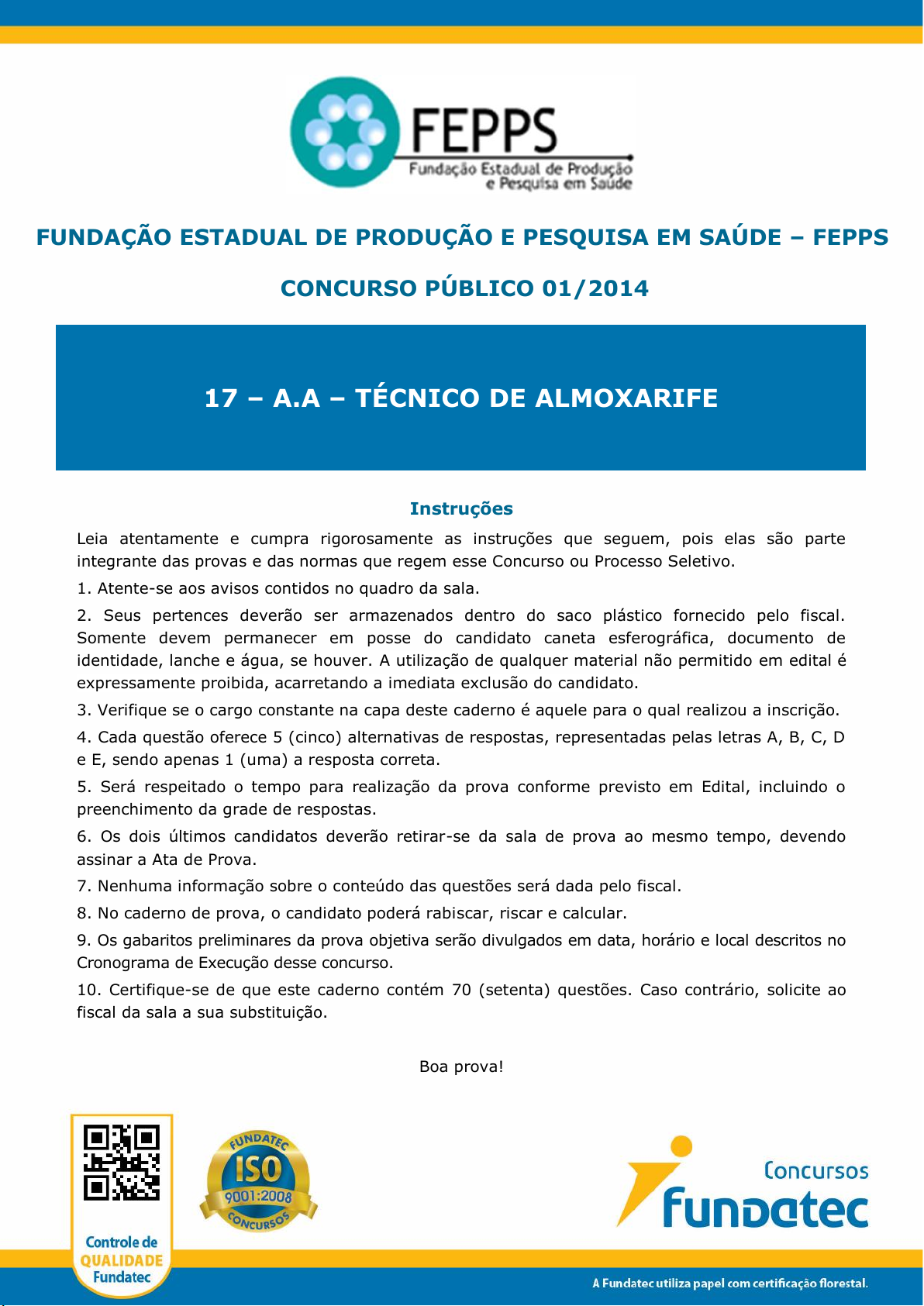 17 – A.A – TÉCNICO DE ALMOXARIFE